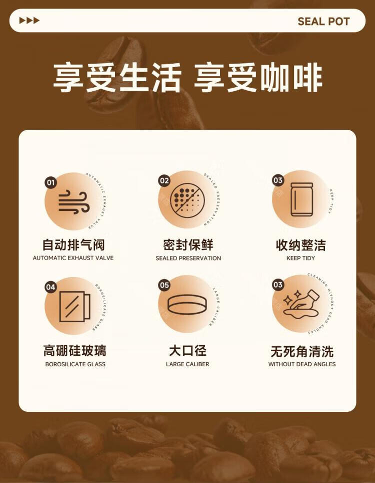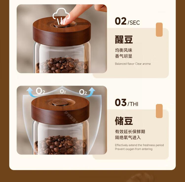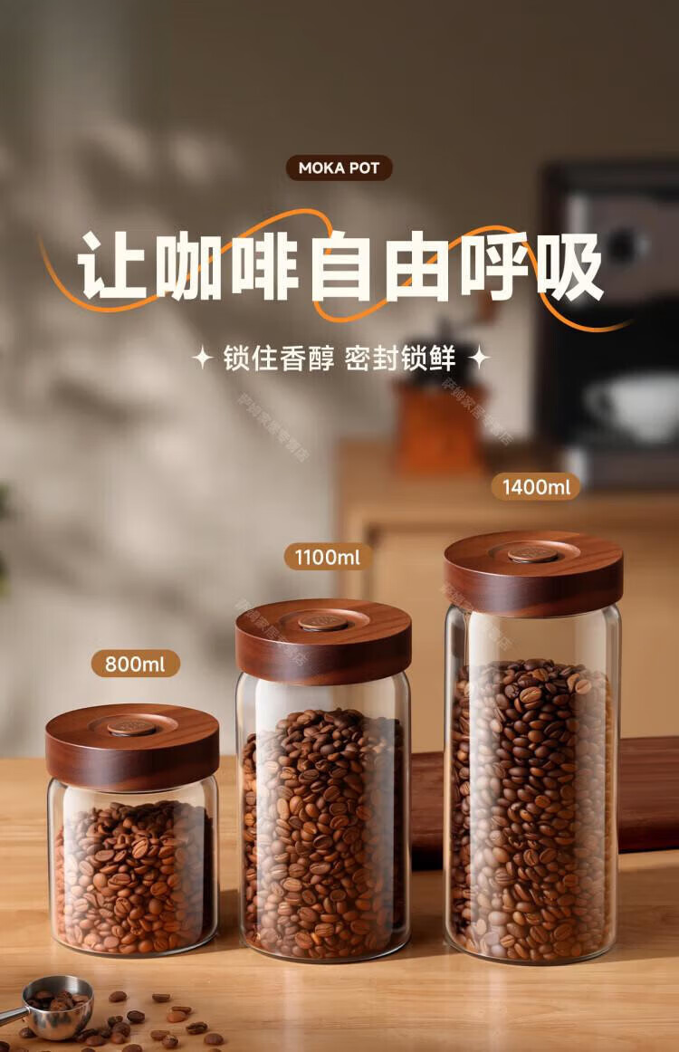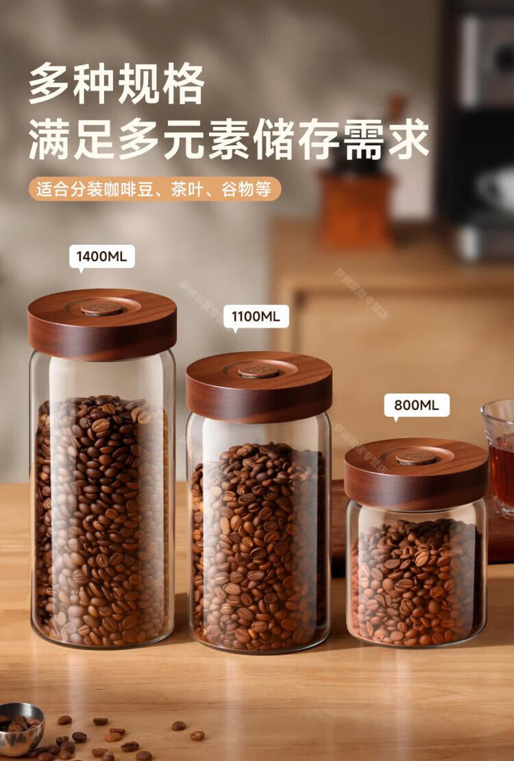 WCZ德国咖啡豆密封罐专用保存罐食品级专用收纳茶叶咖啡粉养豆储存罐 两个装单阀排气-1600ml 单阀排气