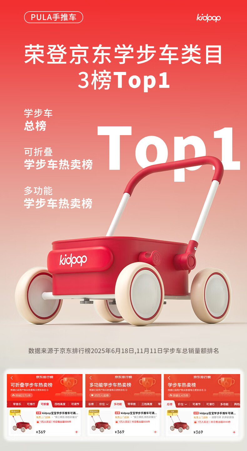 kidpop婴儿学步车7个月-3岁多功能手推车可调速助步车周岁礼物 童话粉