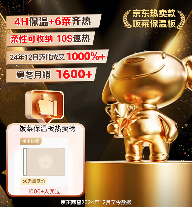 志高(CHIGO)暖菜板 热菜板保温板 加热菜板2025新款加热桌垫 饭菜保温板长方形家用多功能餐桌热菜神器 QF02H