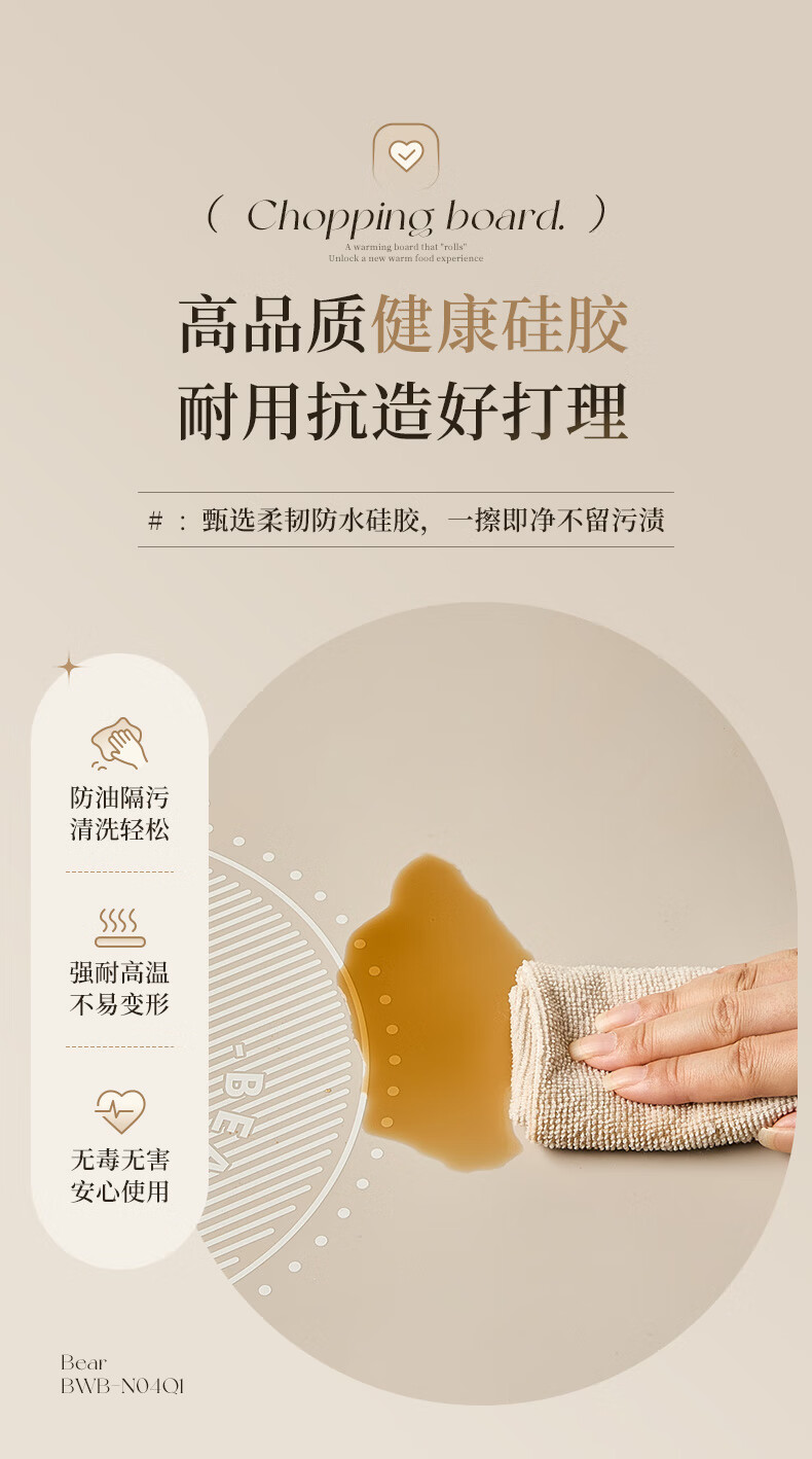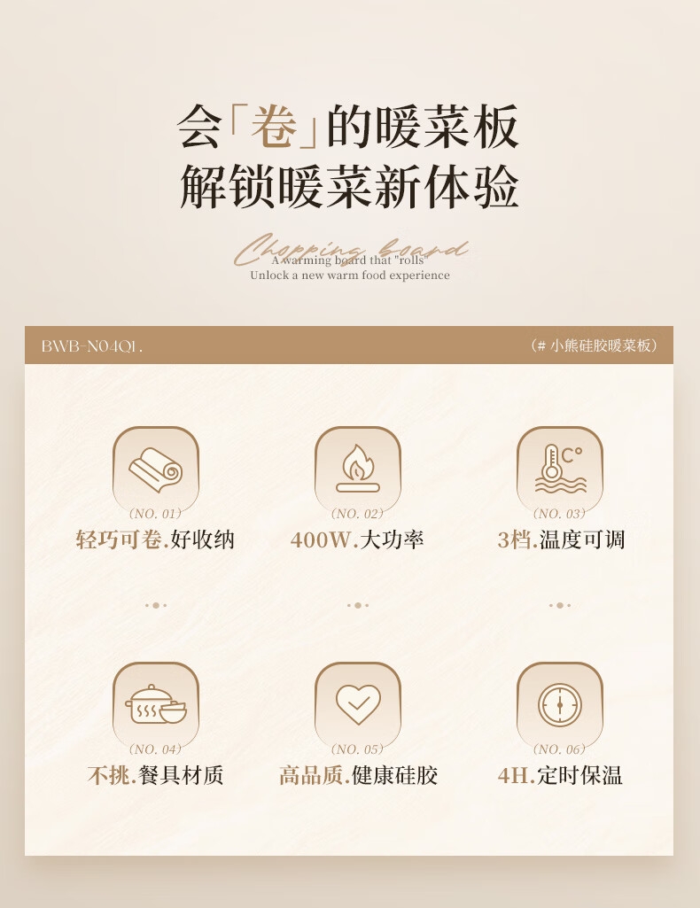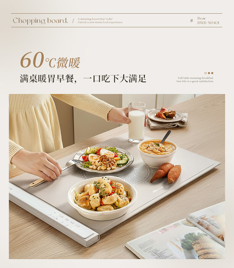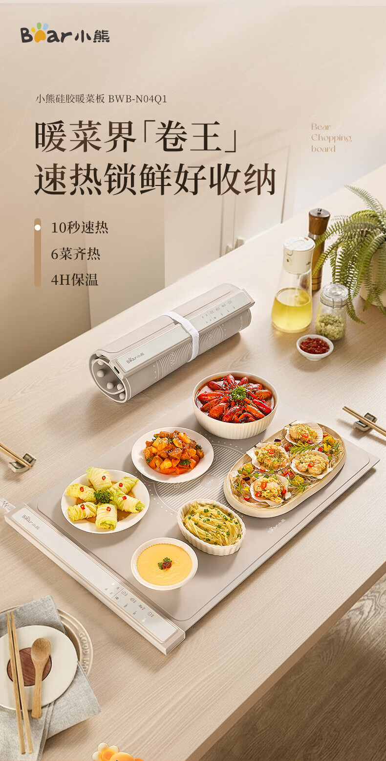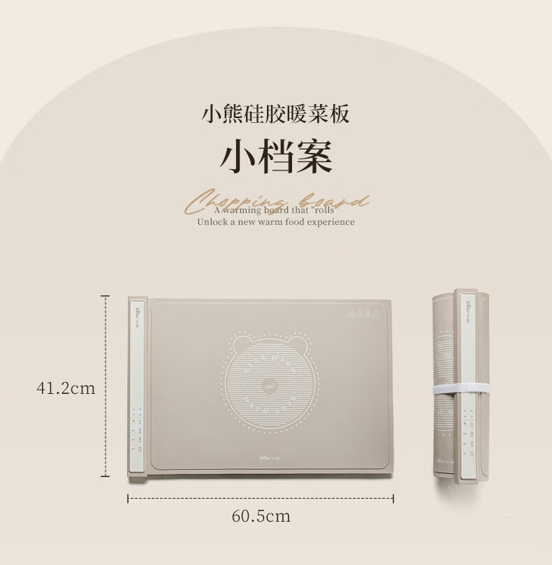 小熊(Bear)折叠暖菜板饭菜保温板热菜板 硅胶加热板桌垫菜板多功能加热垫 柔性面板解冻温奶BWB-N04Q1