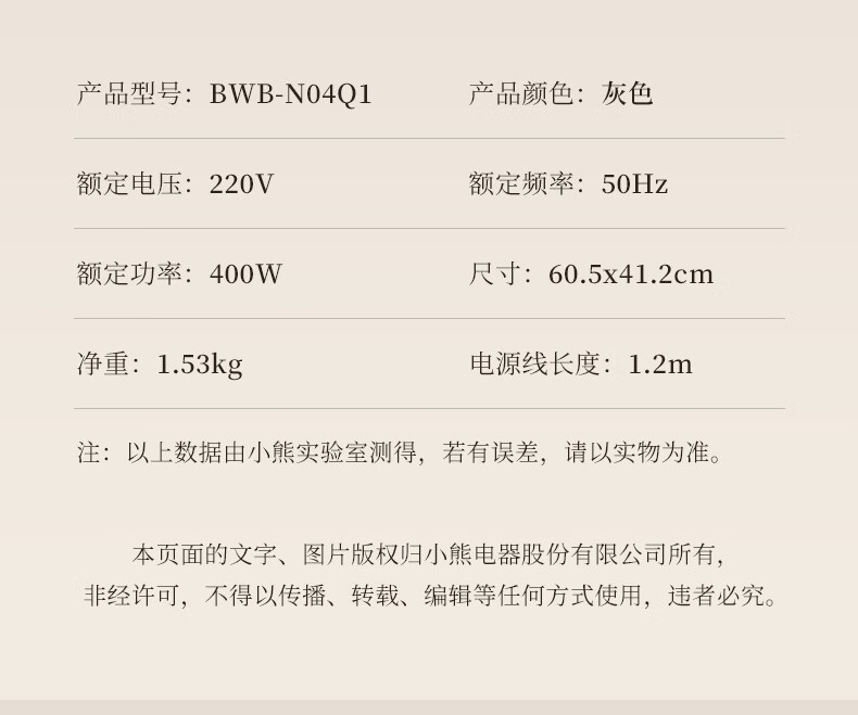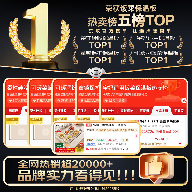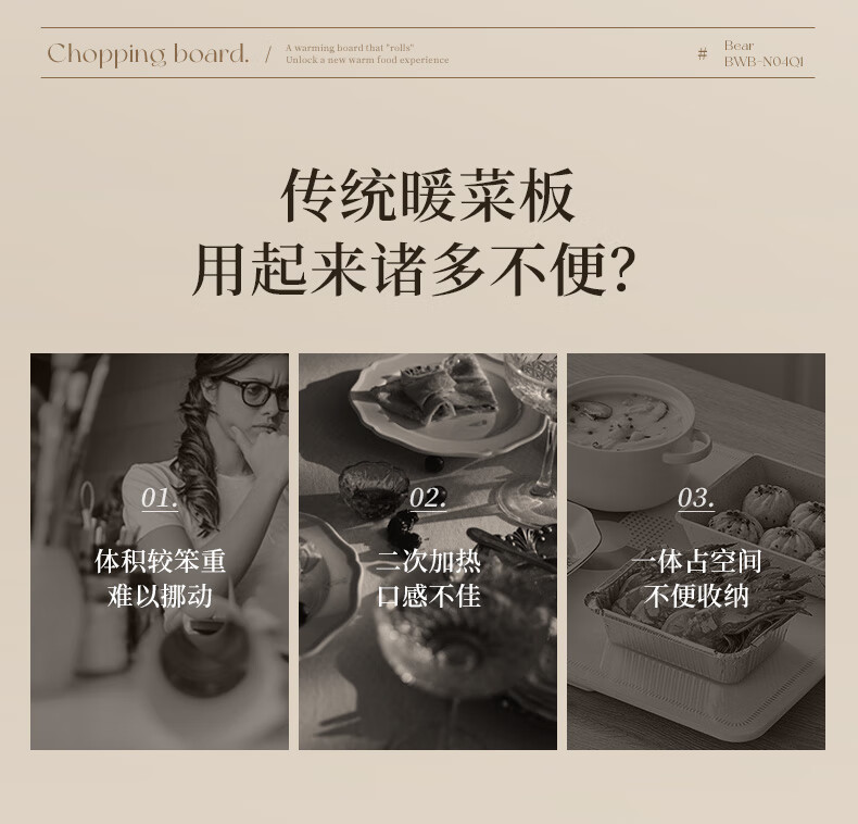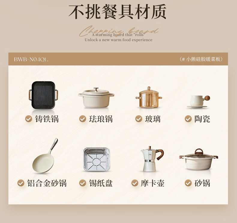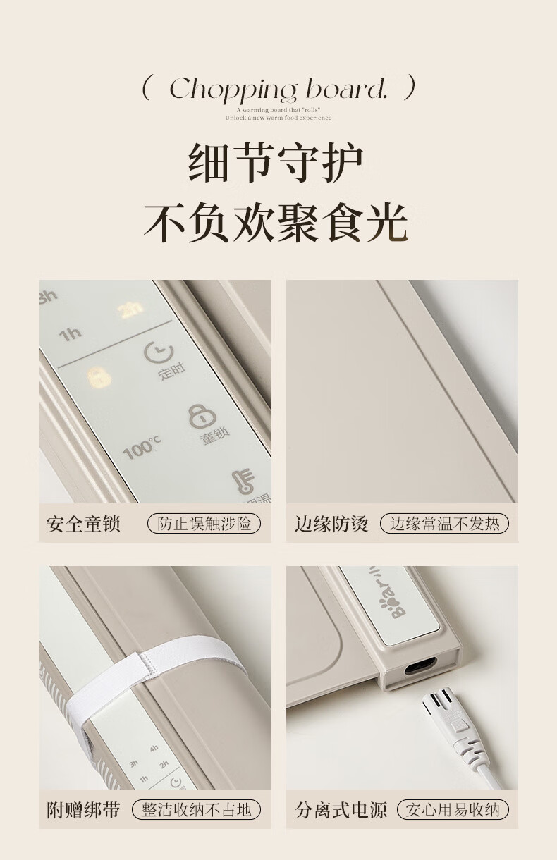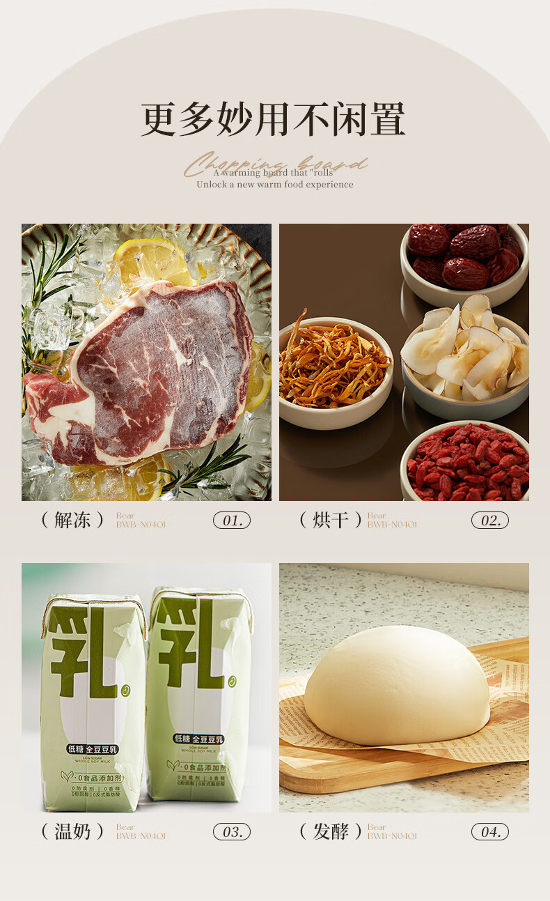 小熊(Bear)折叠暖菜板饭菜保温板热菜板 硅胶加热板桌垫菜板多功能加热垫 柔性面板解冻温奶BWB-N04Q1