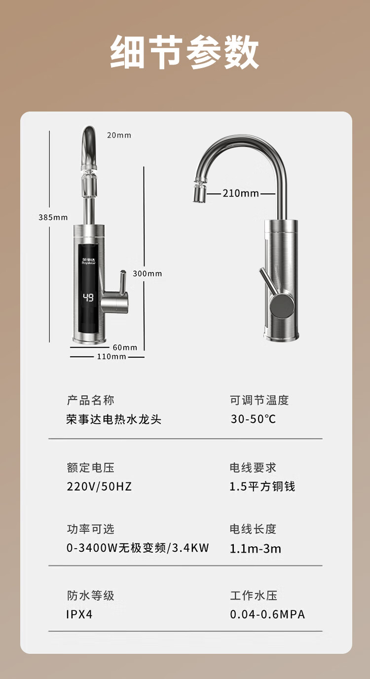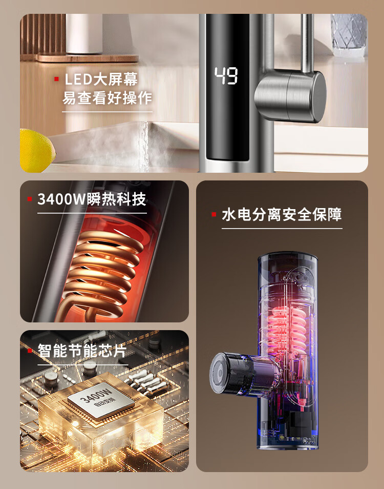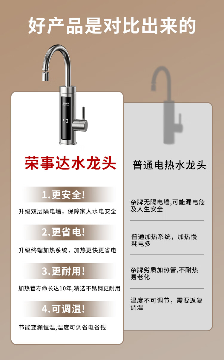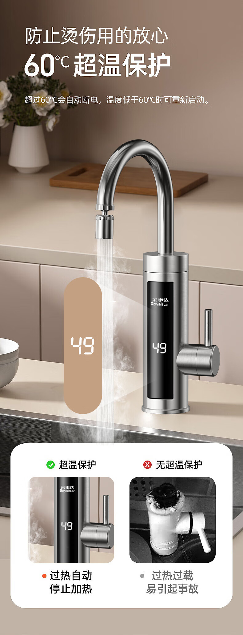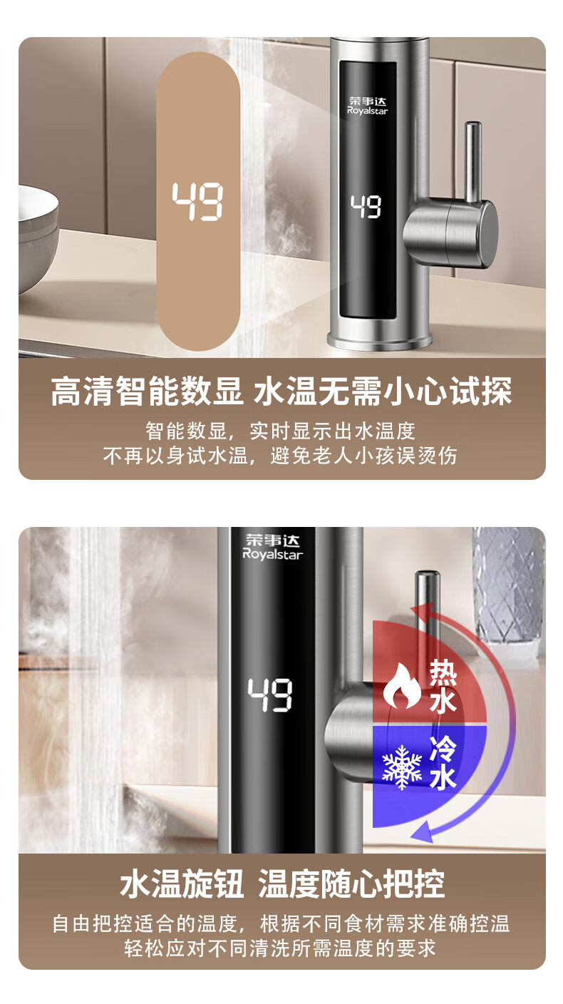 荣事达(Royalstar)电热水龙头加热水龙头热水器即热式速热水龙头厨卫两用下进水