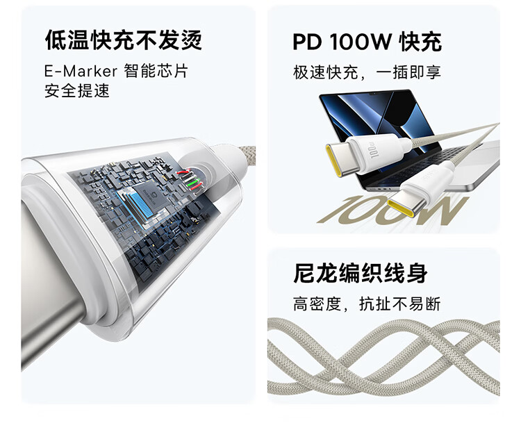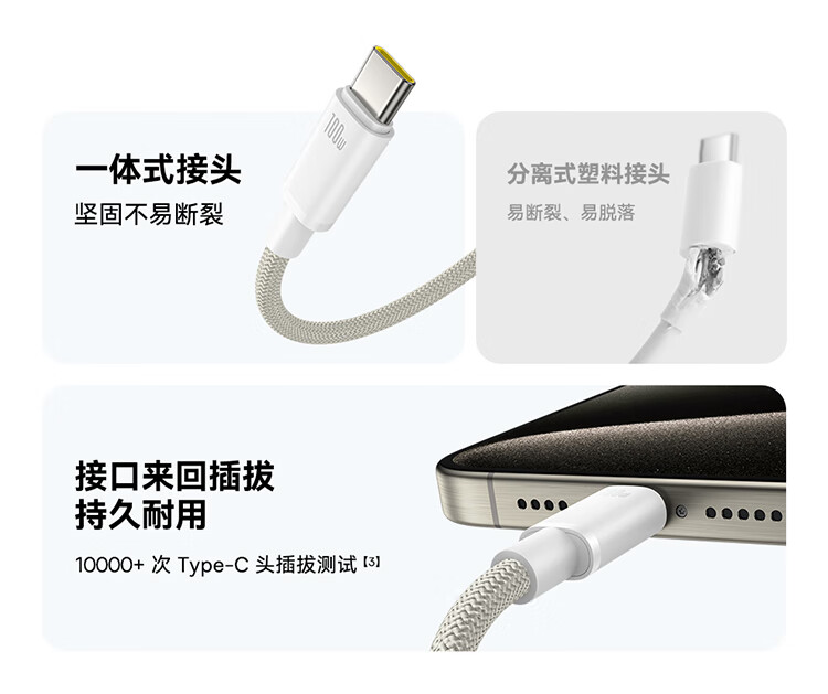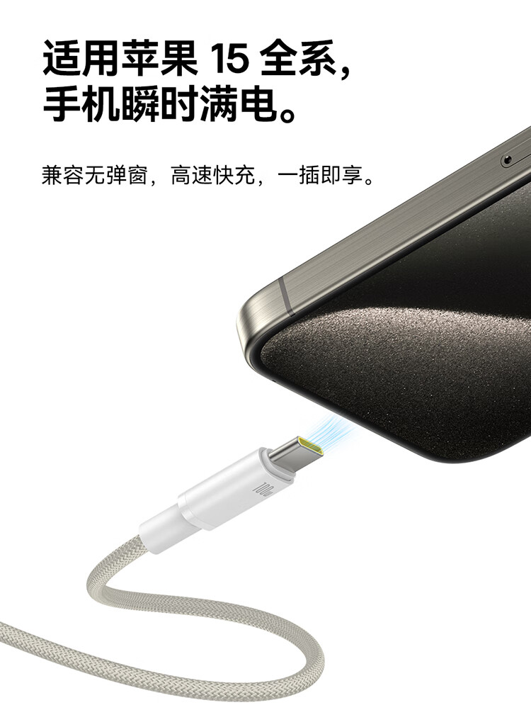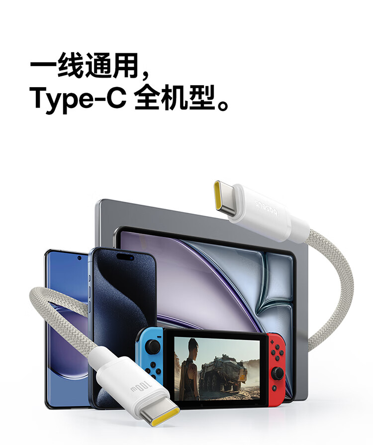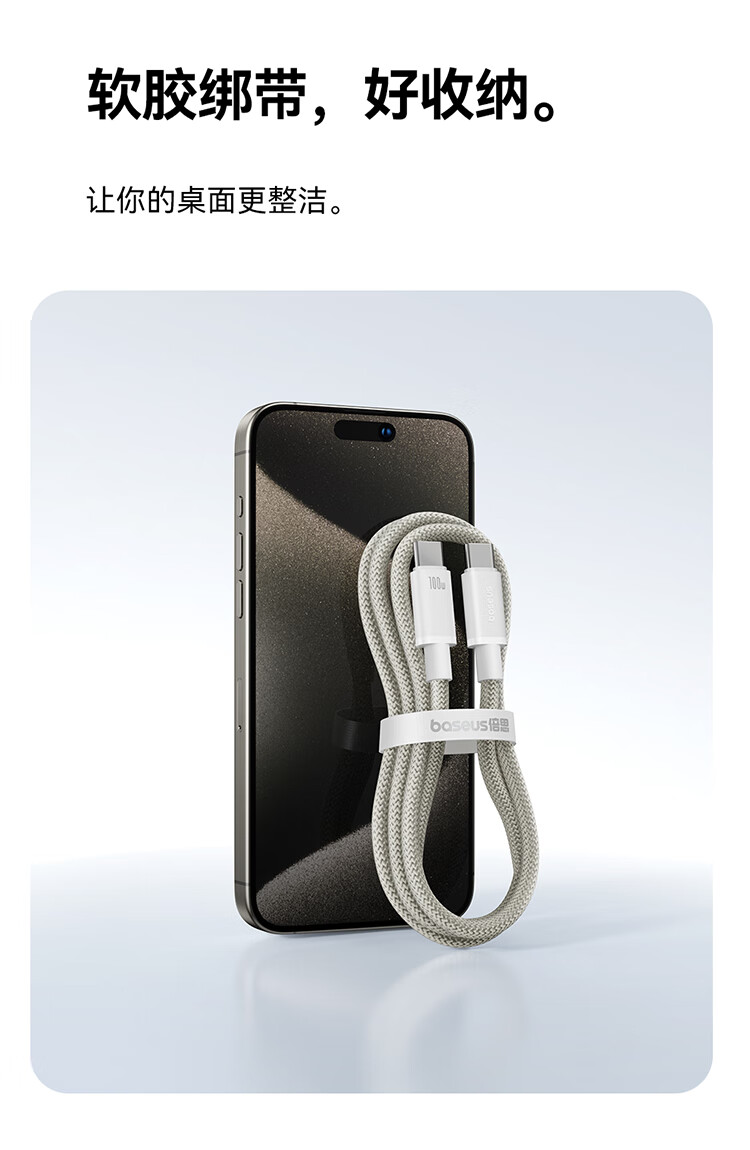 倍思苹果17/16/15充电线Type-C数据线双头PD100W快充线ctoc车载适用iPhone17/16e/15pro iPad笔记本2米