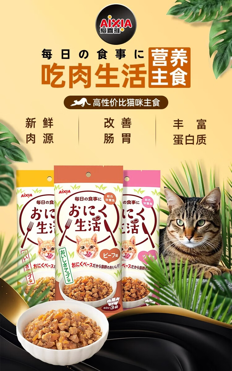 爱喜雅AixiA进口成年猫粮猫湿粮吃肉生活营养鲜封包鲜肉湿粮主粮零食 鸡肉味 180g 3袋1包