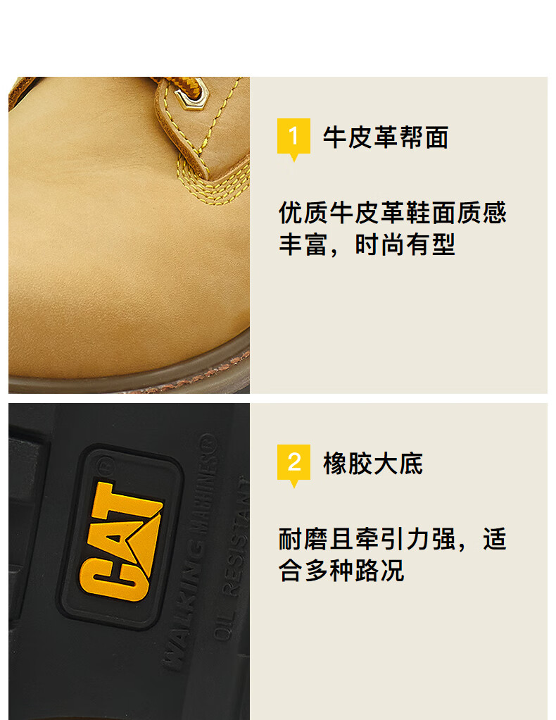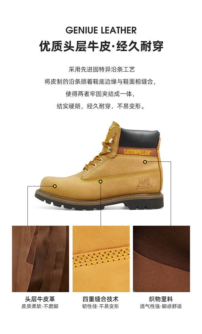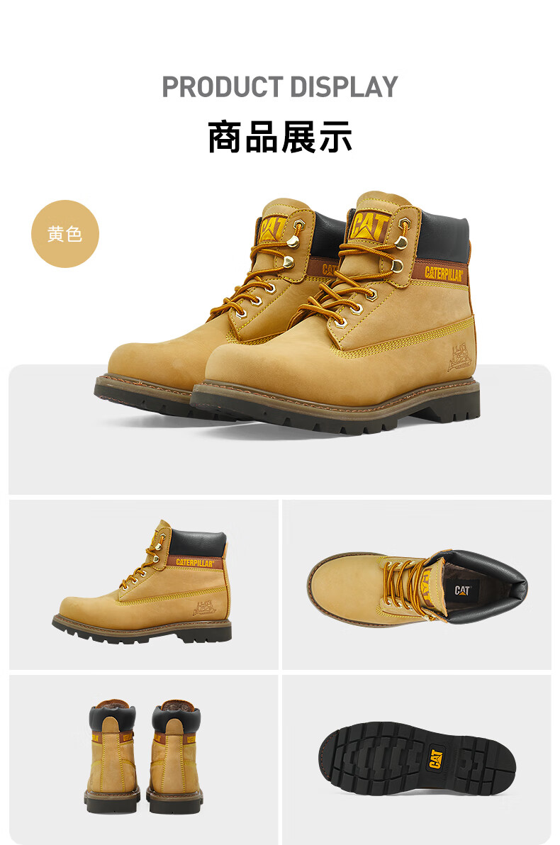 CAT卡特25秋季新品男女同款户外经典大黄靴马丁靴 黄色【女】 37