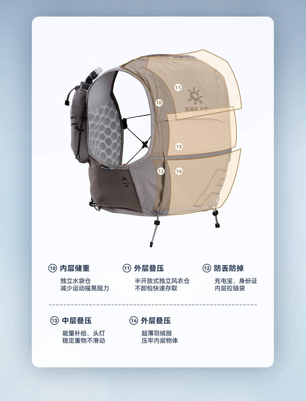 KAILAS FUGA AIR 8 Ⅳ 凯乐石越野跑山背包男女款KA2554005 光学白 L