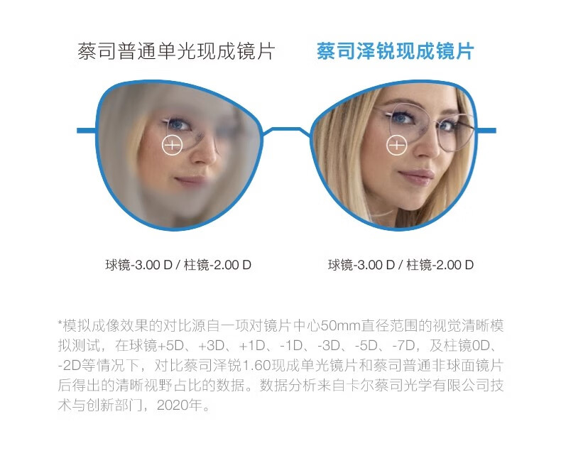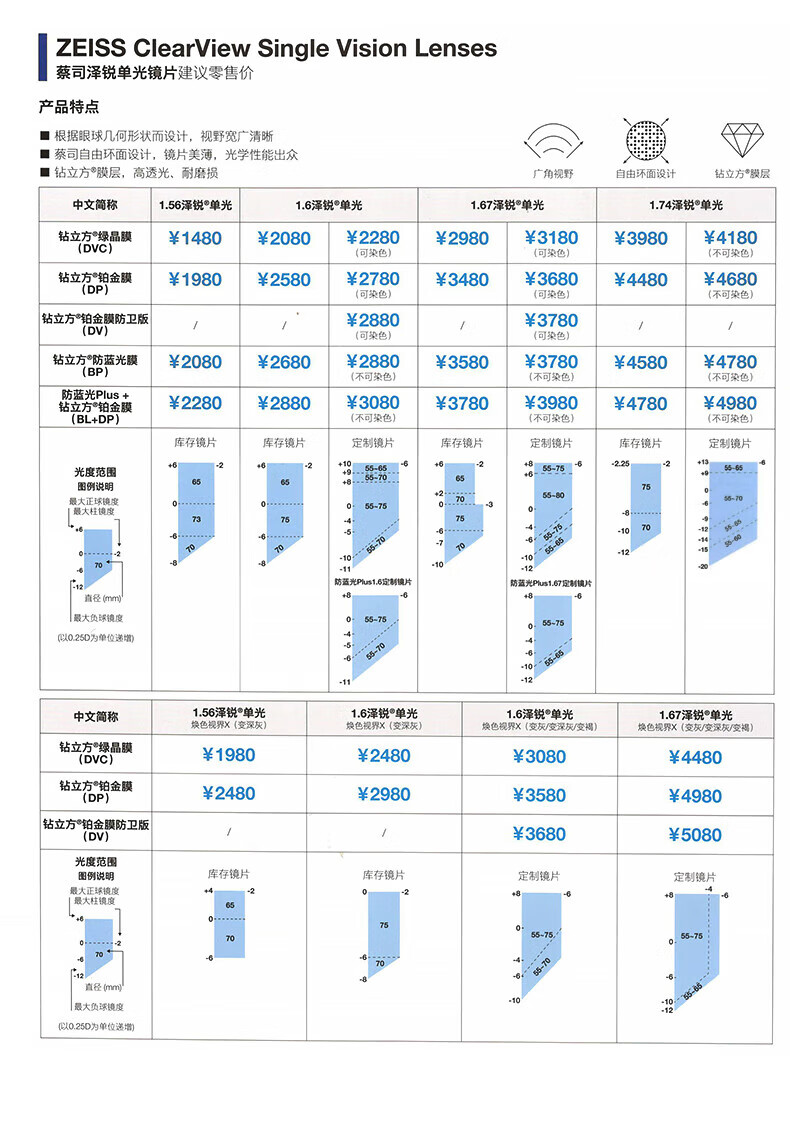 蔡司(ZEISS)泽锐1.67钻立方防蓝光Plus铂金膜现片1片 近视镜片配镜