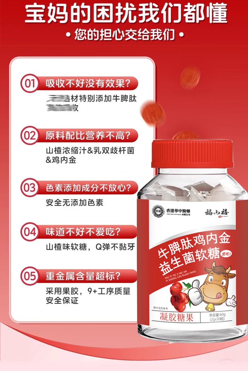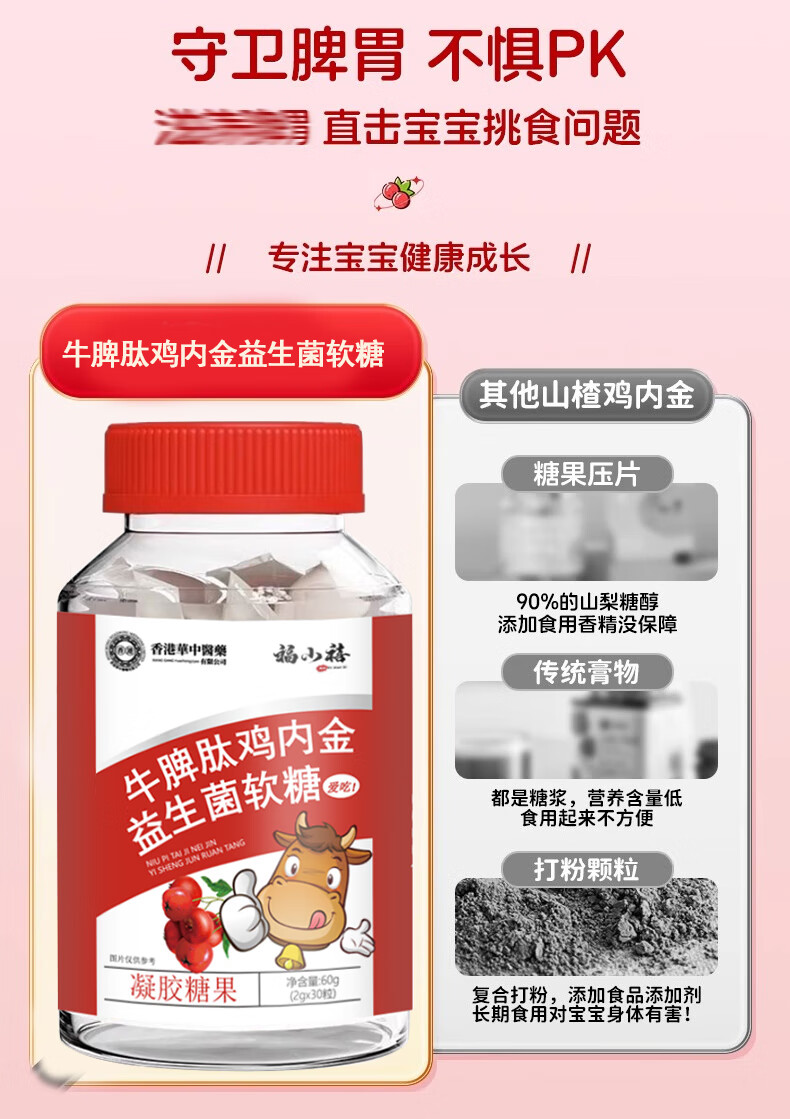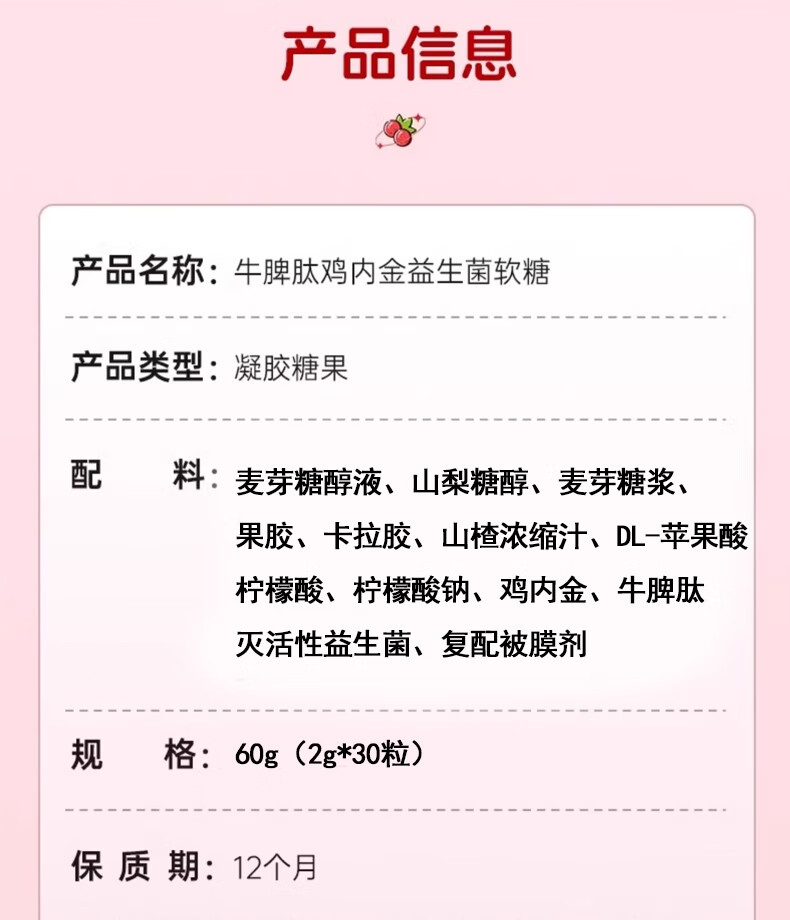 牛脾肽鸡内金软糖 双成分助力温和养护软糖口感轻松呵护营养品 牛脾肽鸡内金软糖1瓶60g
