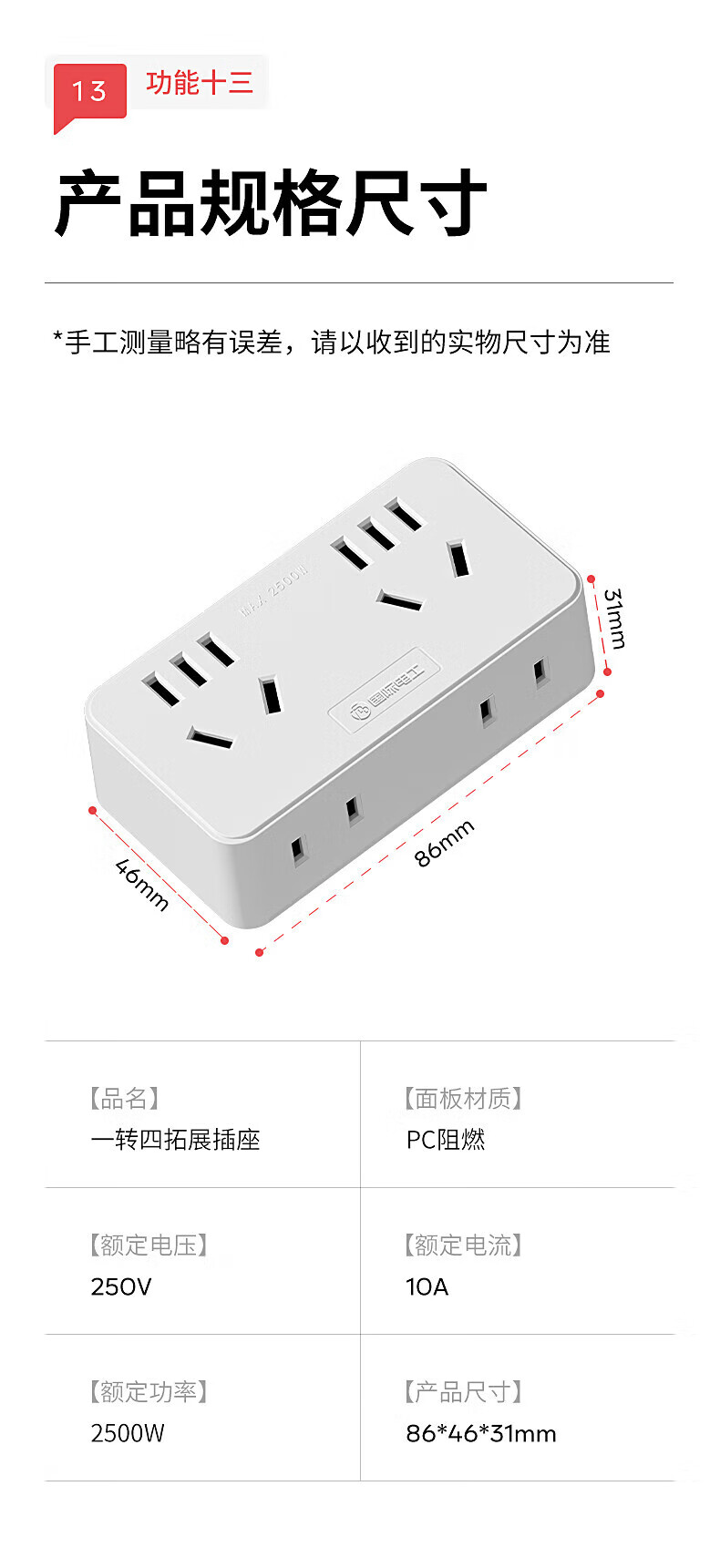 国际电工大功率一字型转换插座10A转16A空调热水器一转多无线扩展电源插 一转二【10A转10A五孔+16A五孔】灰
