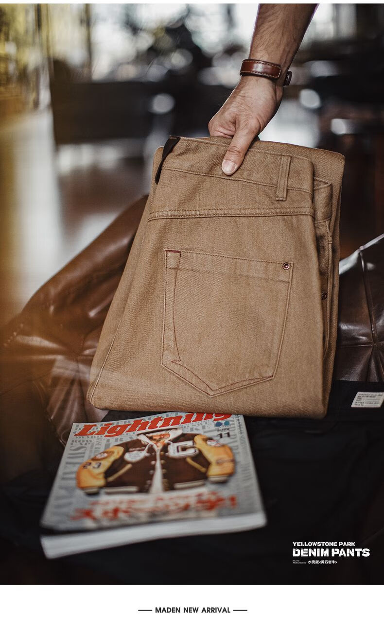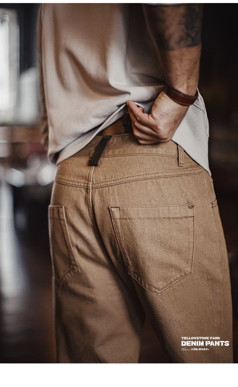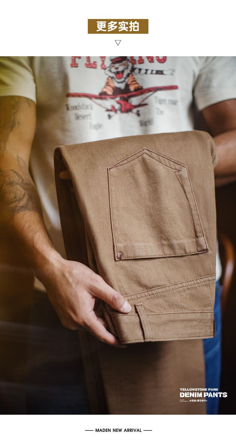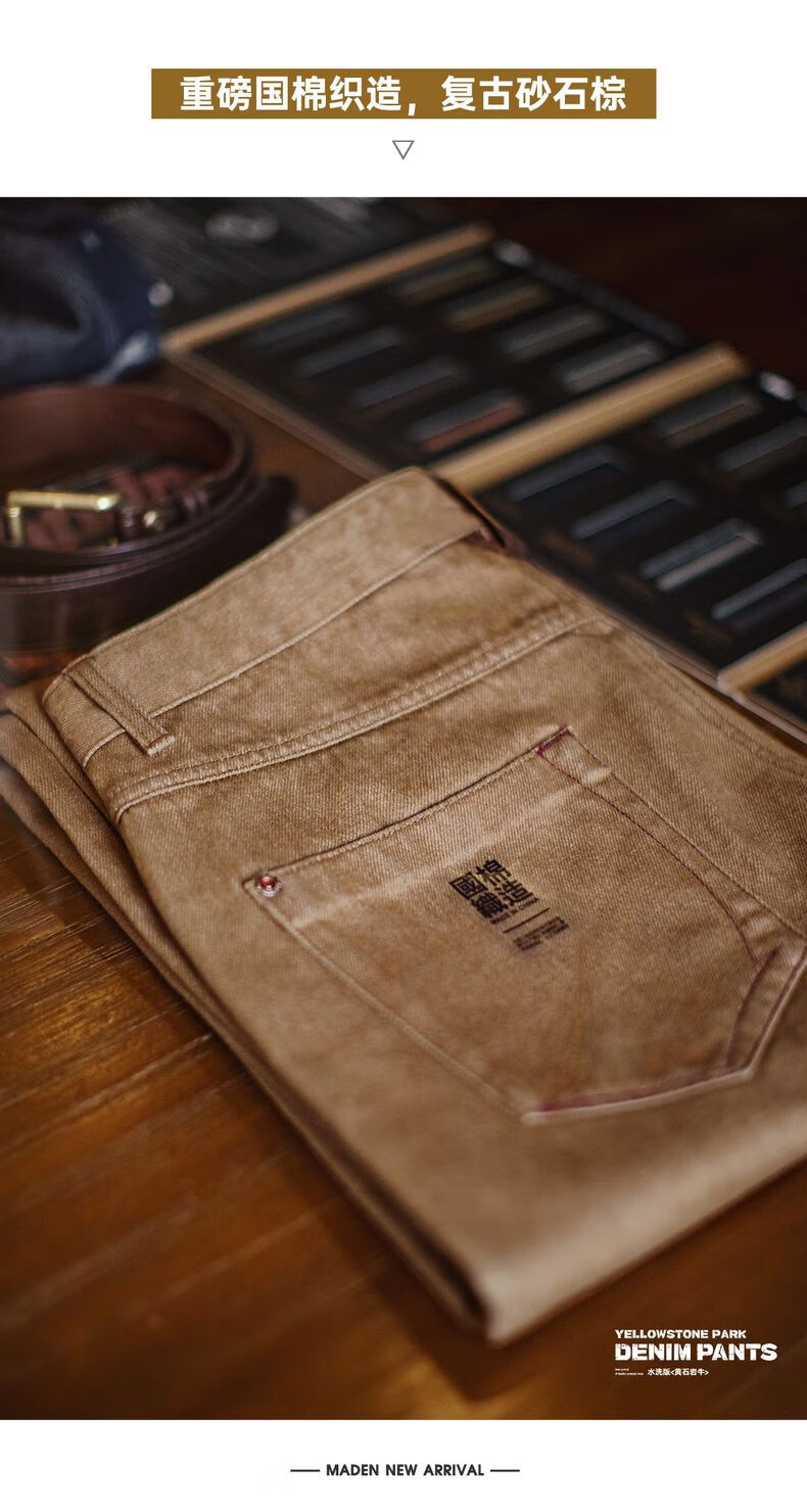 马登工装美式复古卡其色牛仔裤男美拉德莱赛尔男士休闲直筒长裤子秋 红砂棕 【水洗版·黄石岩牛】 32