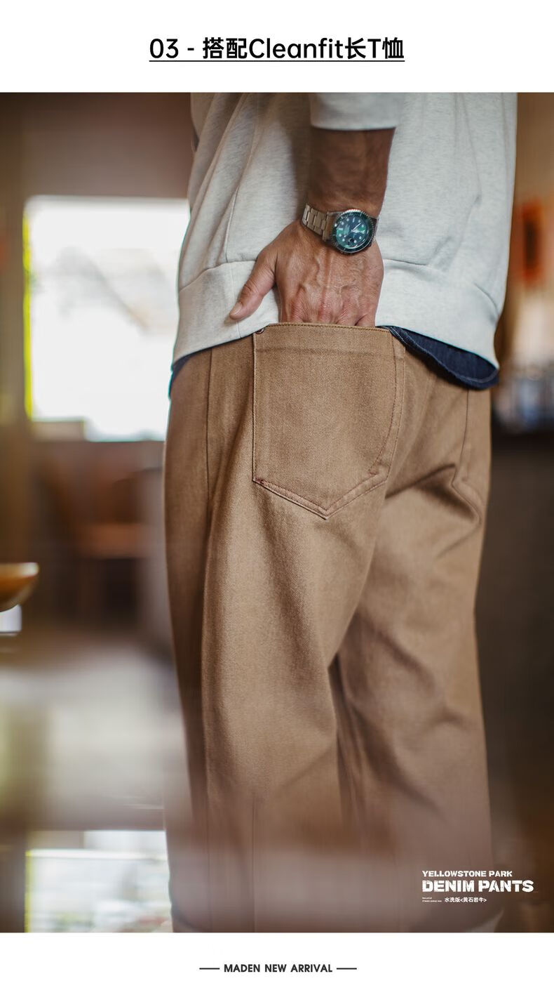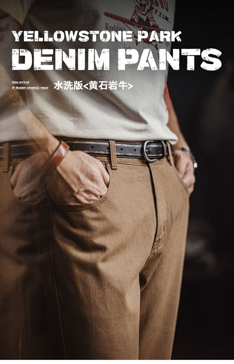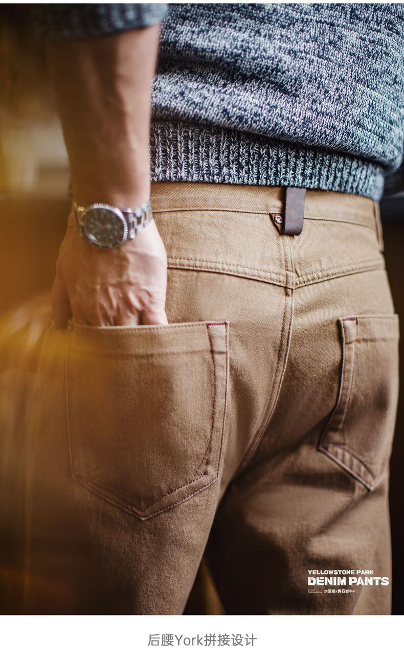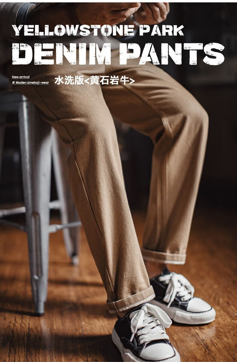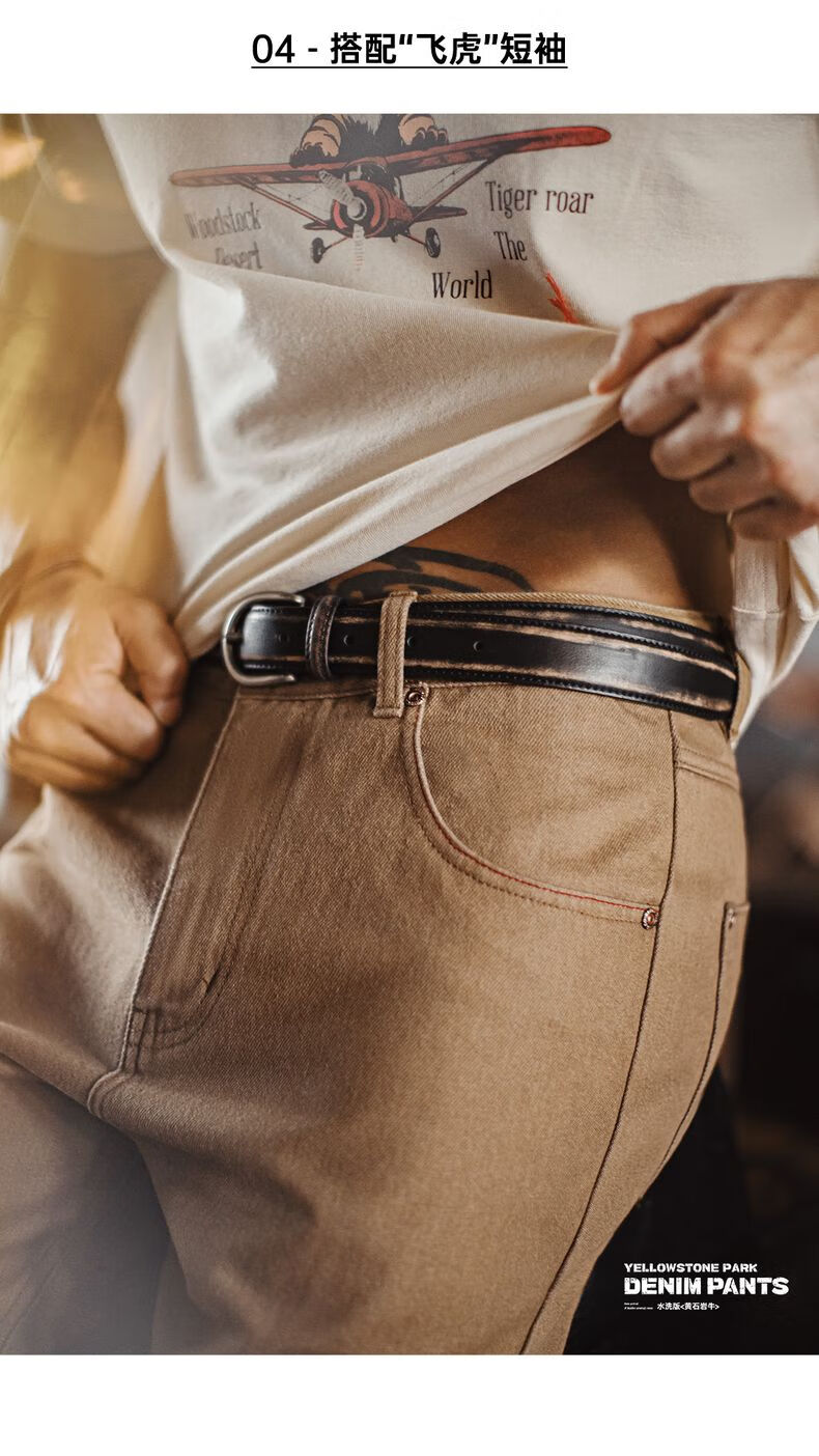 马登工装美式复古卡其色牛仔裤男美拉德莱赛尔男士休闲直筒长裤子秋 红砂棕 【水洗版·黄石岩牛】 32
