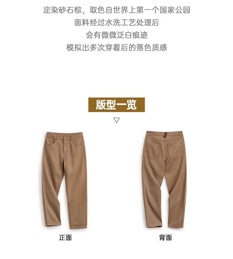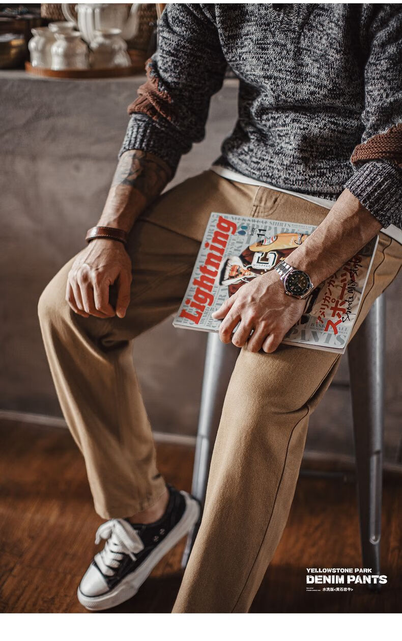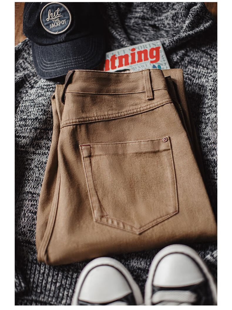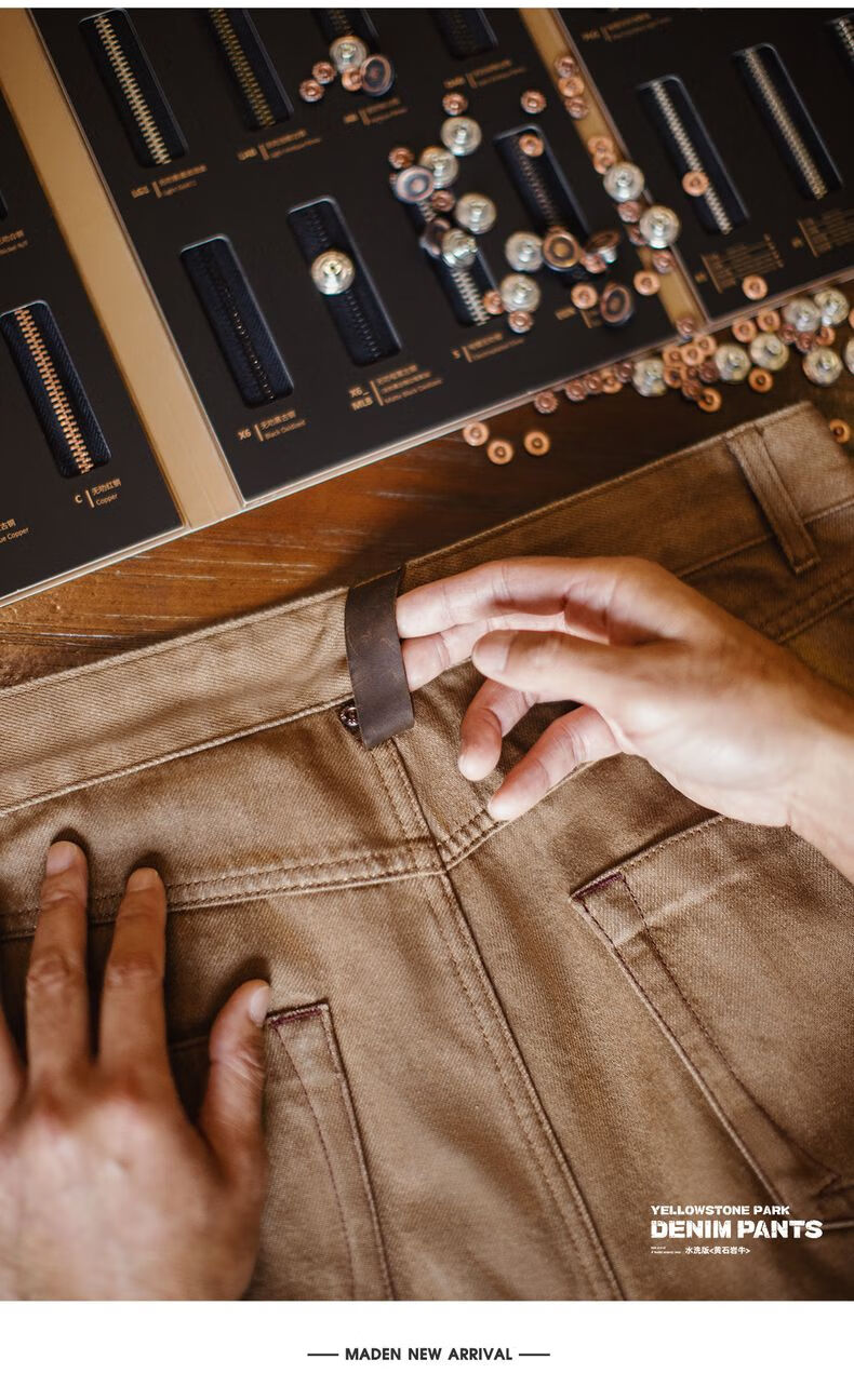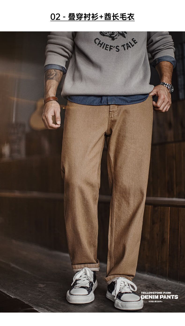 马登工装美式复古卡其色牛仔裤男美拉德莱赛尔男士休闲直筒长裤子秋 红砂棕 【水洗版·黄石岩牛】 32