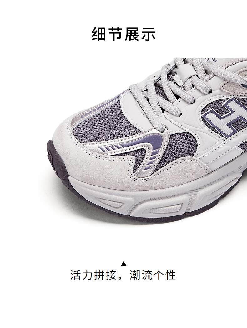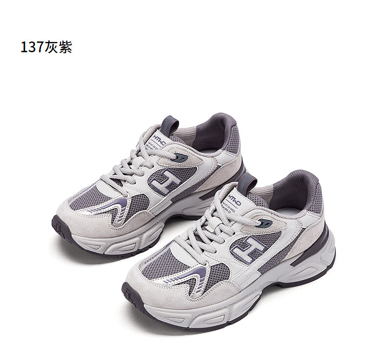 热风【商场同款】厚底老爹鞋女鞋2025年秋季新款百搭运动鞋轻便户外鞋 137灰紫 38