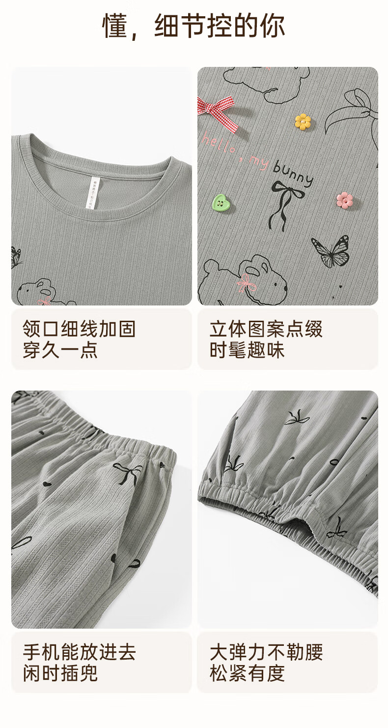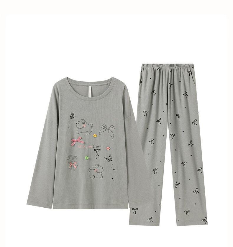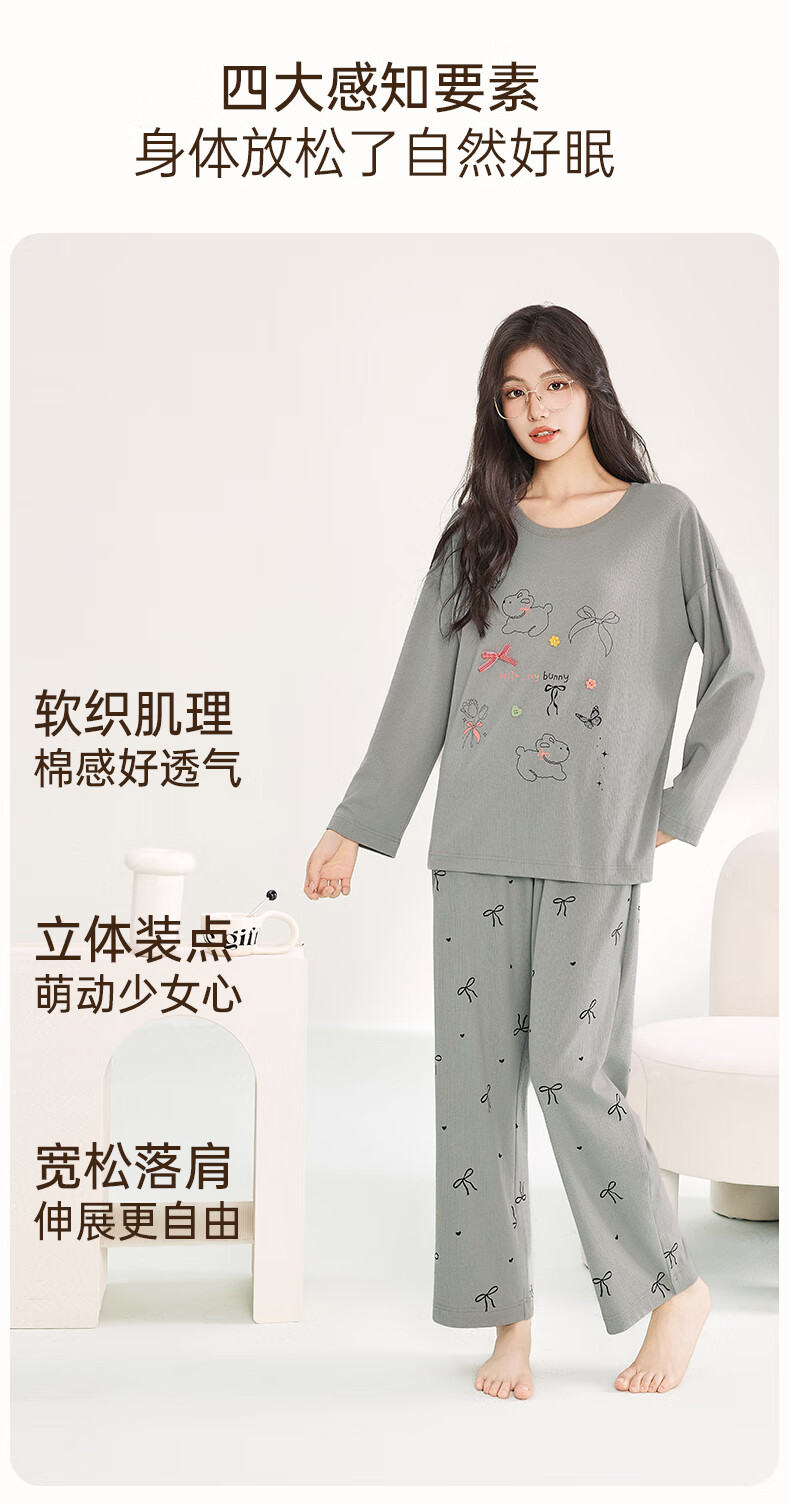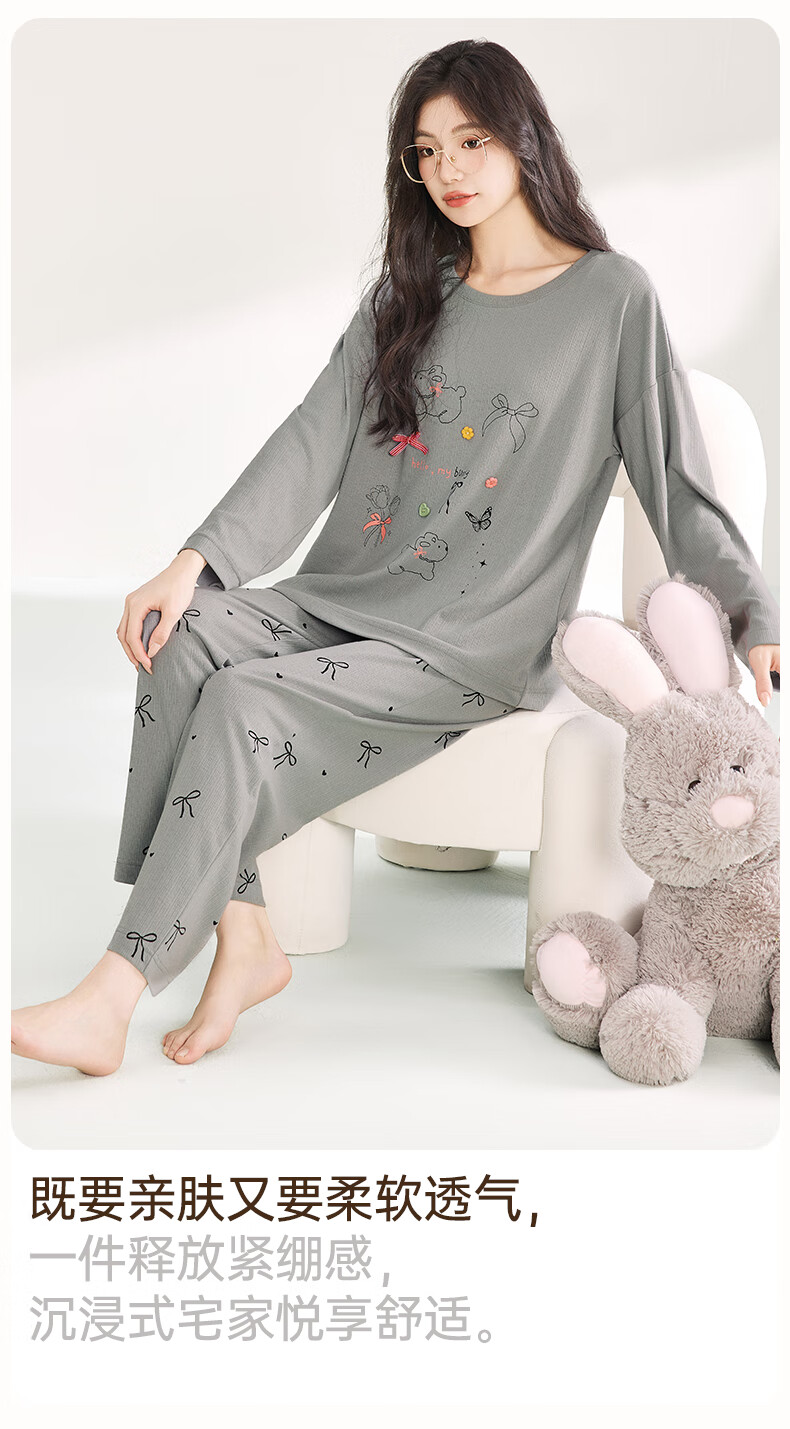 玛伦萨睡衣女春秋季2025新款可外穿舒适棉质长袖长裤大码女士家居服 樱花粉 M