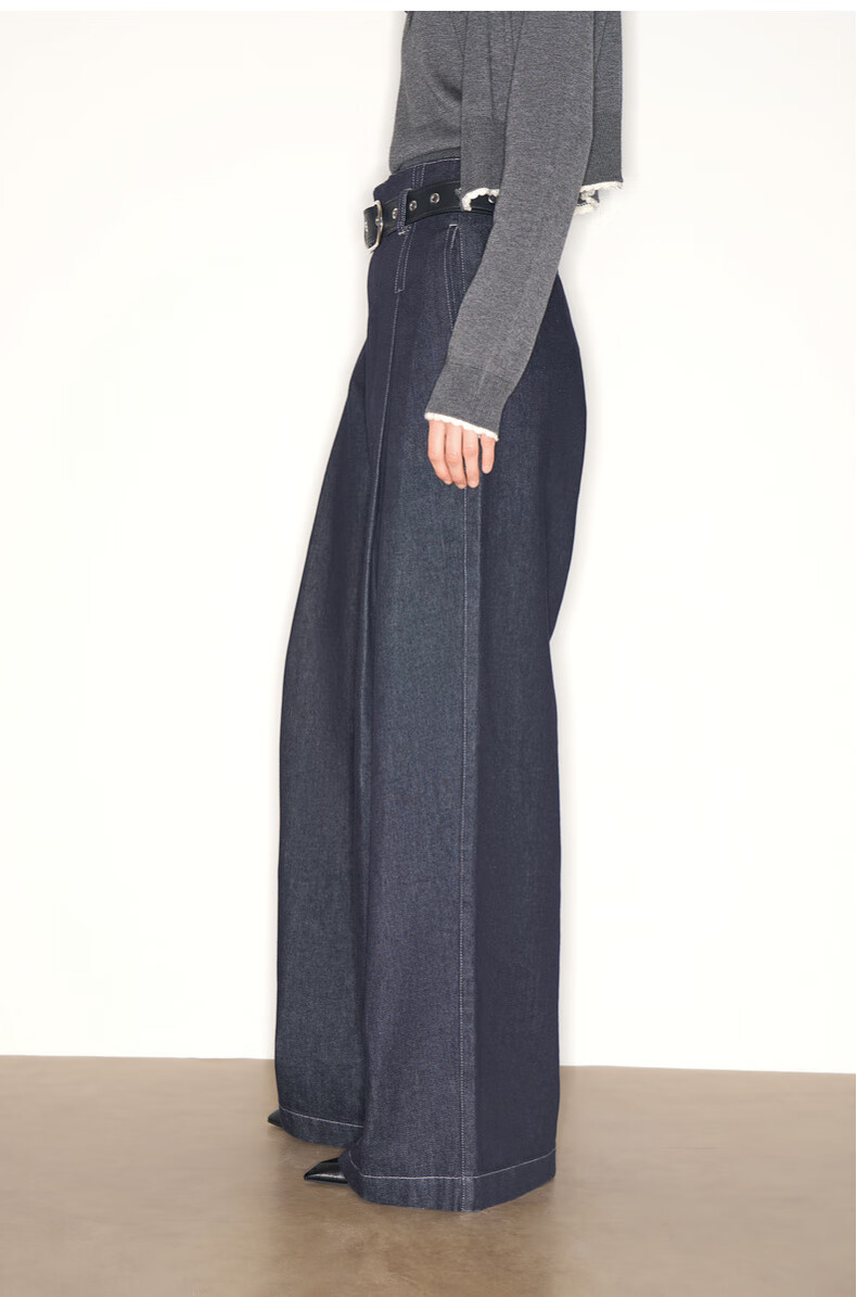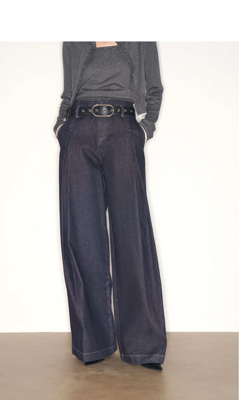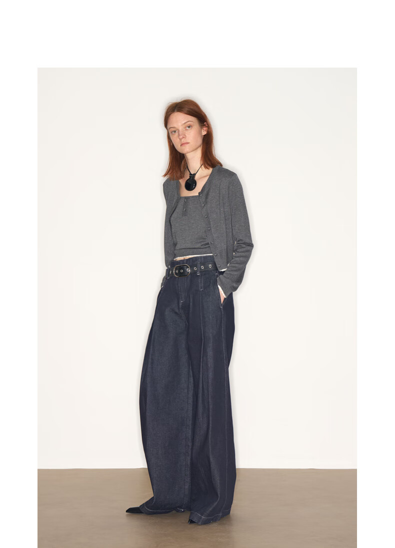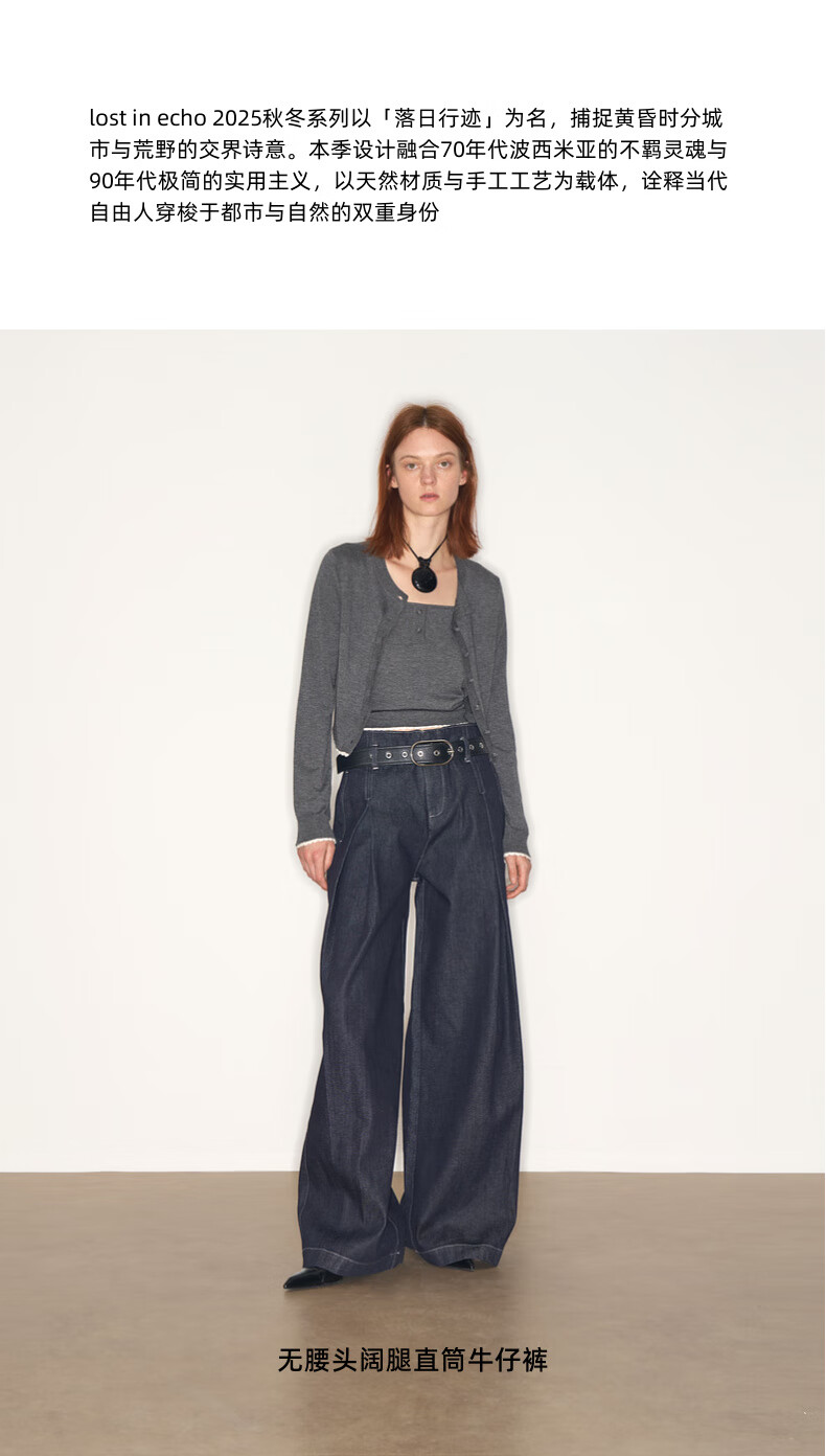 lost in echo徐若晗同款2025早秋新款休闲低腰无腰头阔腿显瘦及地直筒牛仔裤 牛仔原色 S