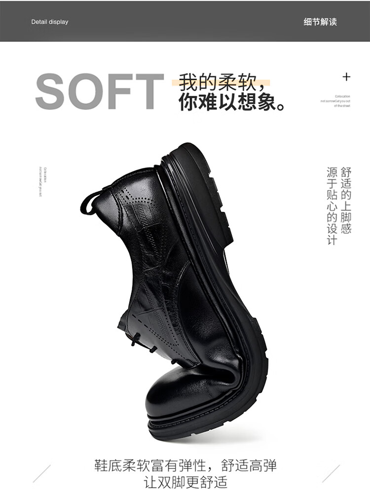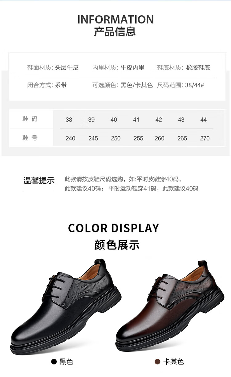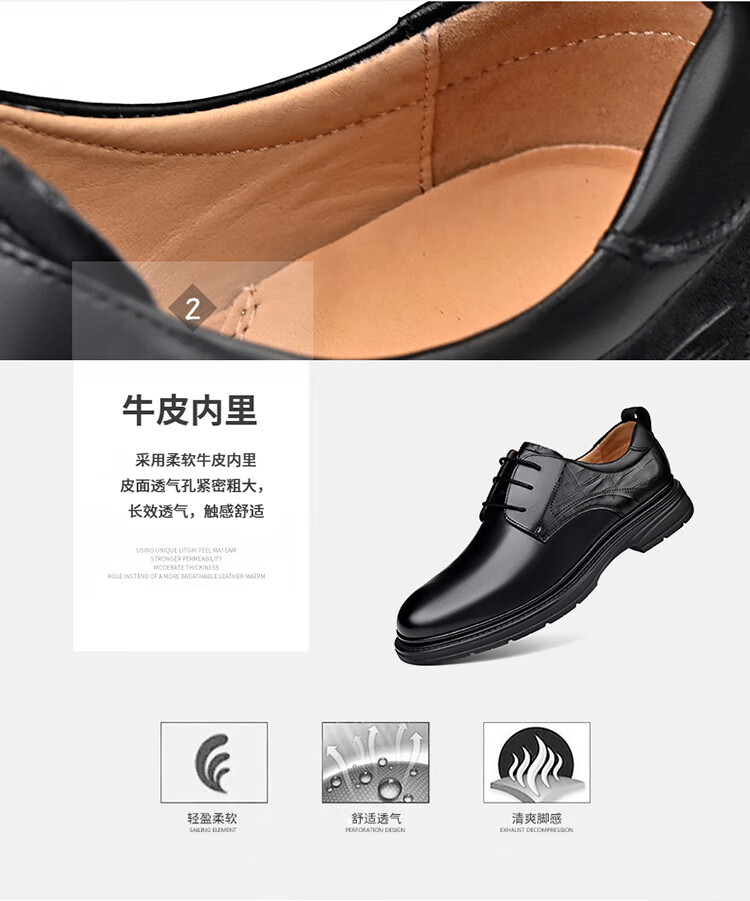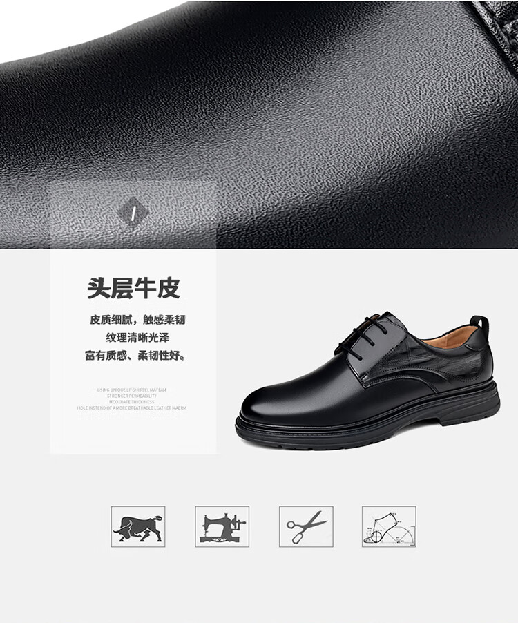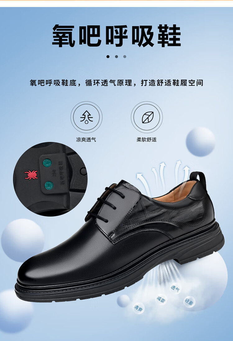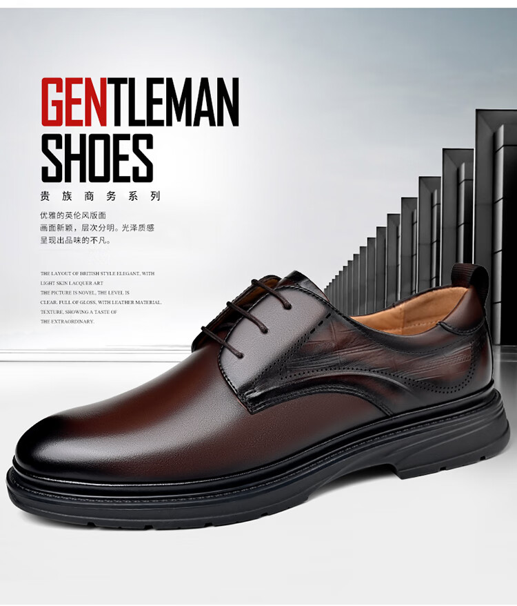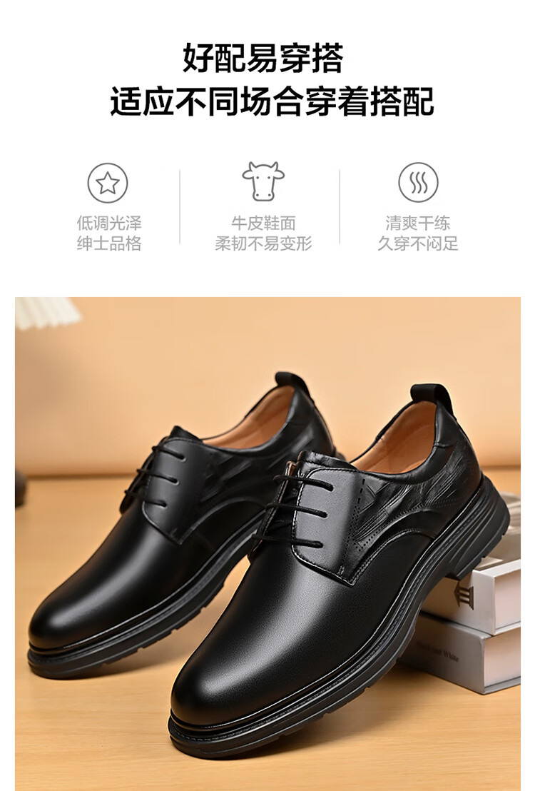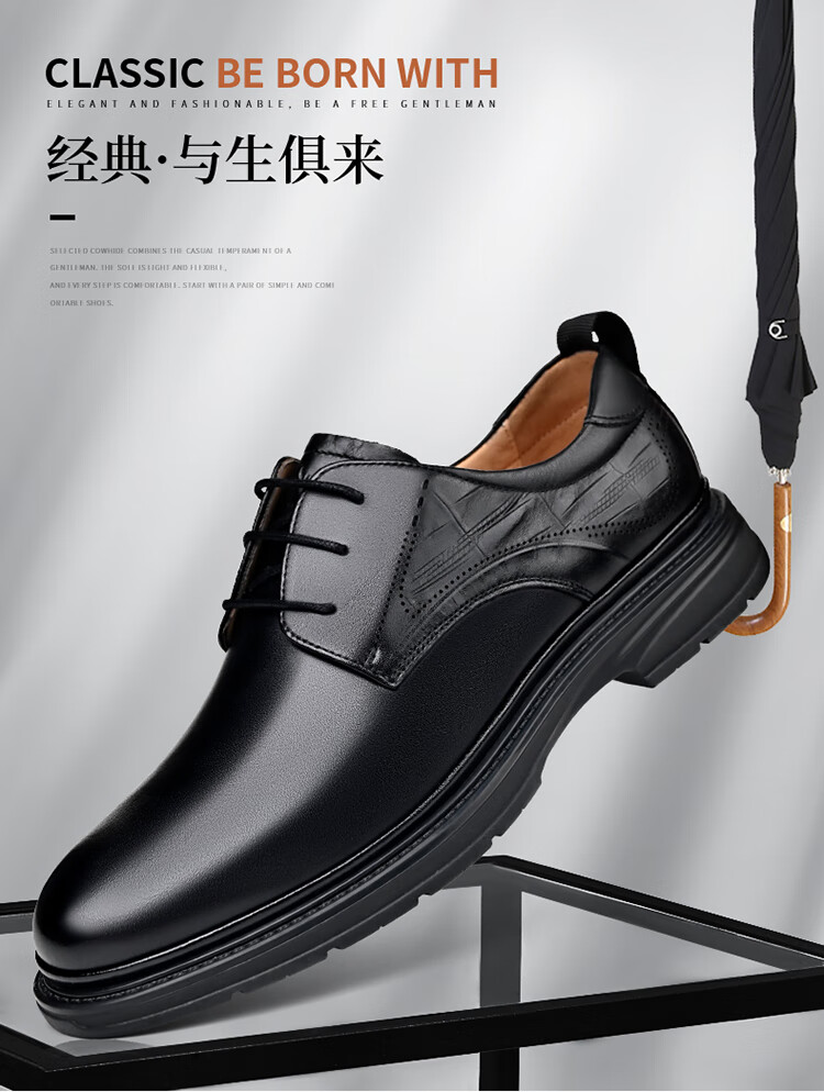 金利来(Goldlion)男鞋商务正装皮鞋轻质耐磨英伦风德比鞋皮鞋男经典休闲皮鞋 黑色 39