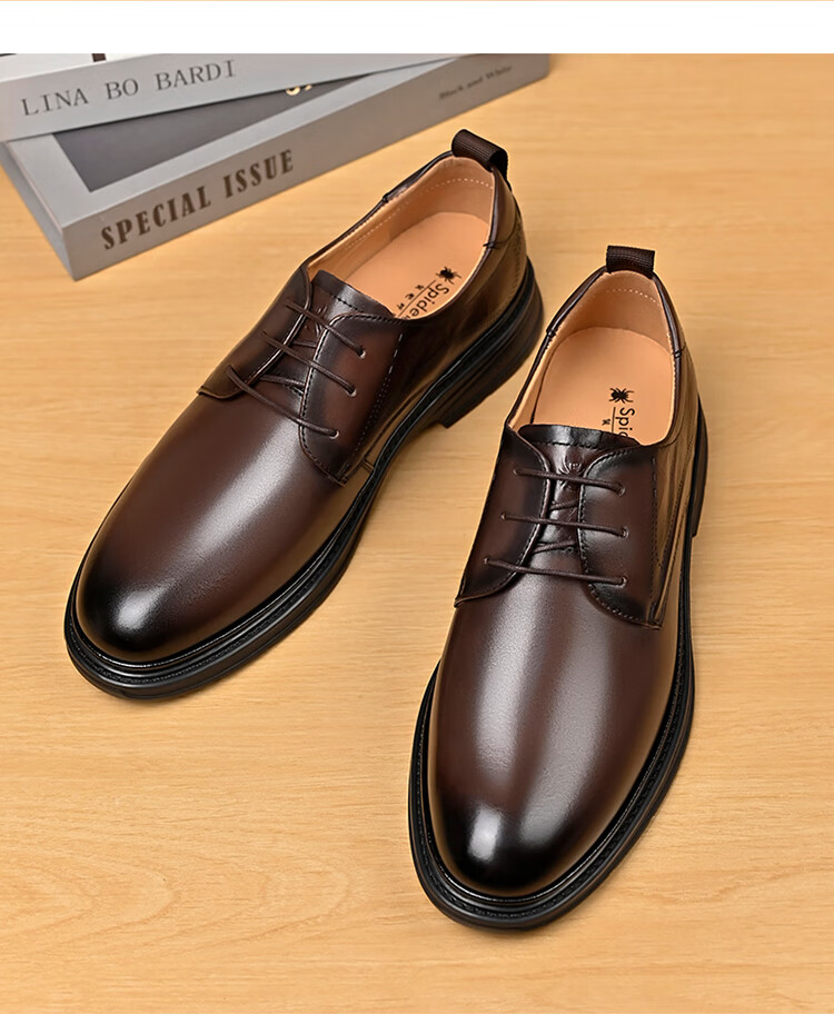 蜘蛛王男鞋商务正装皮鞋男牛皮德比鞋子年轻人结婚新郎鞋男士 棕色 41