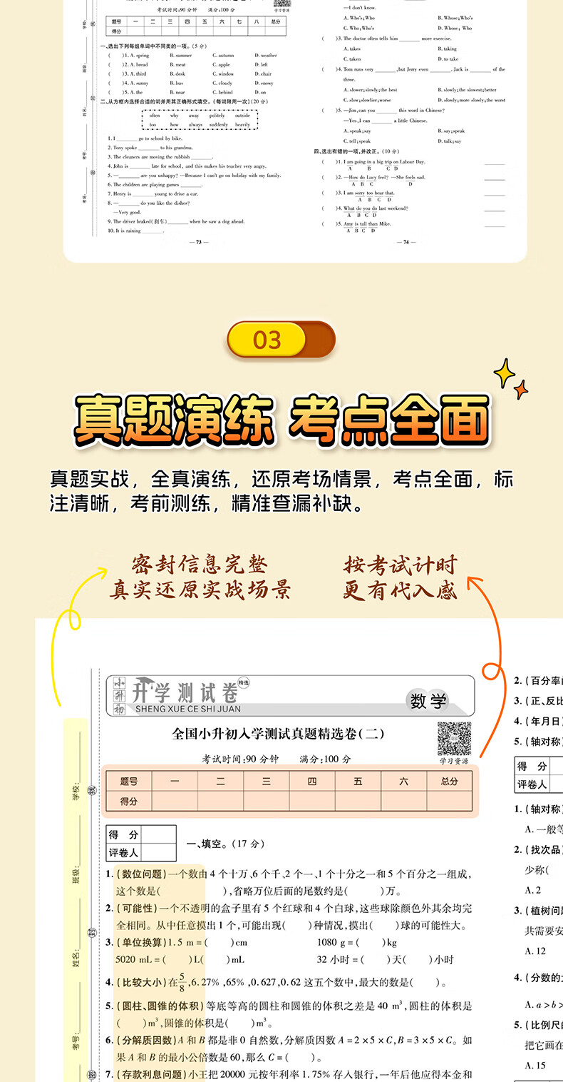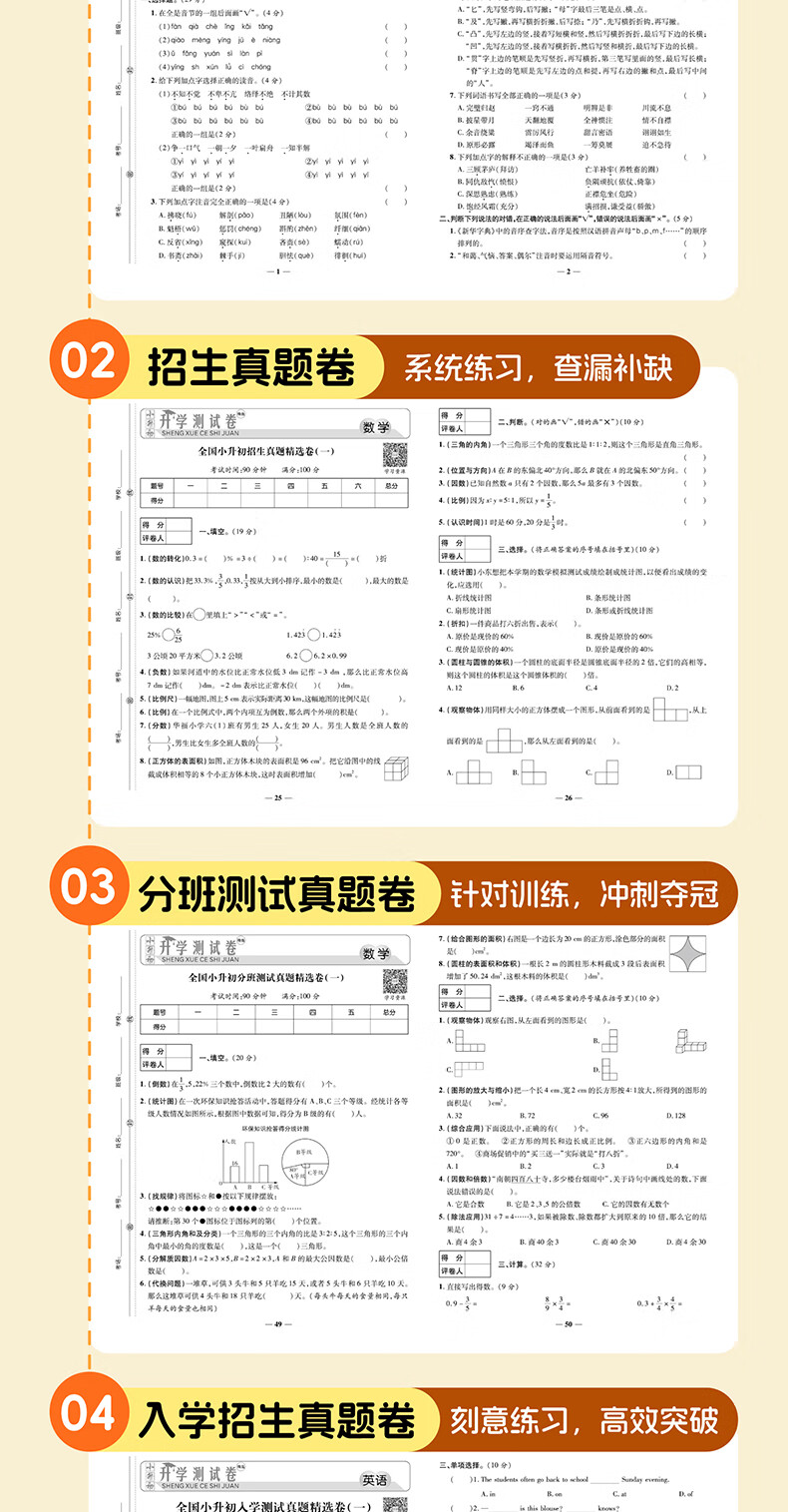 25新版小升初真题卷测试卷押题卷全真模拟试卷题语文数学英语人教版小学毕业升学总复习入学测试卷练习册六年级下册名校模拟试卷测试卷全套卷子 小升初毕业总复习入学测试卷数学
