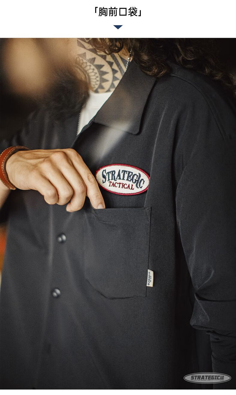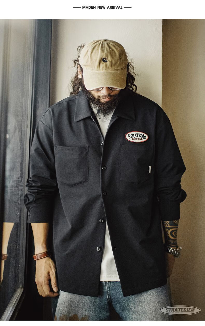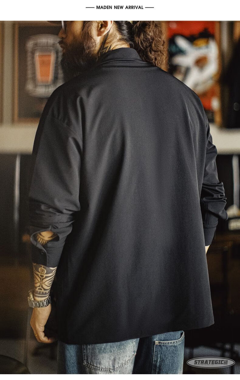 马登工装美式黑色口袋衬衫长袖梭织山系薄款机能通勤衬衣外套男秋 曜石黑 【顺丰/24小时速发】 2XL