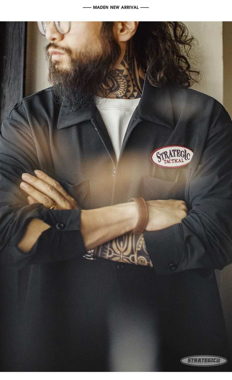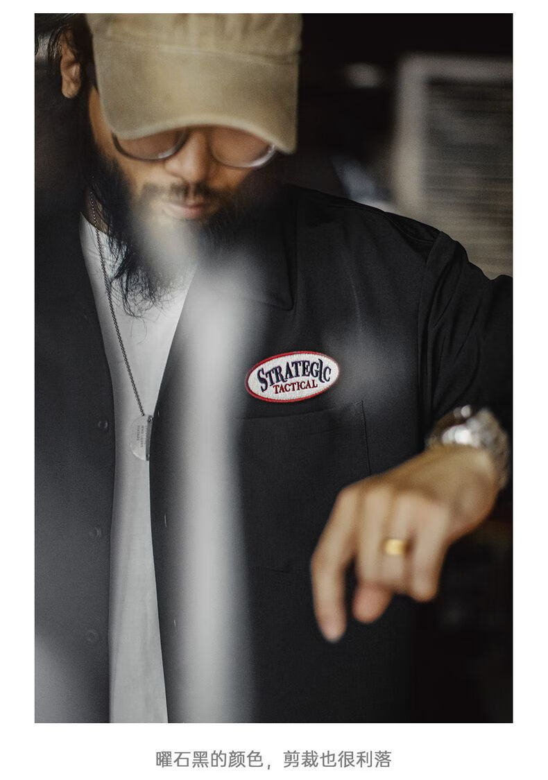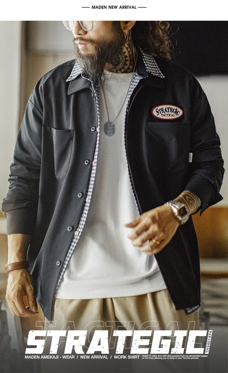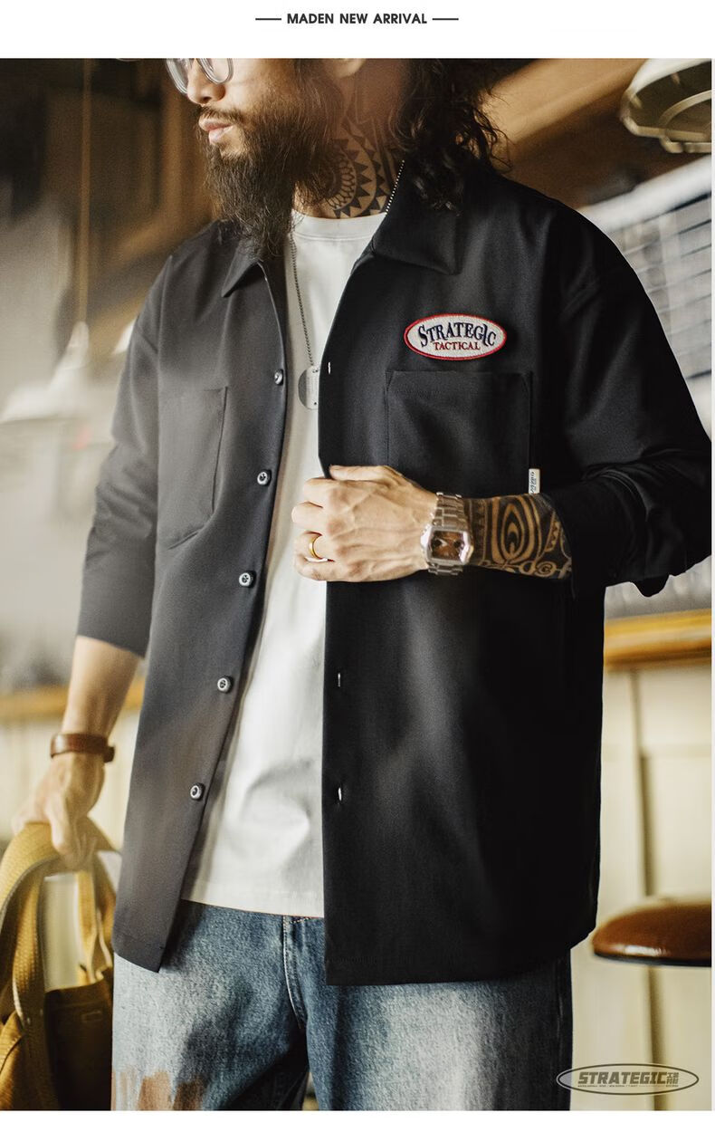 马登工装美式黑色口袋衬衫长袖梭织山系薄款机能通勤衬衣外套男秋 曜石黑 【顺丰/24小时速发】 2XL