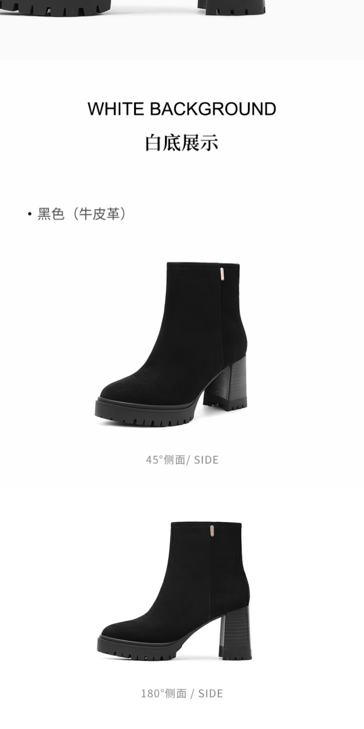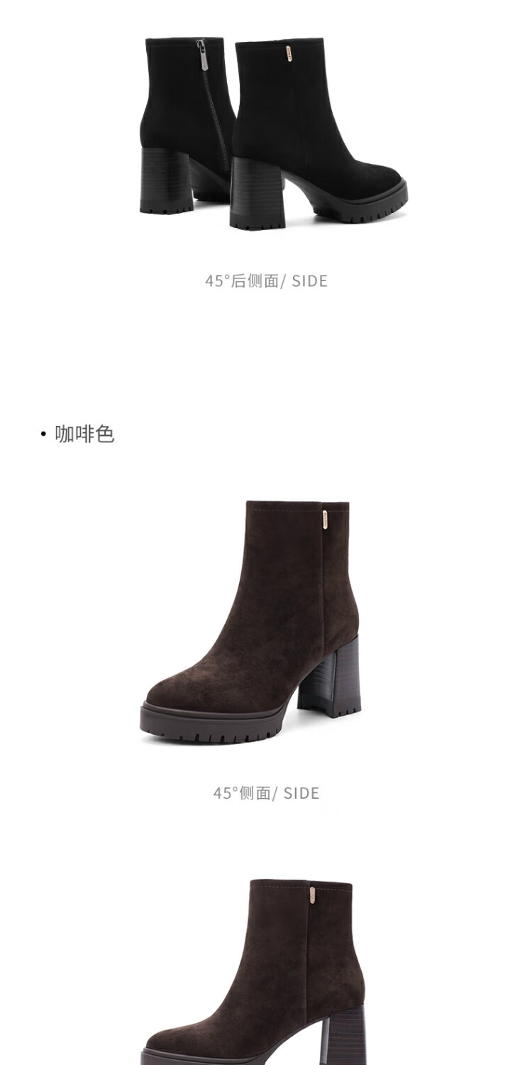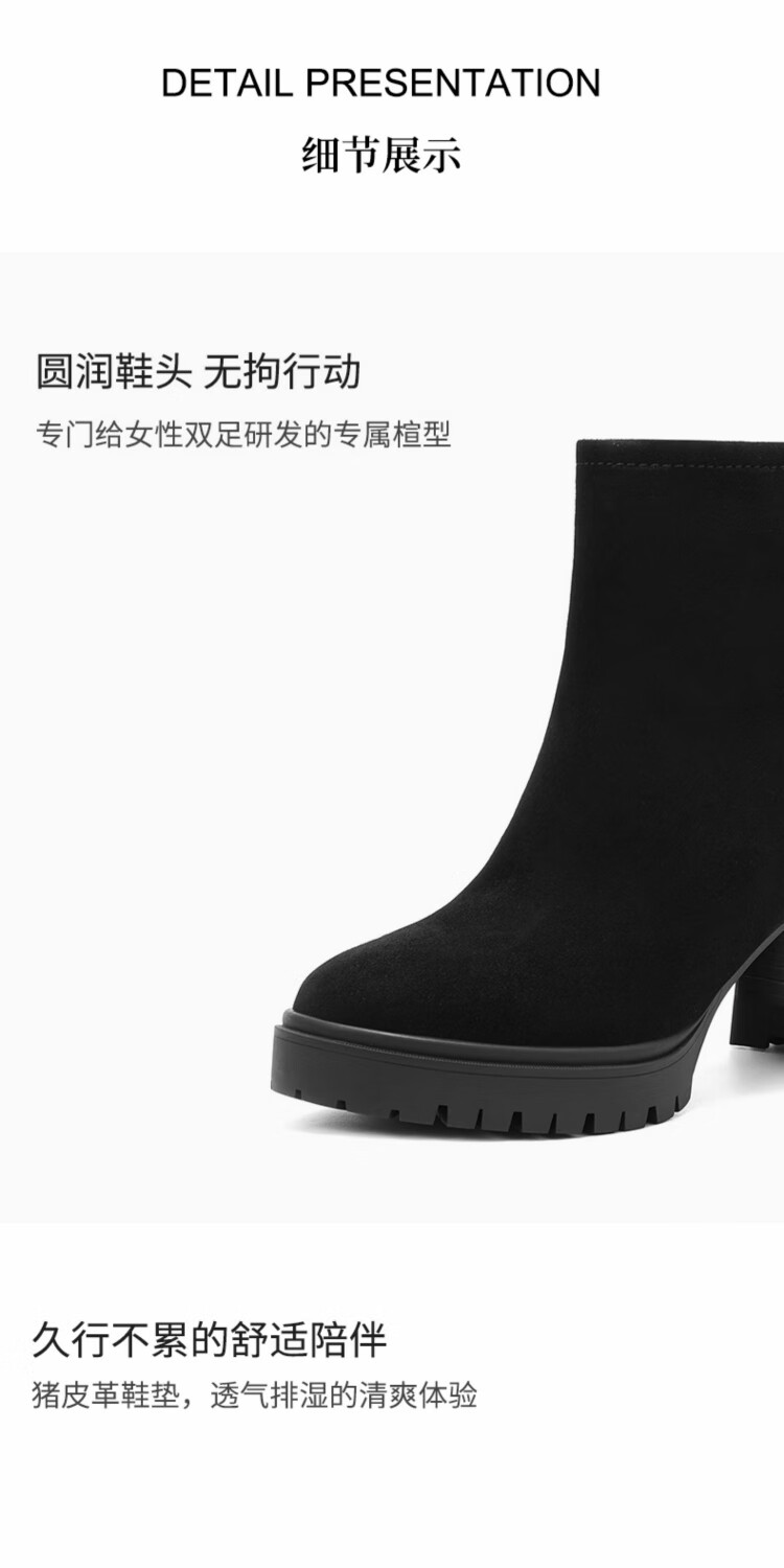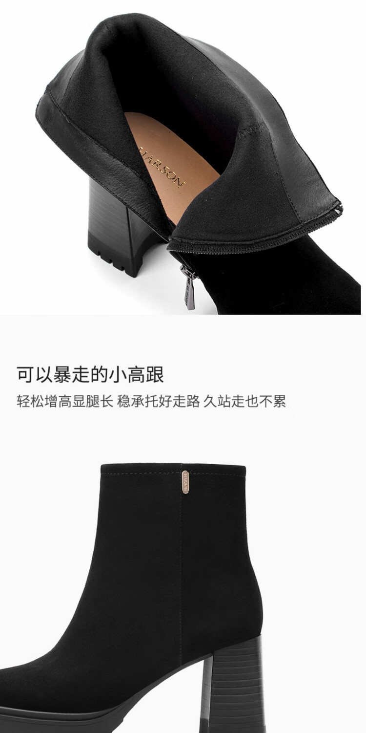 哈森百搭高跟时装靴女2025秋冬新款增高瘦瘦靴HA257115 黑色 羊反绒面革 34