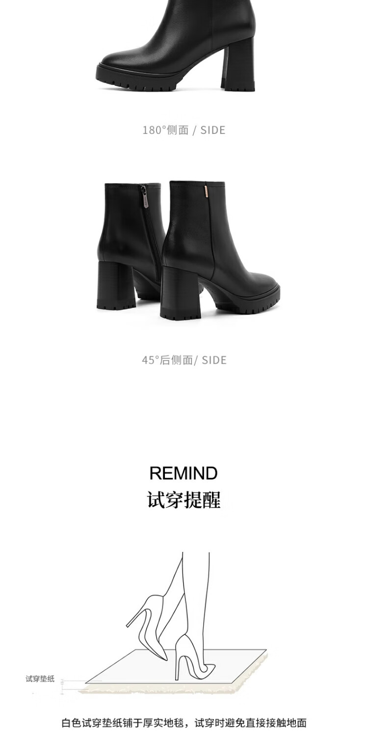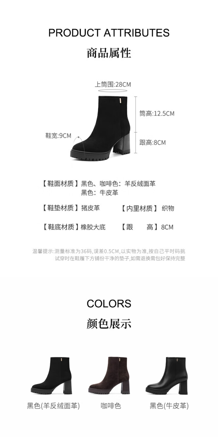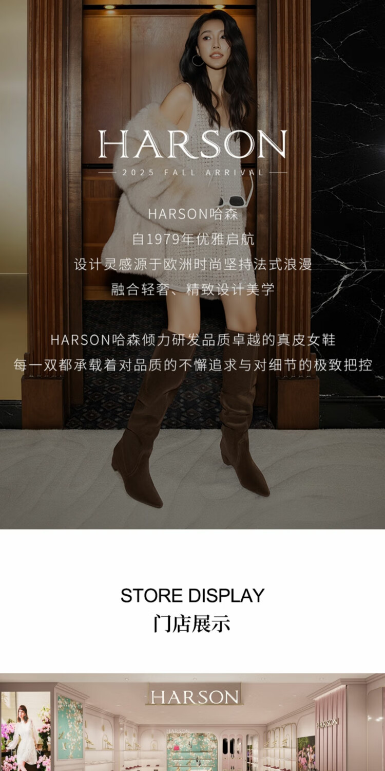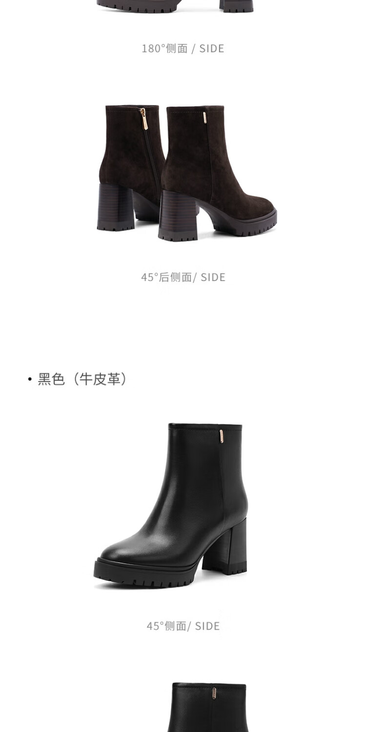 哈森百搭高跟时装靴女2025秋冬新款增高瘦瘦靴HA257115 黑色 羊反绒面革 34