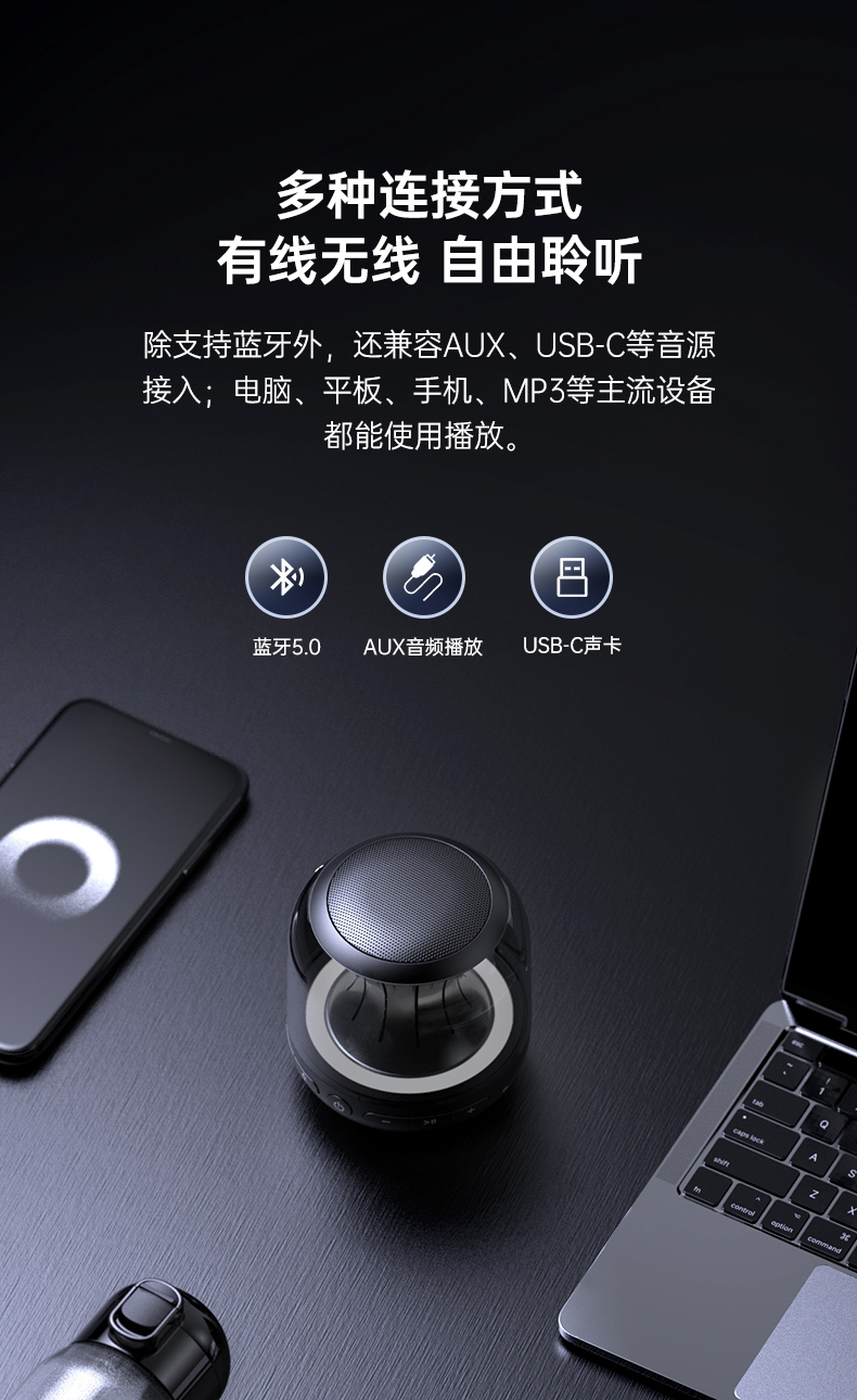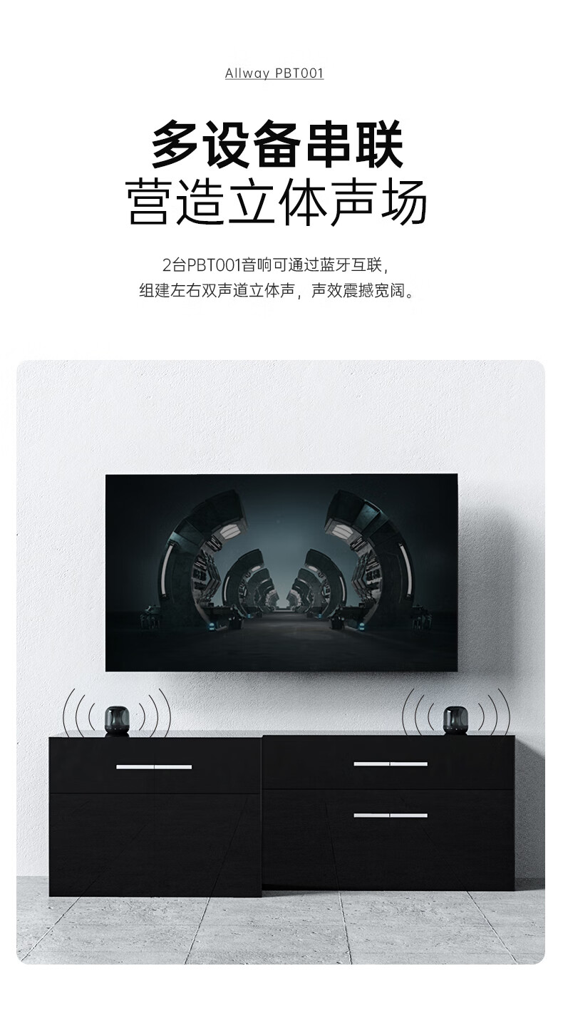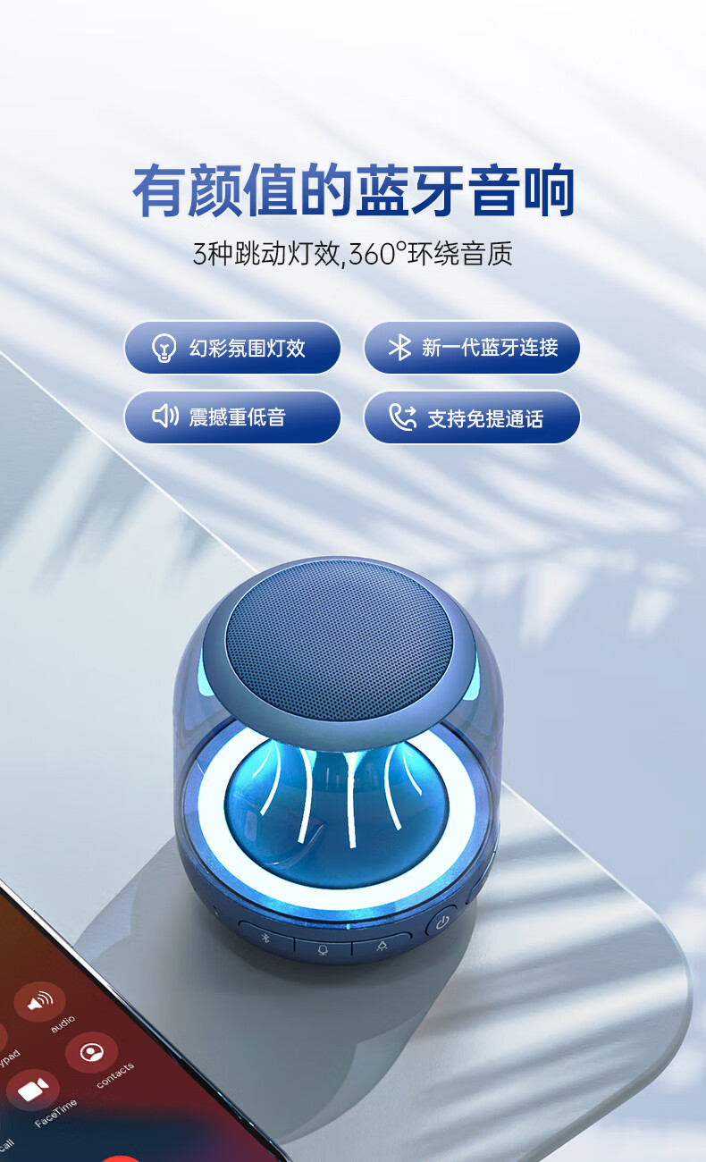 ALLWAY小型蓝牙音响家用桌面小音响户外便携式迷你喇叭超长续航高音质带氛围灯低音炮立体环绕音效PBT001 PBT001蓝色 幻彩灯效迷你小音响