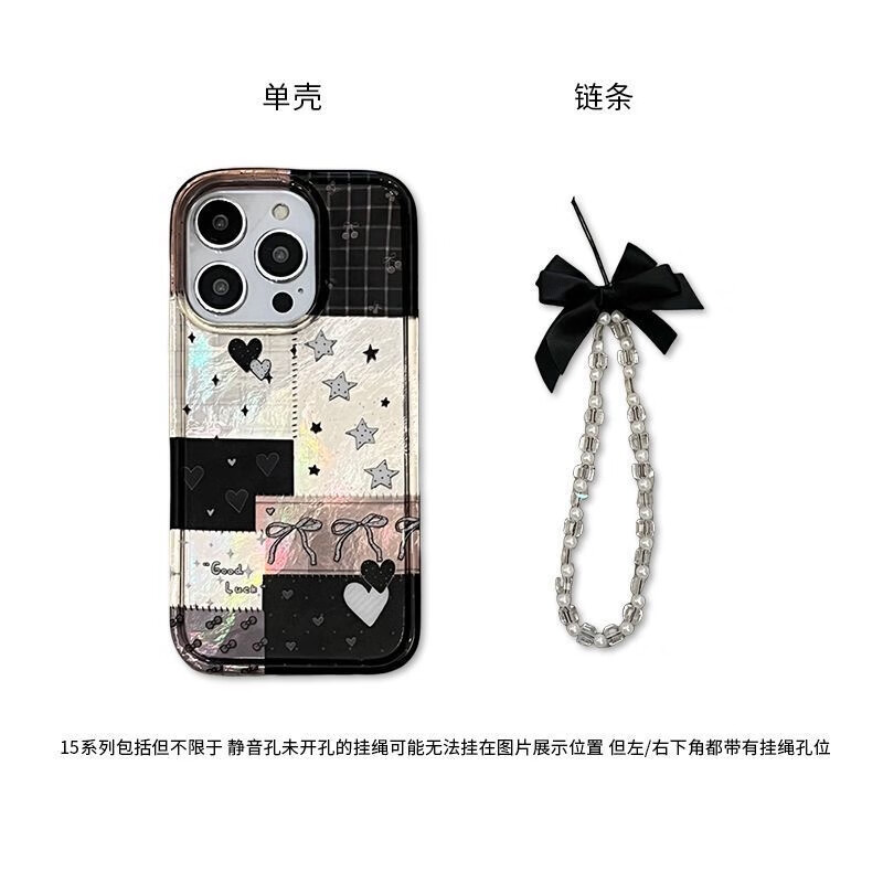 爱心星星蝴蝶结适用苹果1516PROMAX手机壳161415新潮款13带链条12 透孔漩涡壳+爱心星星蝴蝶结+链条 【苹果11-17型号都有】