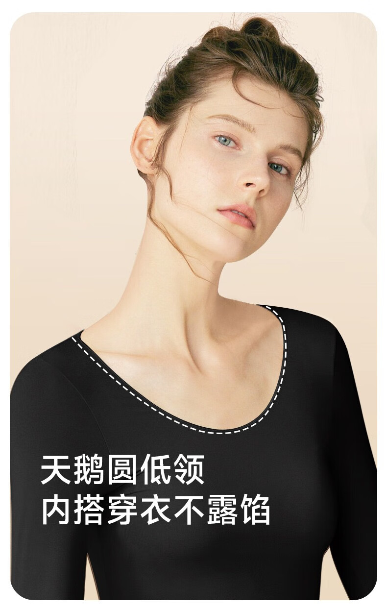 美·雅·挺保暖内衣女隐形肌底衣秋衣秋裤套装加绒加厚轻暖打底衫无痕轻薄款 【套装】黑色 L【建议80-120斤】