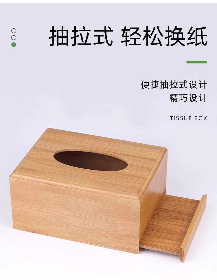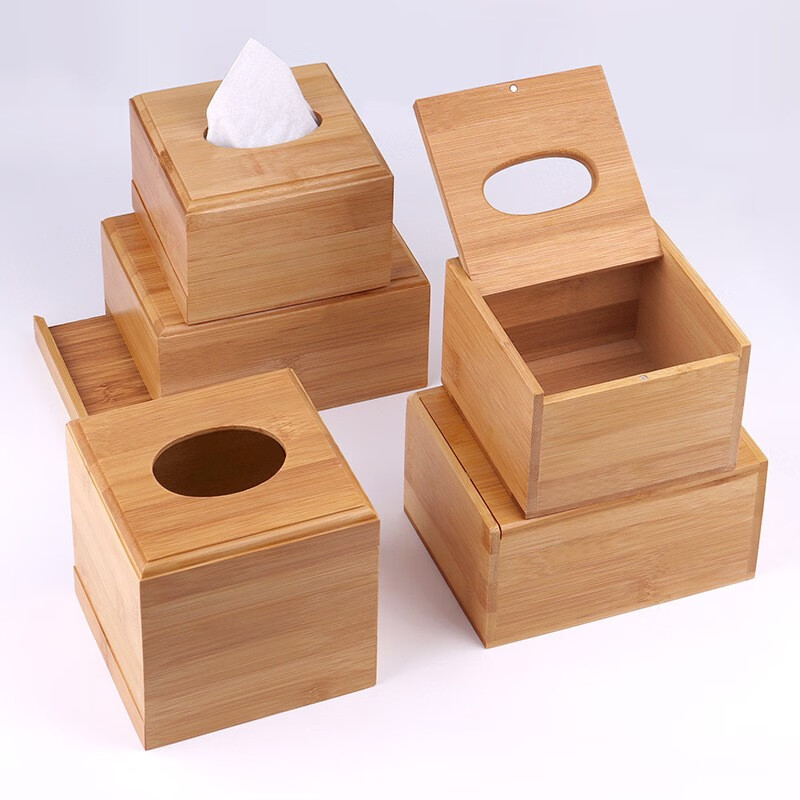 娑娜依饭店竹木制纸巾盒收纳盒桌面抽纸盒餐巾纸抽盒酒店用品定制LOGO 竹木底抽小号不加LOGO