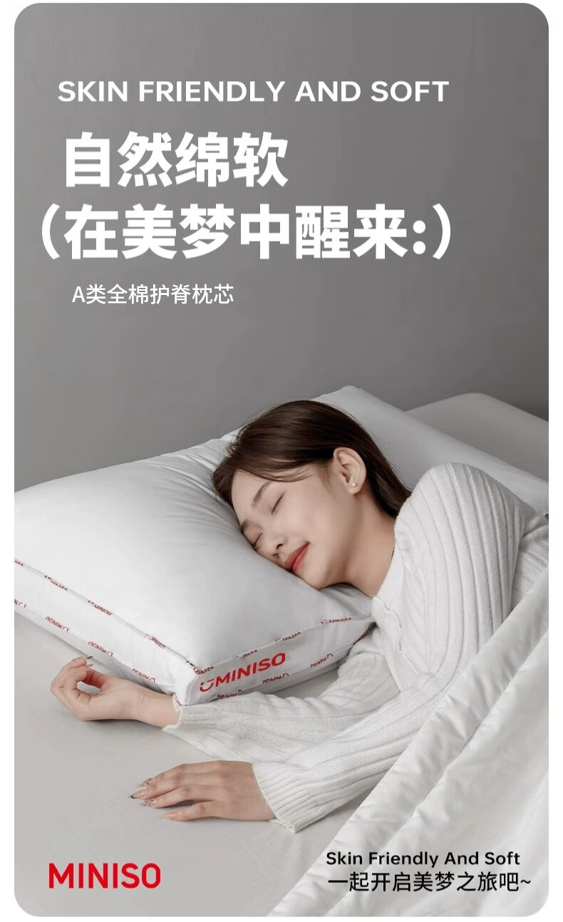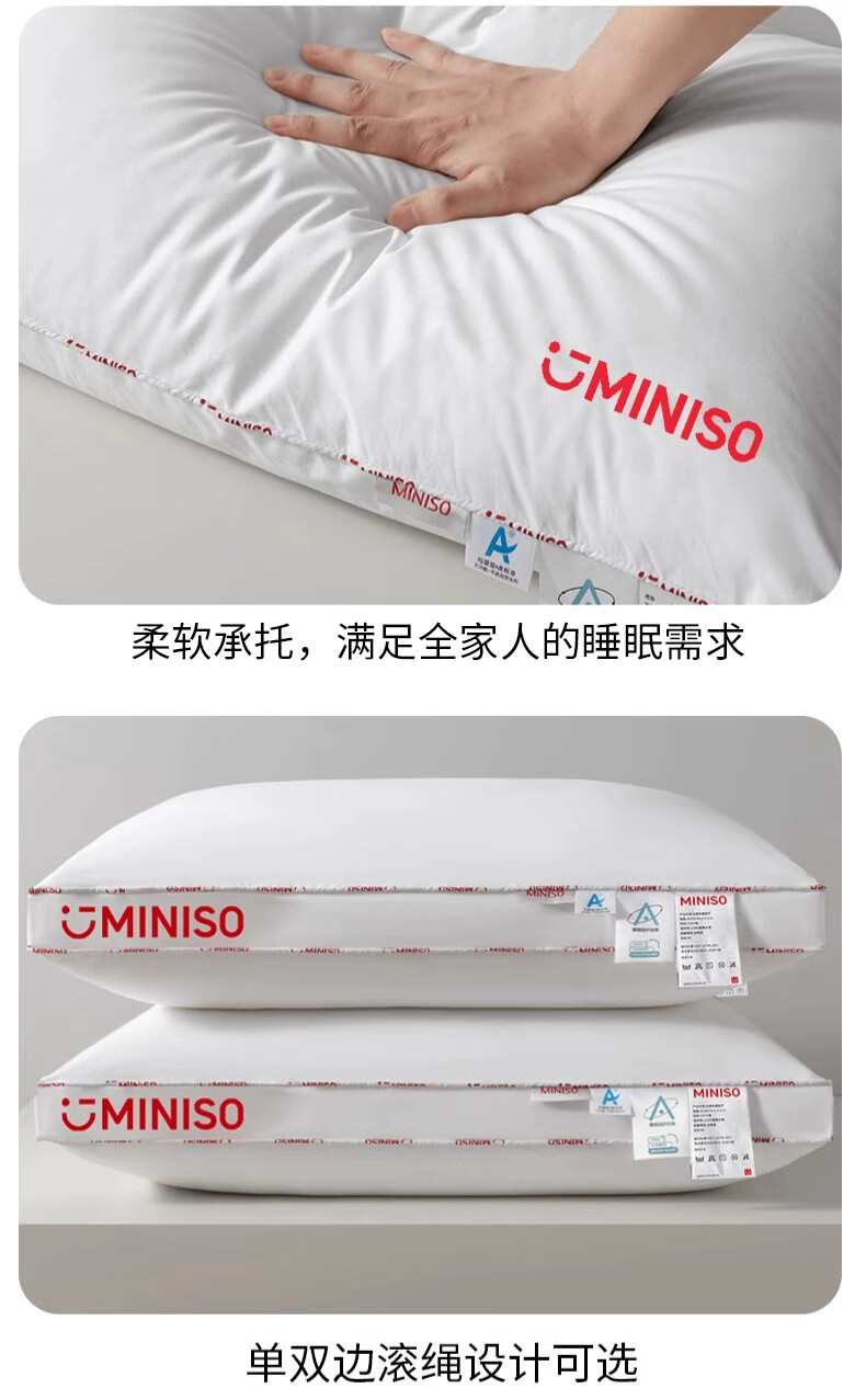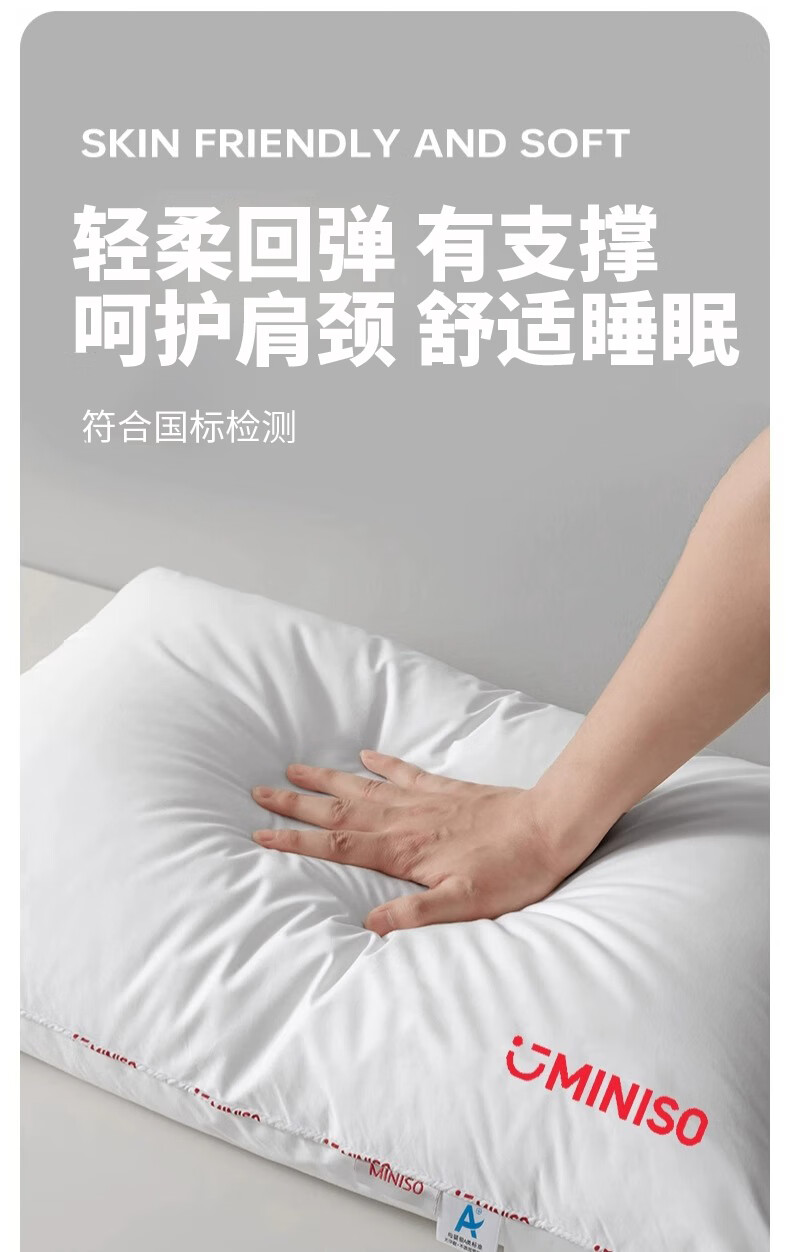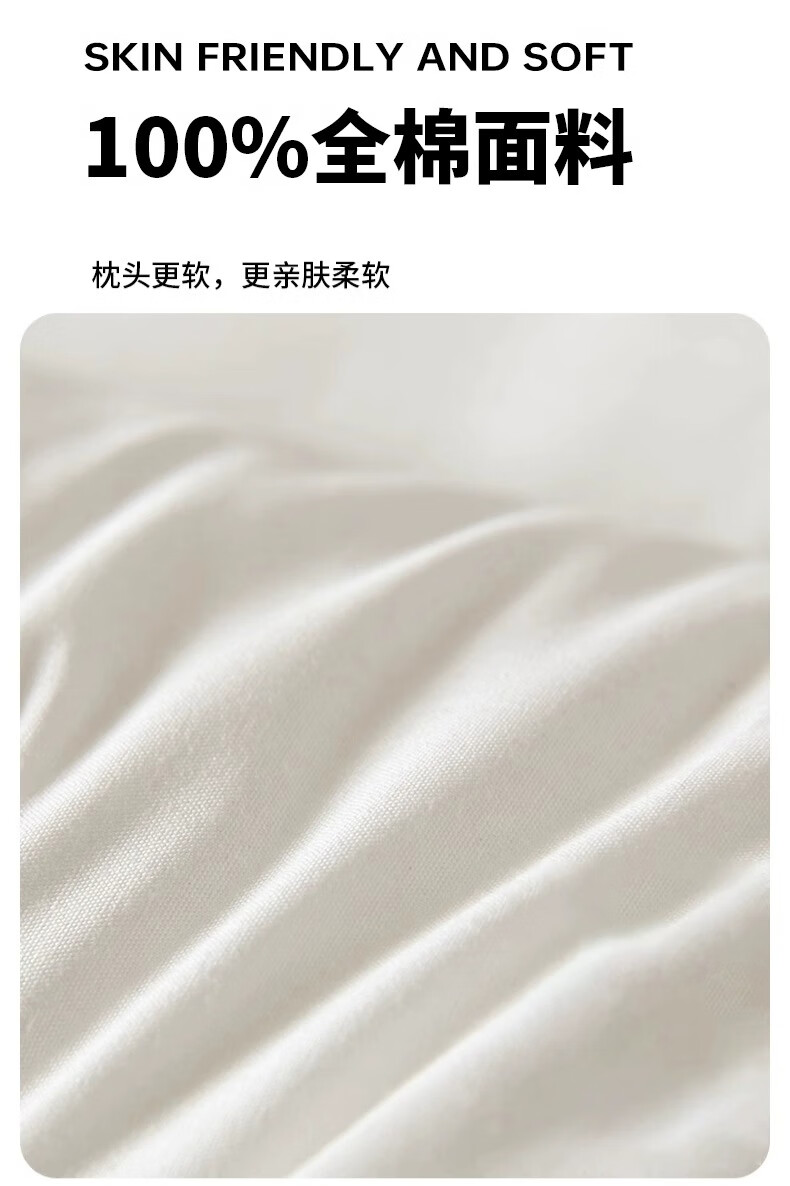 名创优品全棉枕头护颈椎酒店枕芯一对深度睡眠成人青少年学生宿舍低中高整 全棉单边中枕【一对装】 全棉面料 国标A类