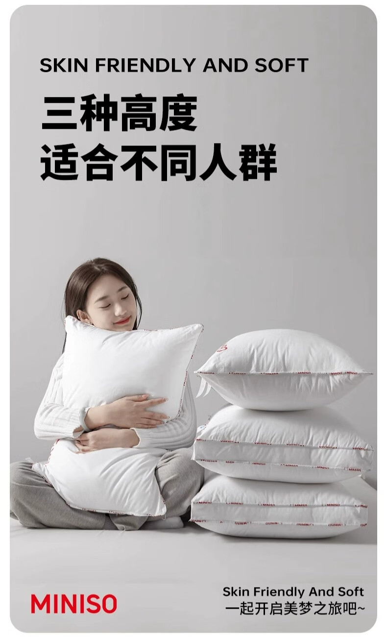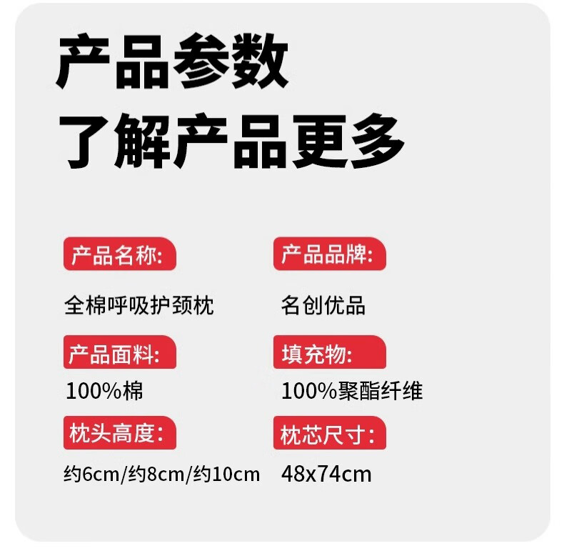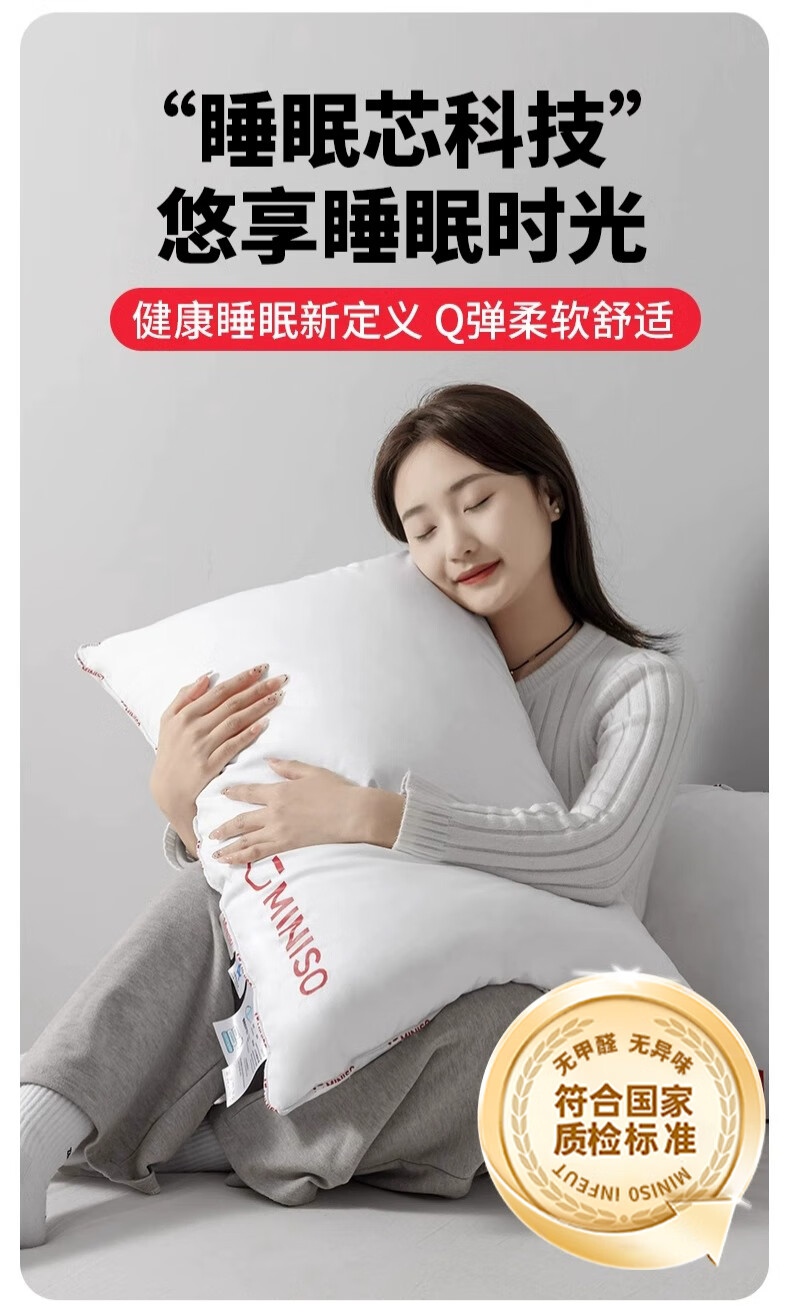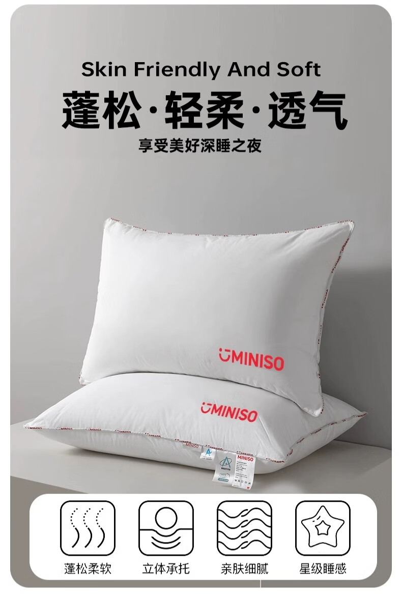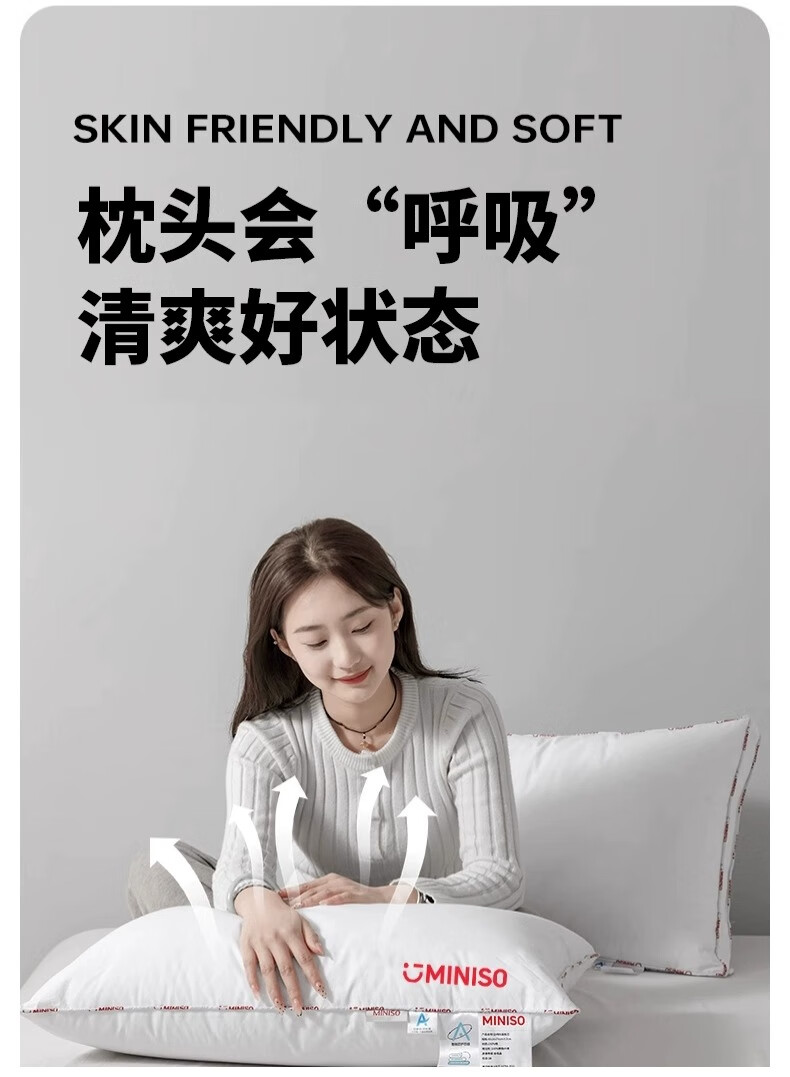 名创优品全棉枕头护颈椎酒店枕芯一对深度睡眠成人青少年学生宿舍低中高整 全棉单边中枕【一对装】 全棉面料 国标A类