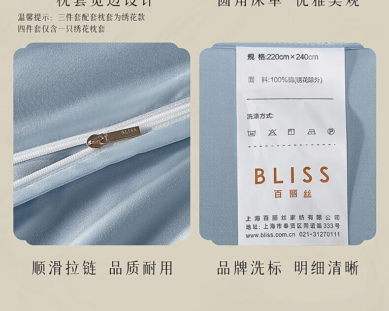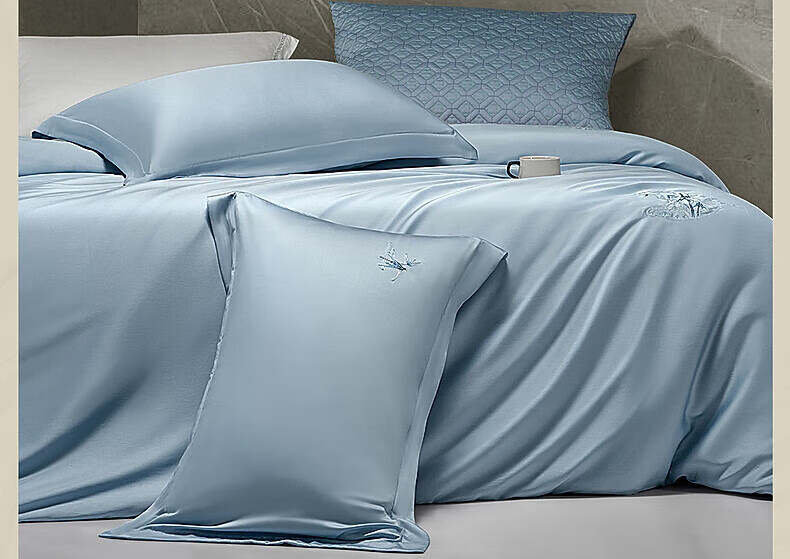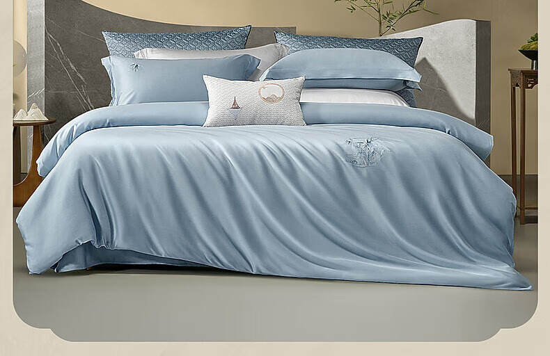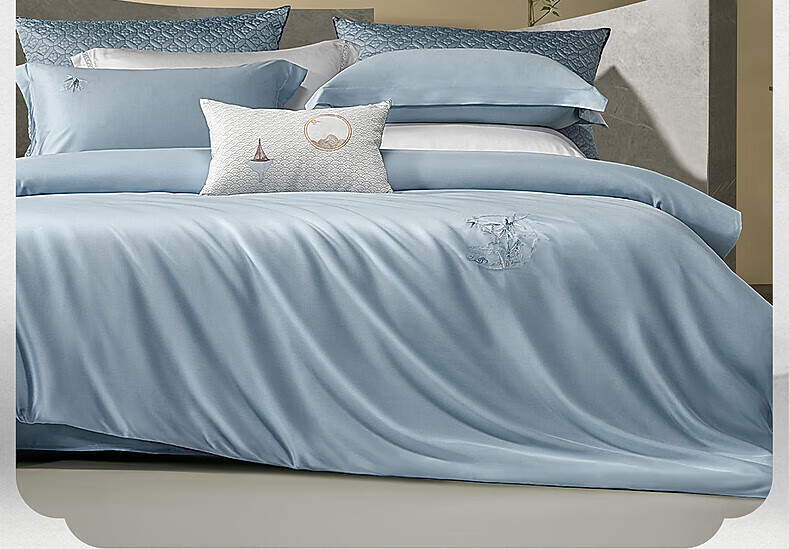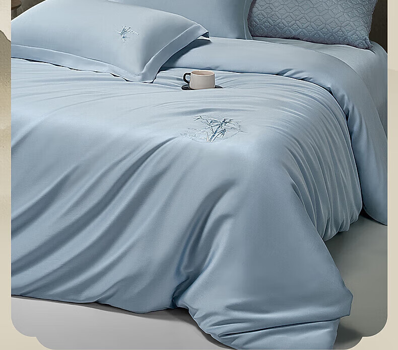 百丽丝三四件套60s纯棉贡缎绣花套件冬季床上四件套 60支长绒棉国风刺绣套件(伊莲青) 床单款 (被套200*230cm)