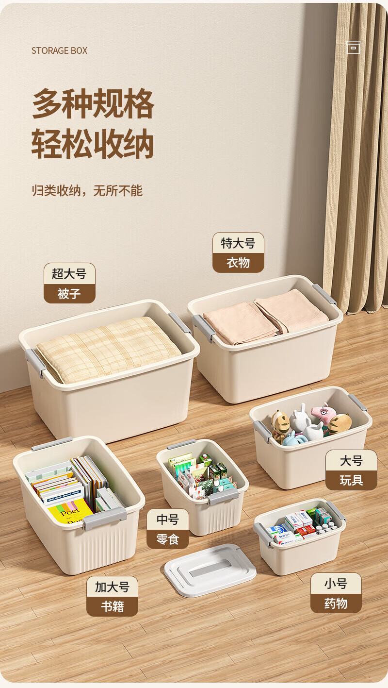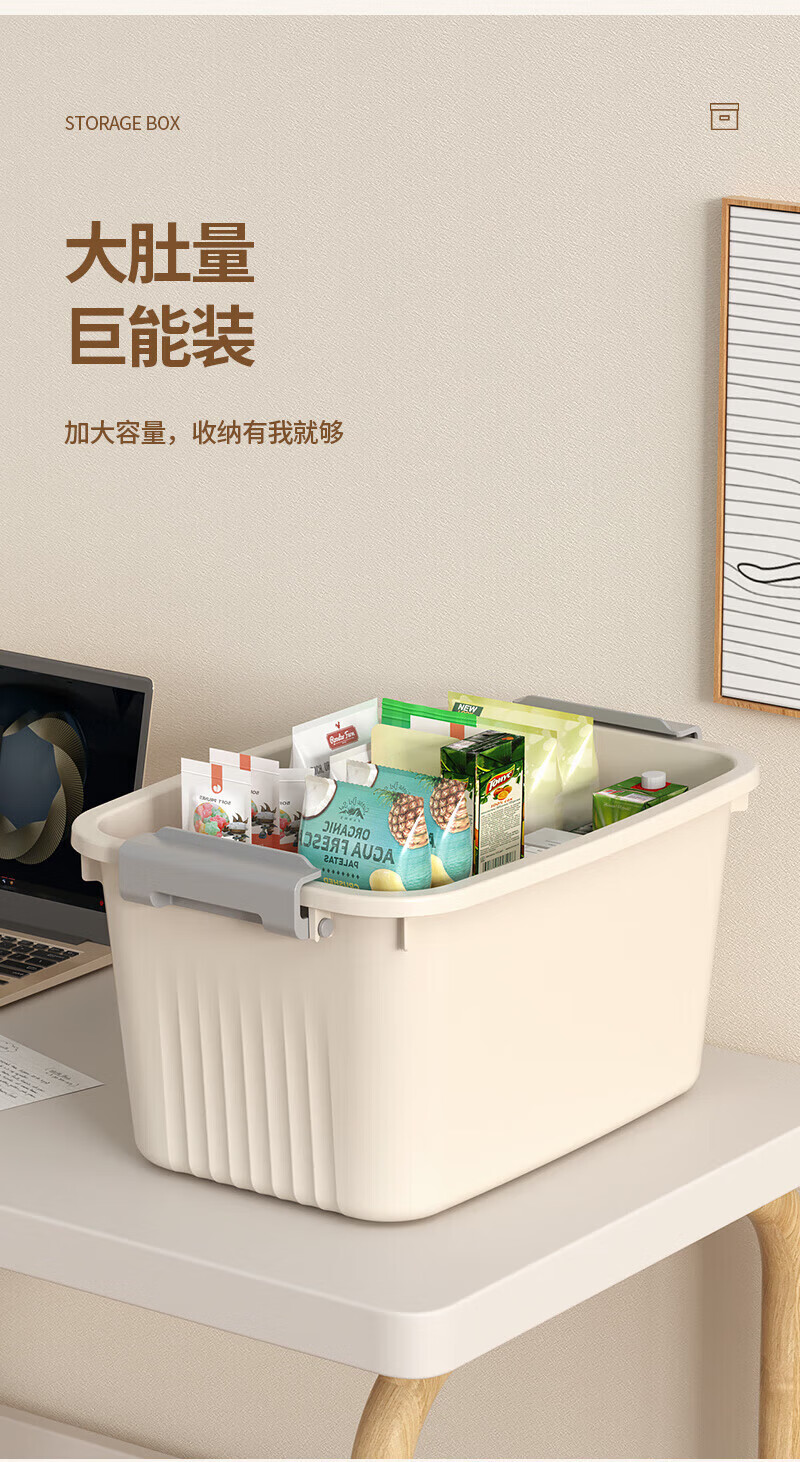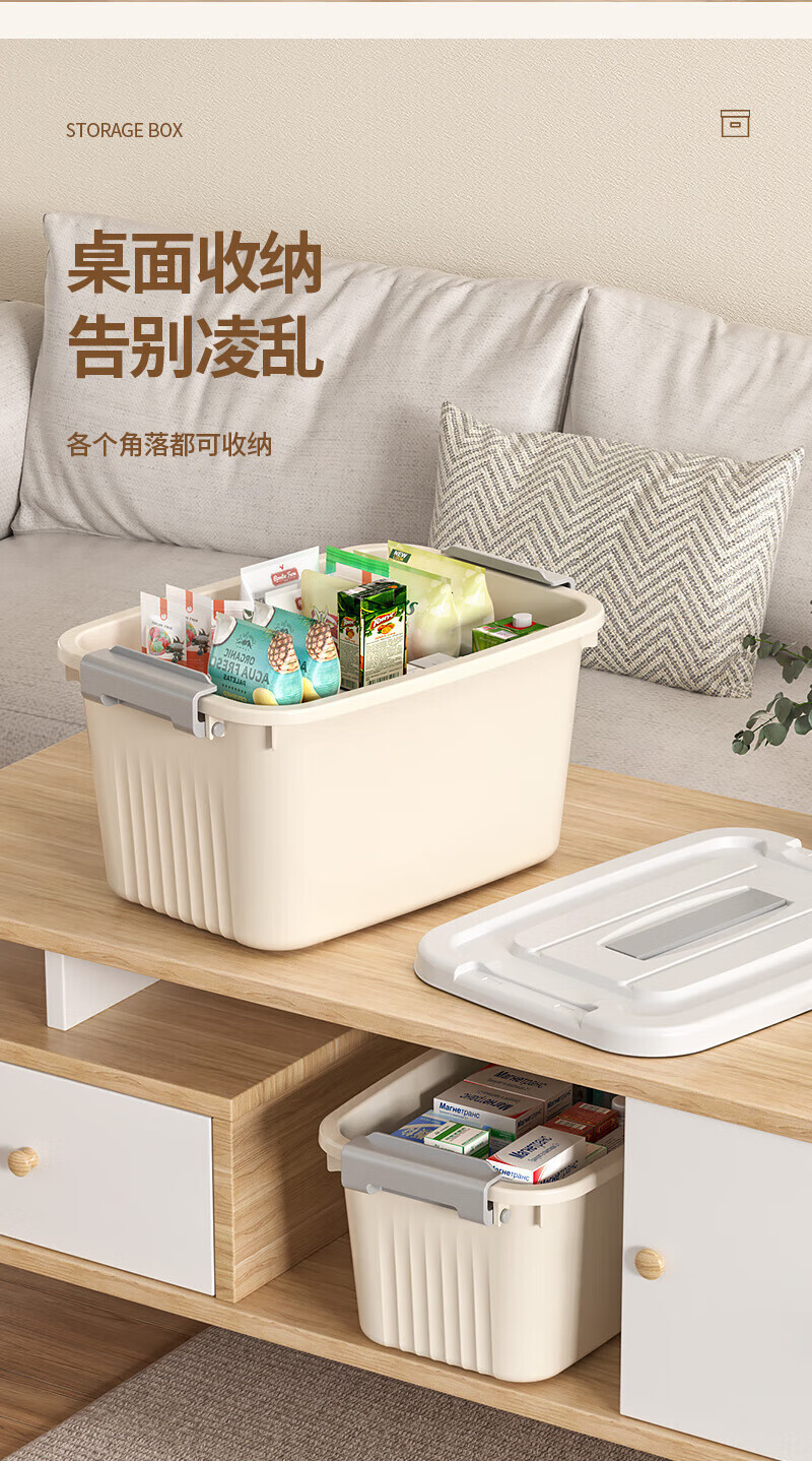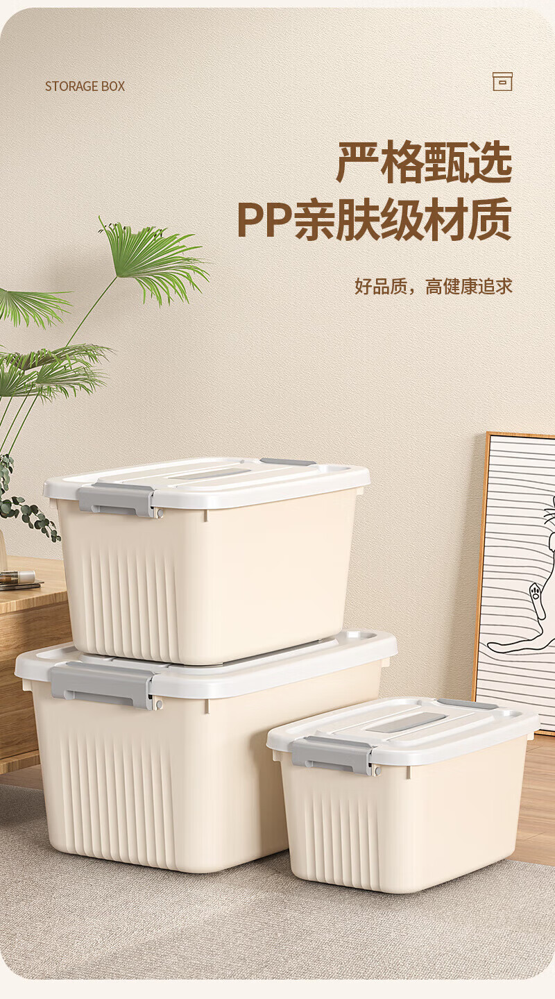 稻草熊(DOCOXO)大号塑料收纳箱加厚家用杂物容器客厅整理桌面置物储物筐整理箱 奶咖大号三个【18L带盖加高款】