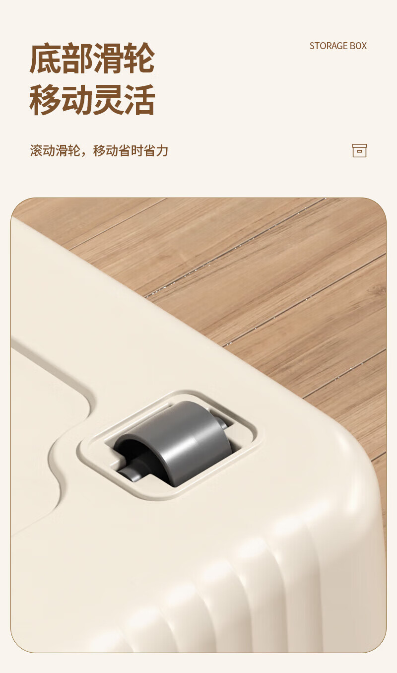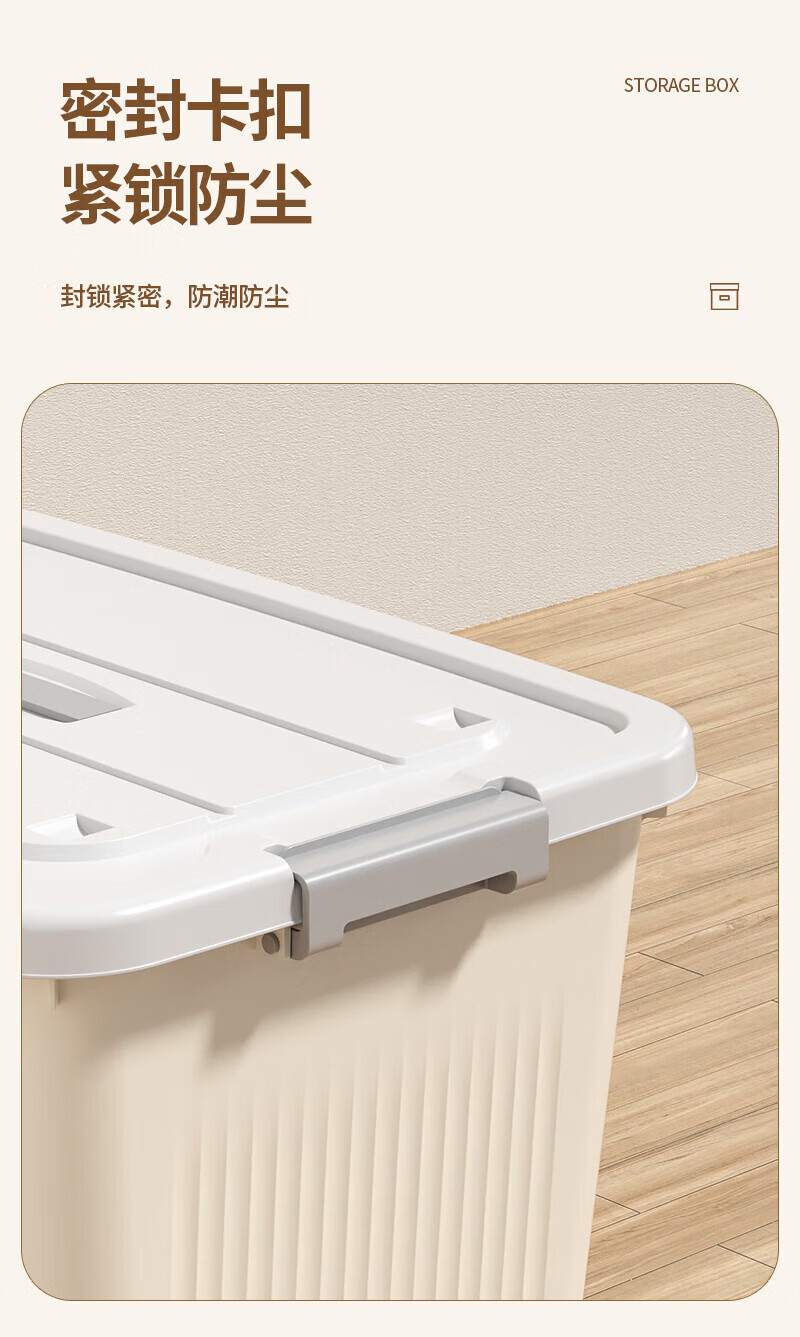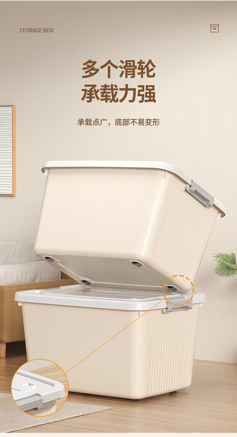 BABY VIEW收纳箱储物整理箱加厚衣物玩具大号密封车载带轮搬家塑料收纳盒 超大号奶油白【51*37*29】带轮