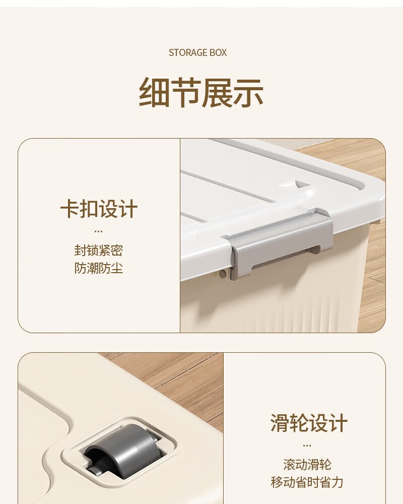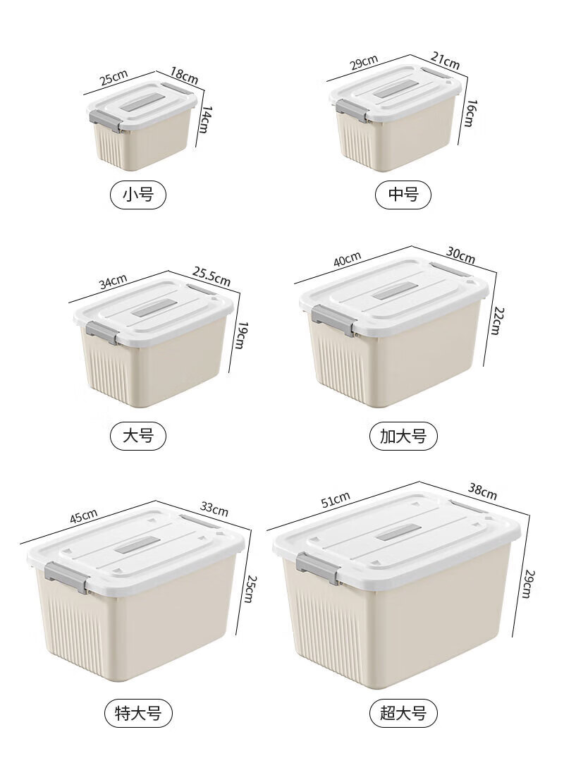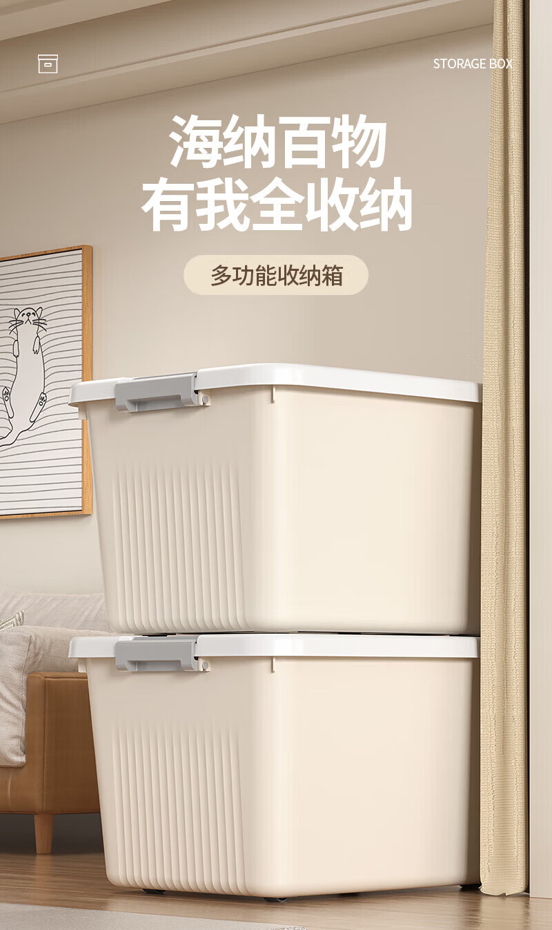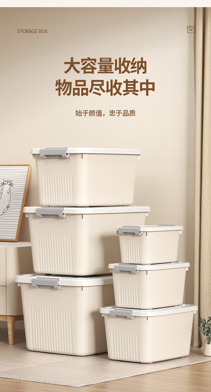 BABY VIEW收纳箱储物整理箱加厚衣物玩具大号密封车载带轮搬家塑料收纳盒 超大号奶油白【51*37*29】带轮
