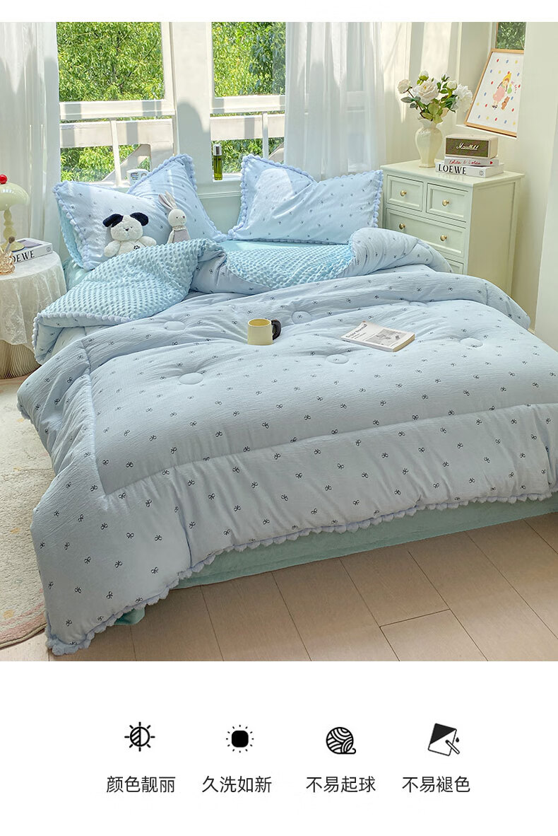 苏萱小清新豆豆绒被子被芯秋冬加厚保暖冬被学生宿舍单人棉被春秋薄被 爱心点点 110x150cm儿童被【约重2斤 适合室温25°C】