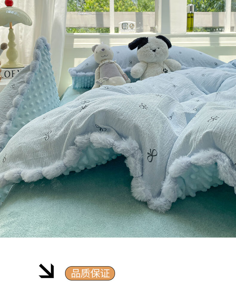 名创优品双层纱夹棉床笠罩1.8米x2米加厚全包床垫保护套床上用品四季通用 泡芙小狗 150cm*200cm 单床笠