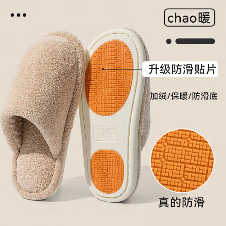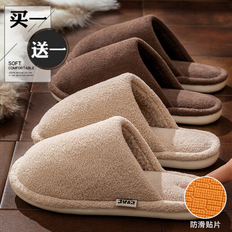 DEATKN德国买1送1棉拖鞋女秋冬2025新款室内家居厚实保暖毛绒情侣 米白色+灰色 38-39 [2双]