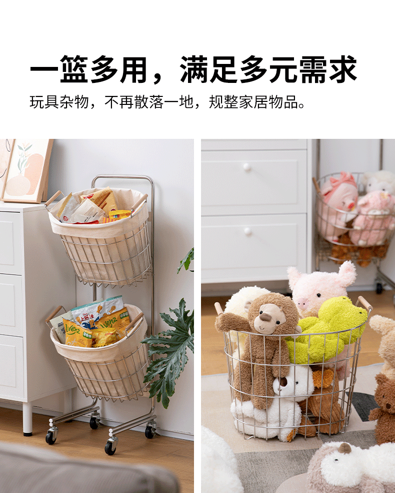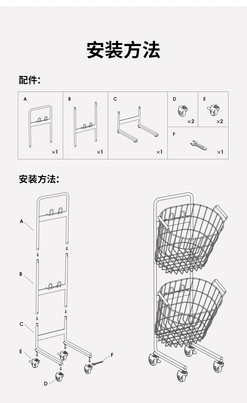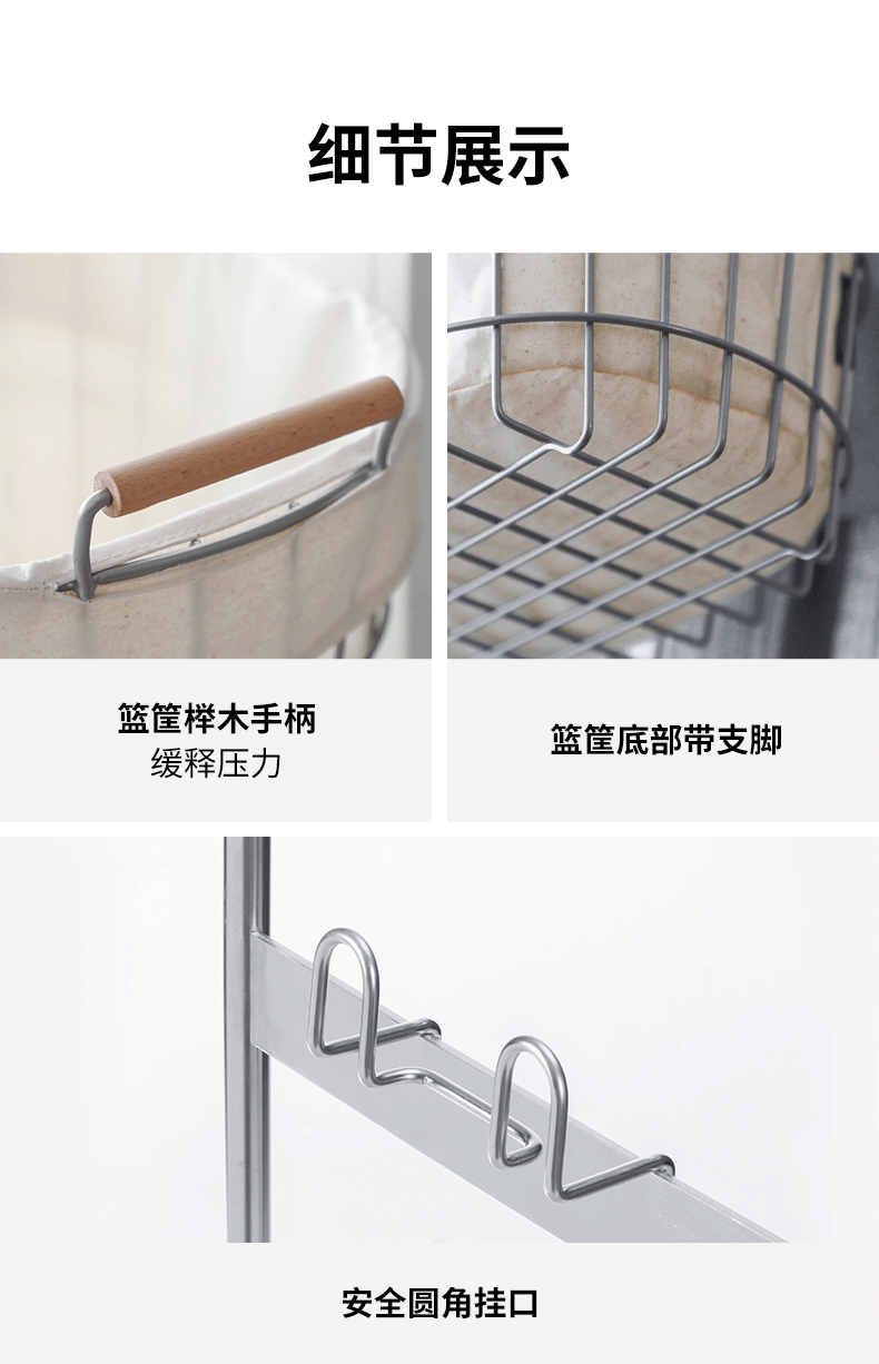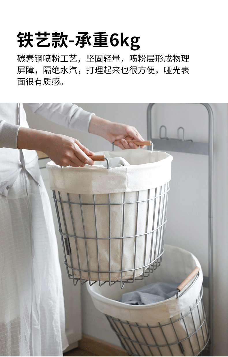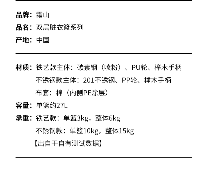 霜山双层脏衣篮家用移动大容量脏衣篓分类收纳筐卫生间洗衣小推车 【不锈钢】面宽42*进深34.5*高107.5cm