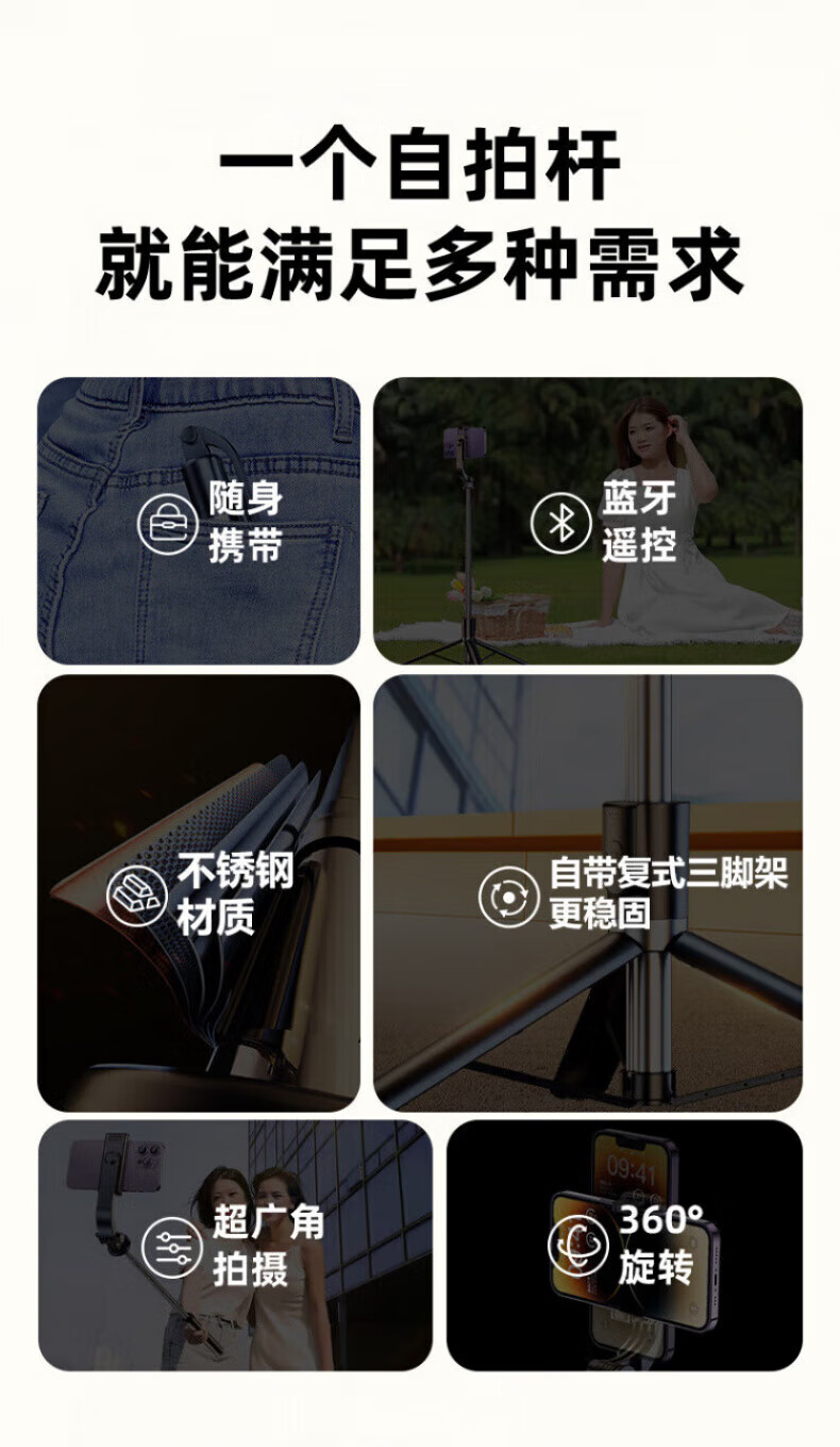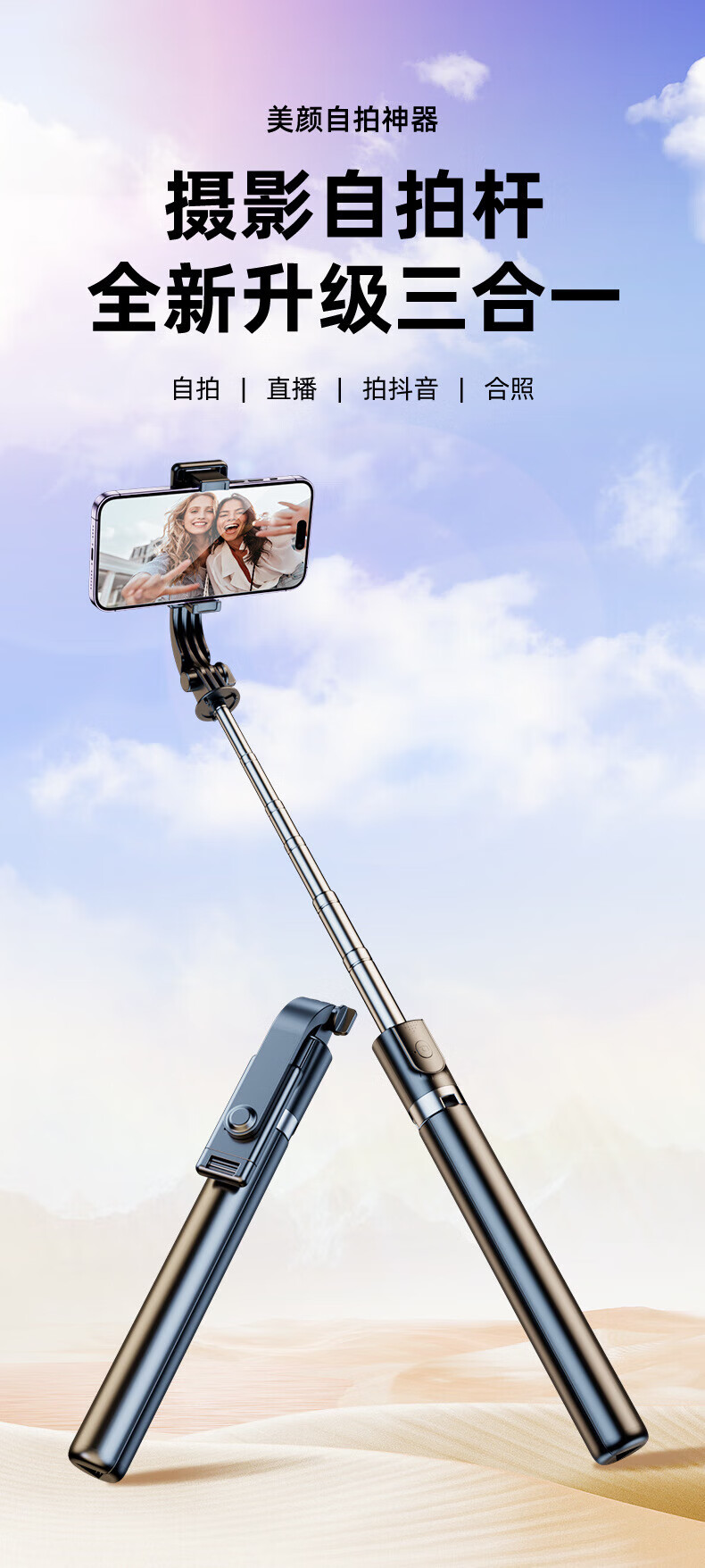 DEATKN德国高端2025自拍杆支架三脚架迷你旅游便携360度旋转自拍神器手机遥控无线防抖拍摄蓝牙手持 1.3米[经典款]复式三脚架*蓝牙遥