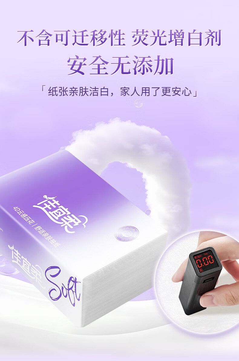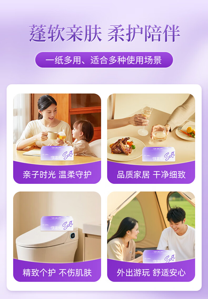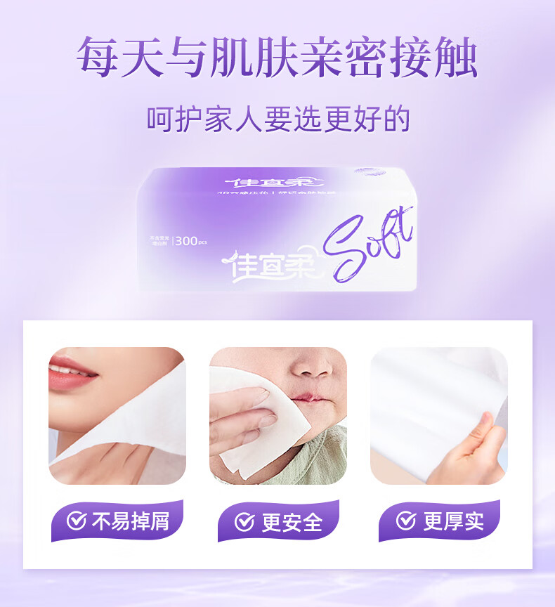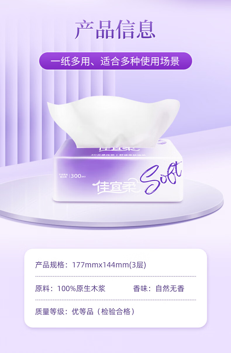 佳宜柔抽纸3层100抽*6包柔韧棉感100%原生木浆家用纸巾卫生纸餐巾双十一