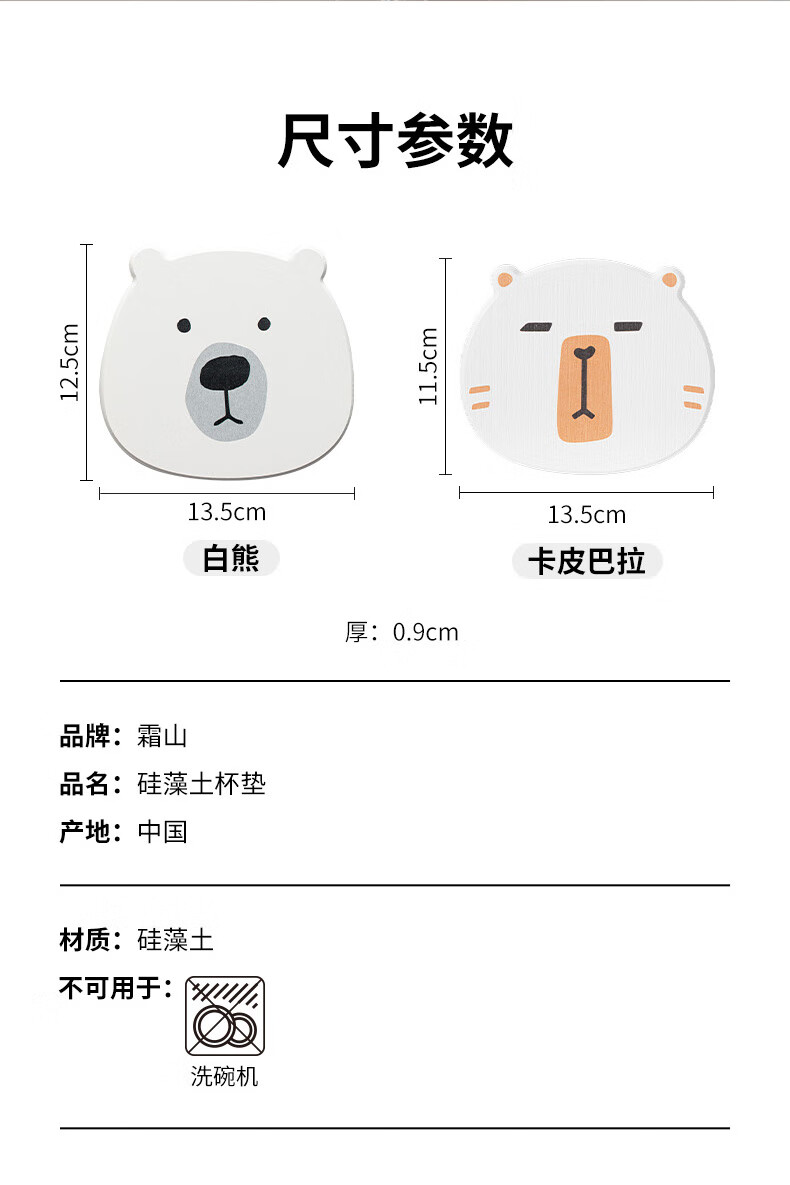 霜山【10.20日20点秒杀】杯垫,数量有限,恢复原价代表活动结束 白熊-长13.5*宽12.5*厚0.9cm