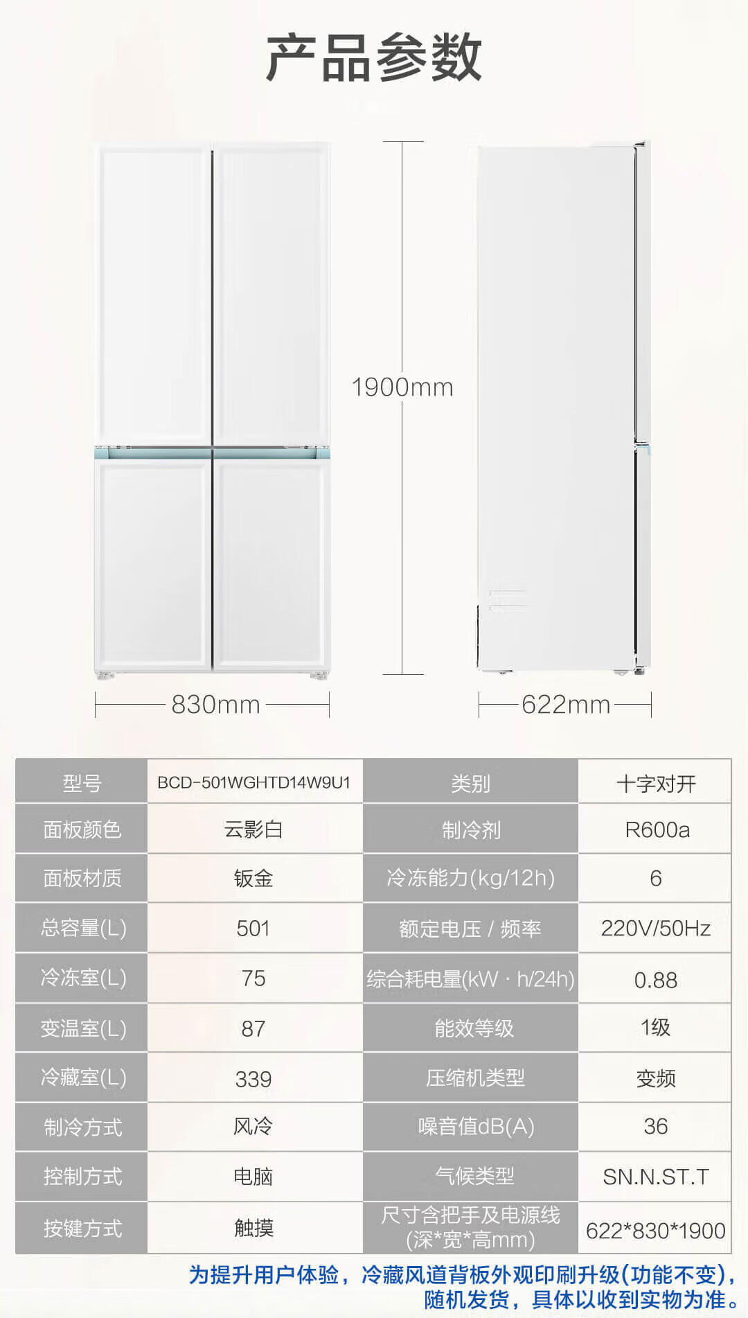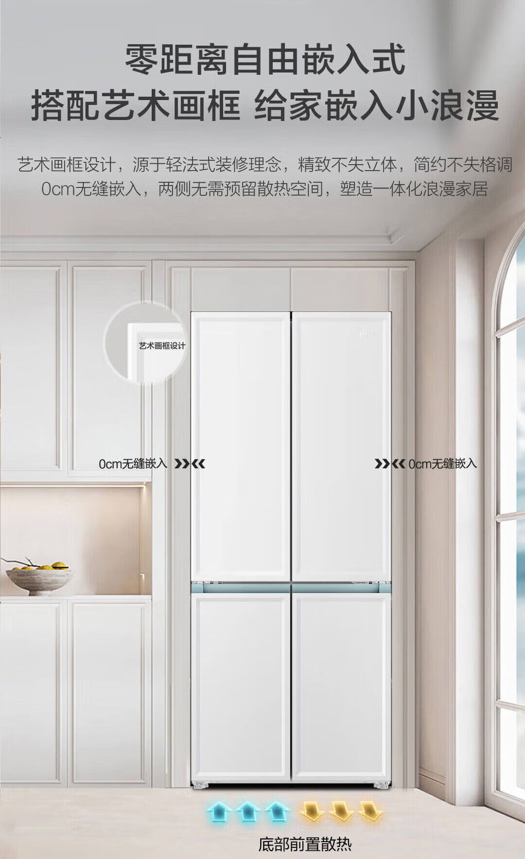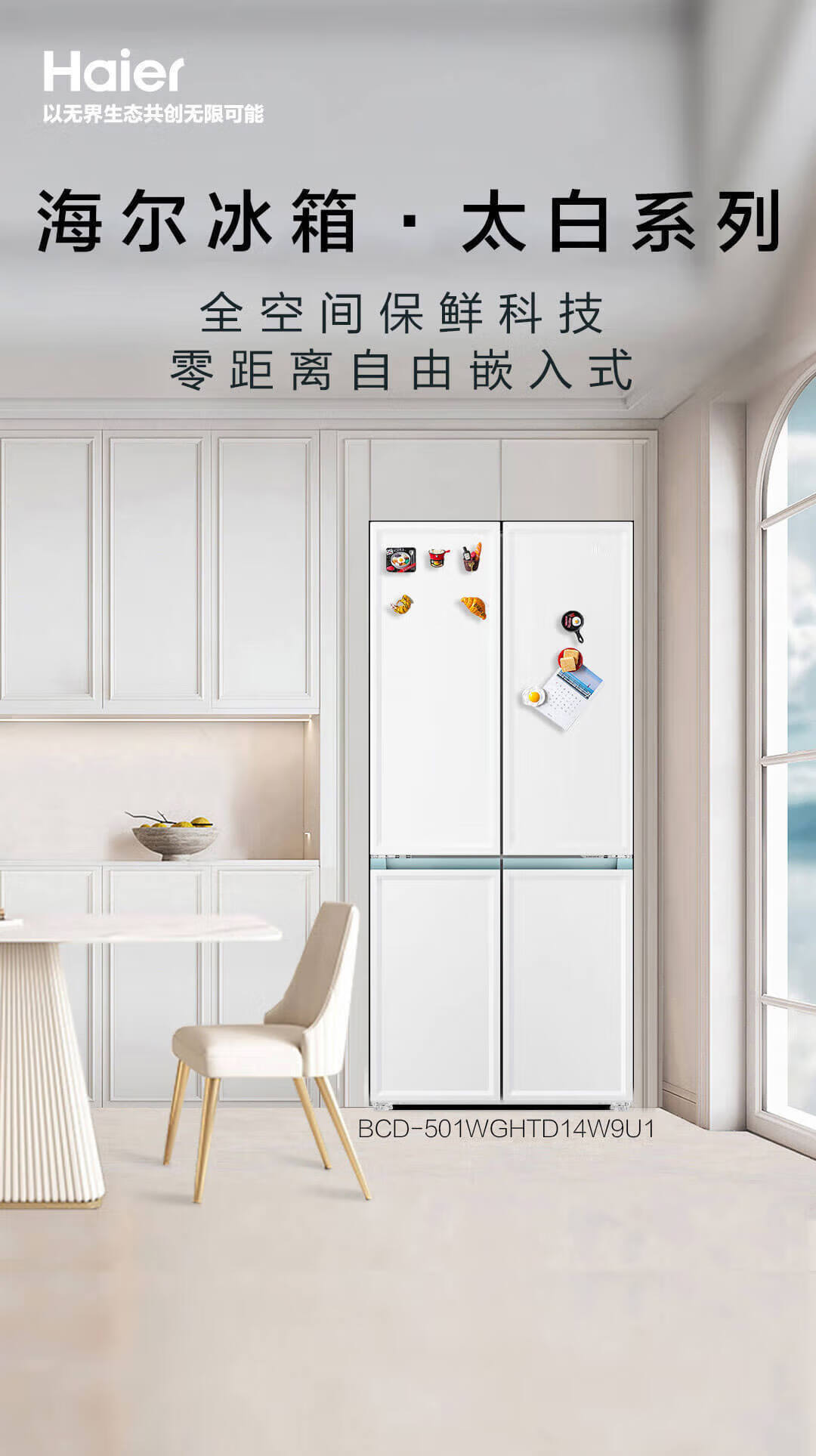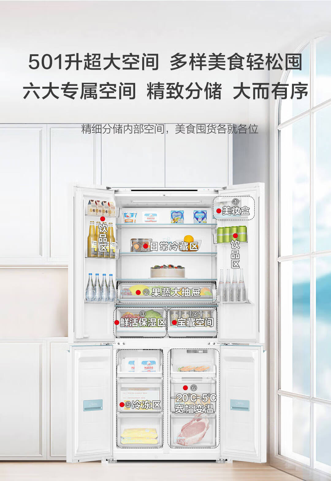 海尔(Haier)GX-501L太白全空间保鲜薄冰箱四开门十字对开门零距离自由嵌入式风冷无霜家用电冰箱 BCD-501WGHTD14W9U1