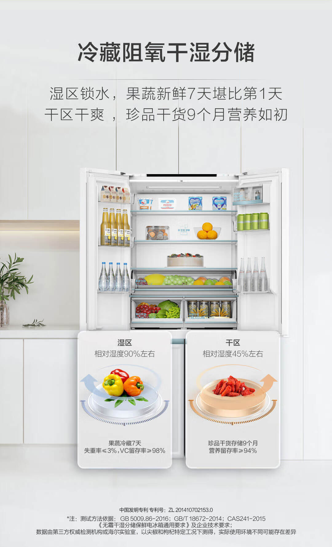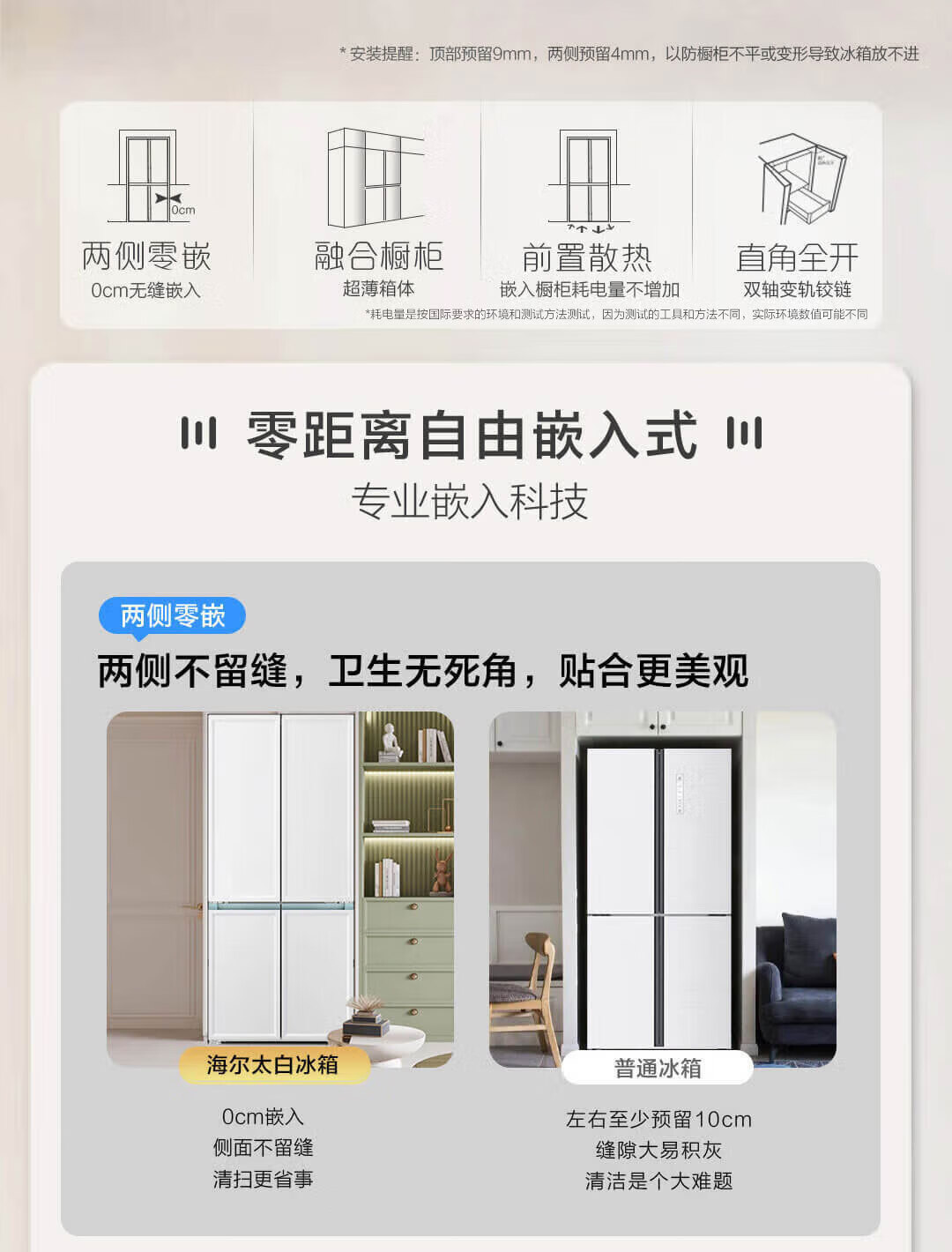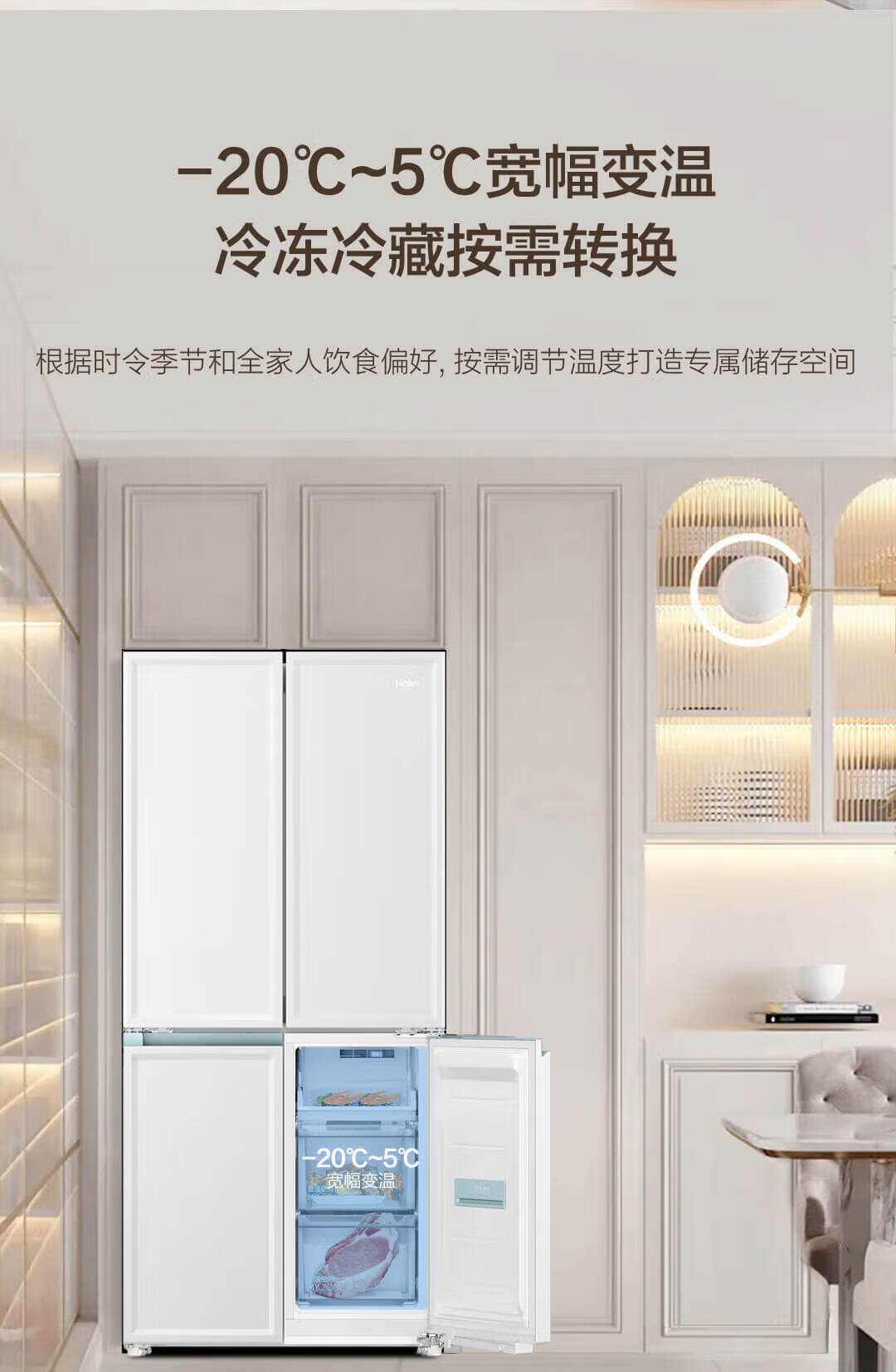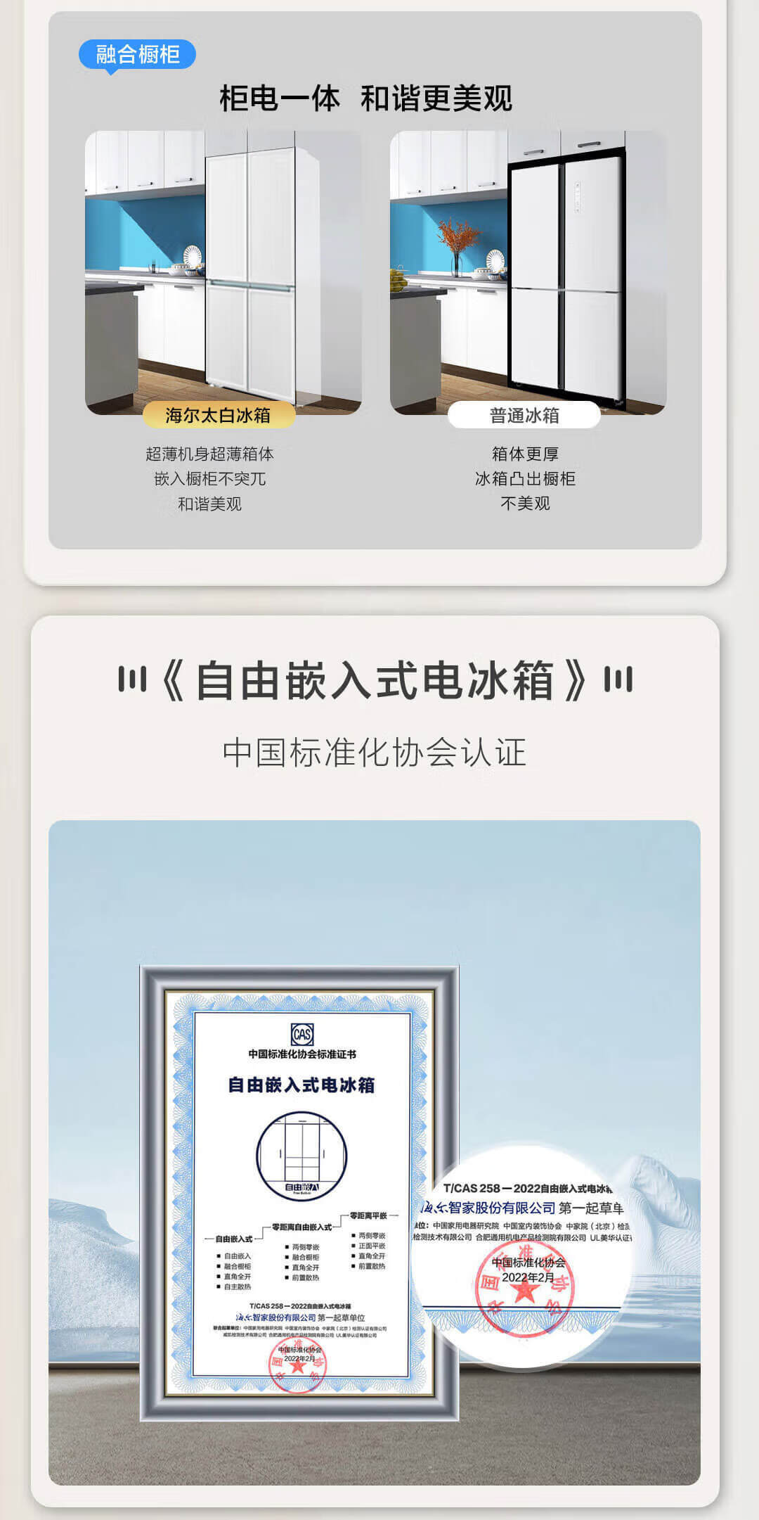 海尔(Haier)GX-501L太白全空间保鲜薄冰箱四开门十字对开门零距离自由嵌入式风冷无霜家用电冰箱 BCD-501WGHTD14W9U1