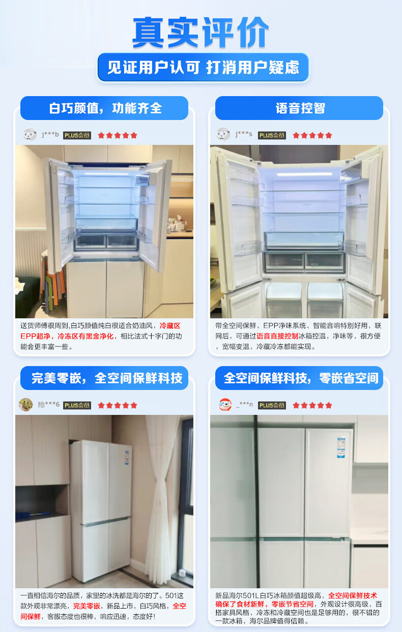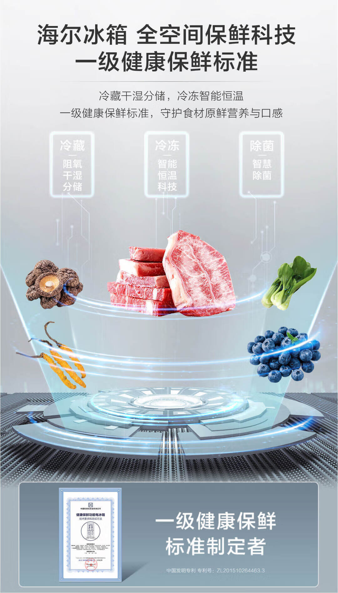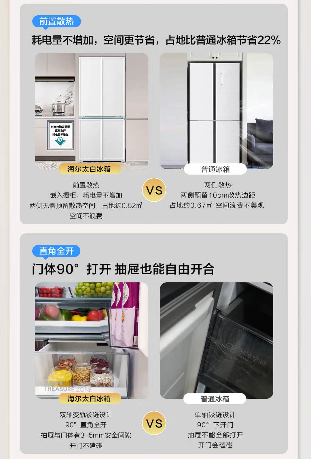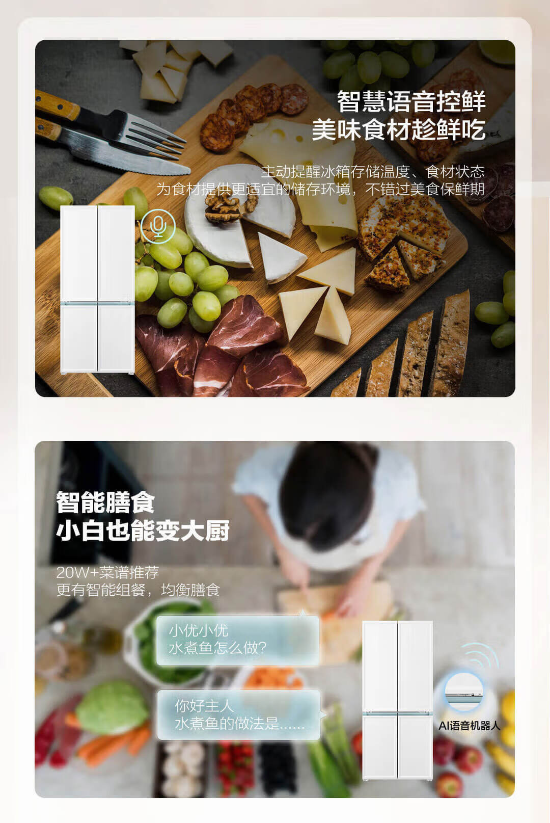海尔(Haier)GX-501L太白全空间保鲜薄冰箱四开门十字对开门零距离自由嵌入式风冷无霜家用电冰箱 BCD-501WGHTD14W9U1