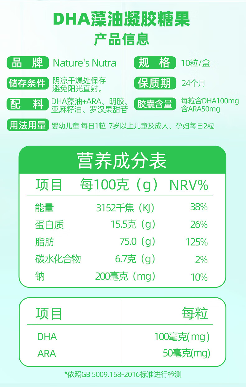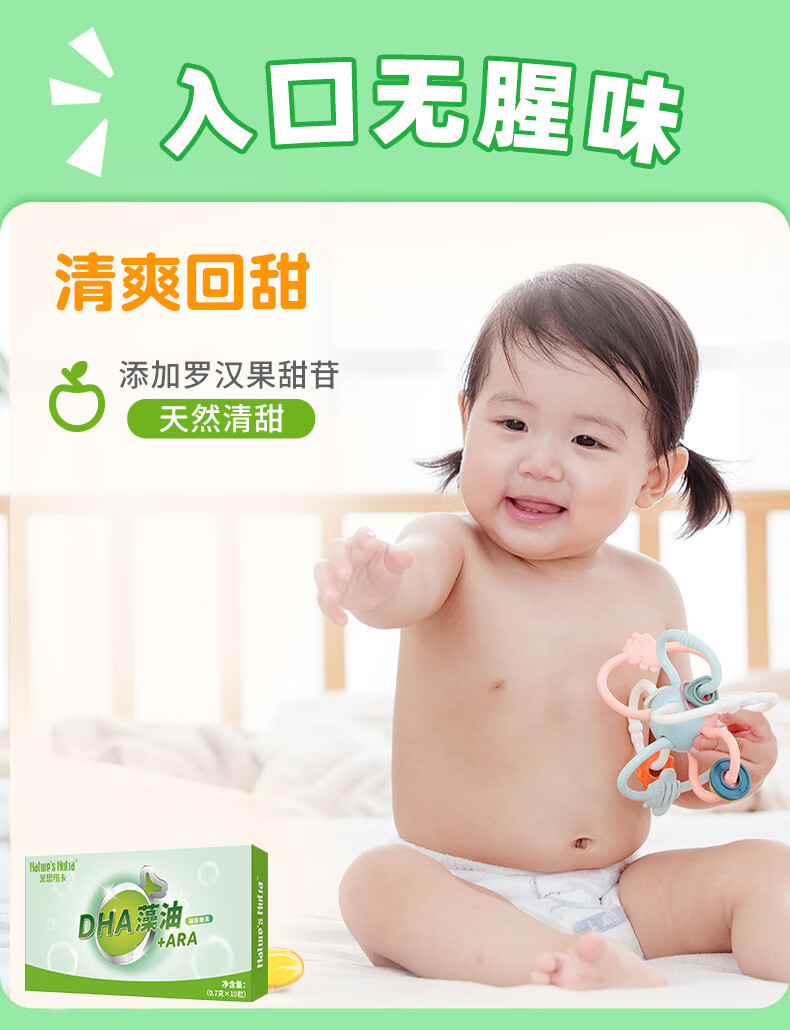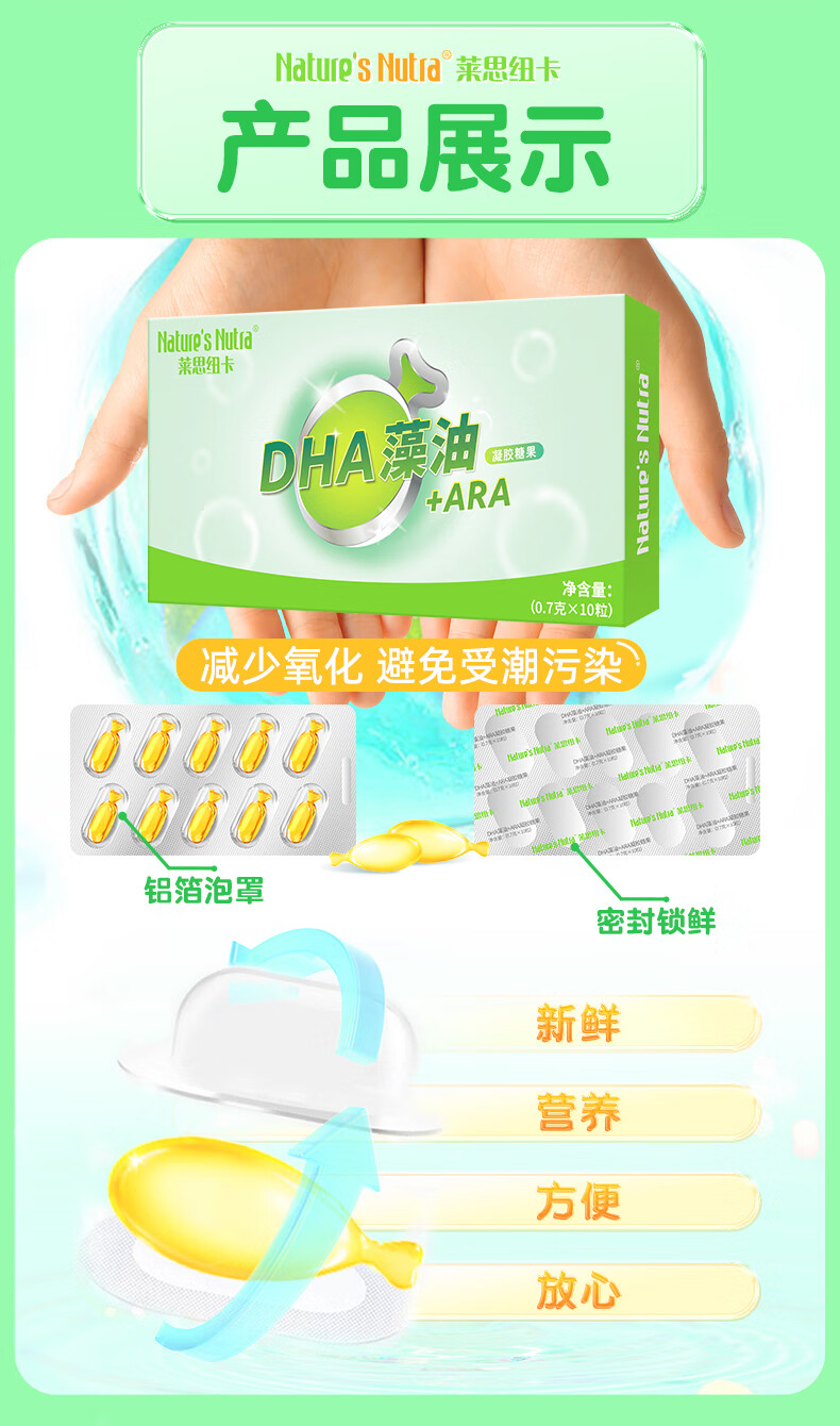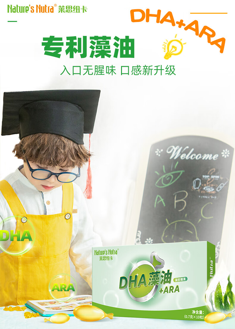 莱思纽卡(Nature's Nutra)DHA藻油ARA 婴幼儿儿童学生海藻油营养胶囊DHA凝胶糖果 10粒装