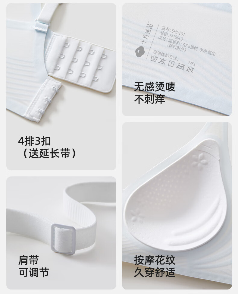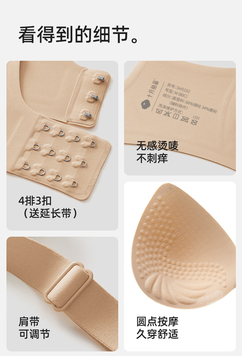 十月结晶女士内衣云感软支撑文胸女 【柔肤粉】大胸显小 XL