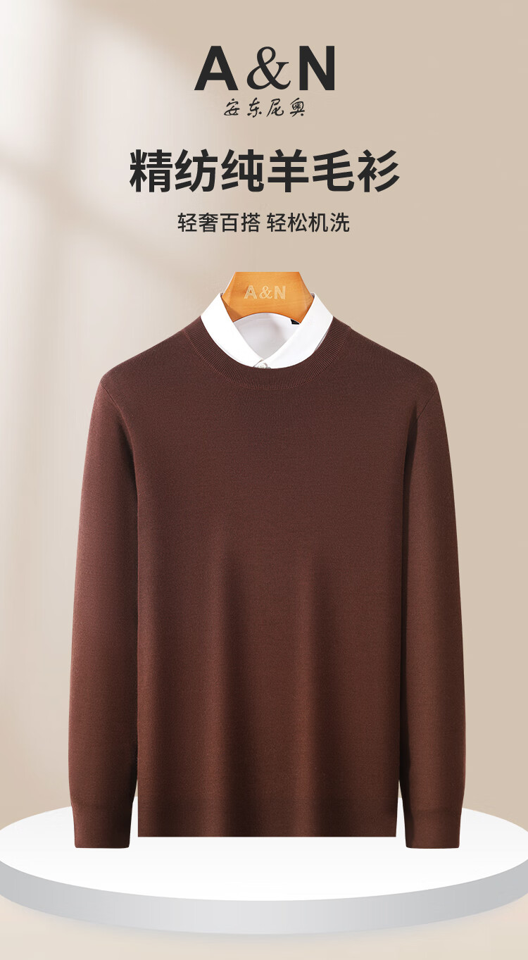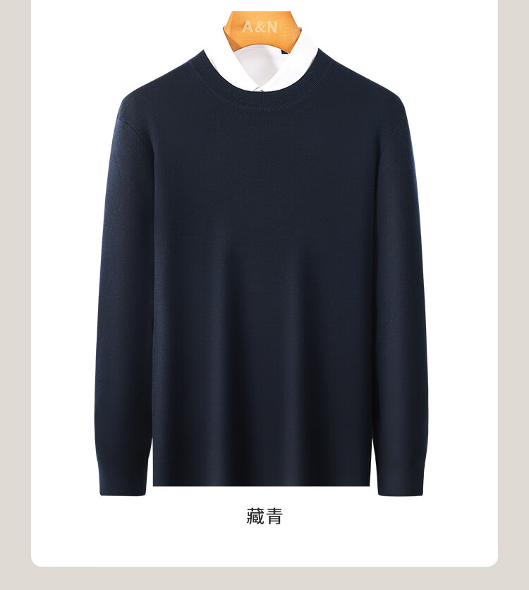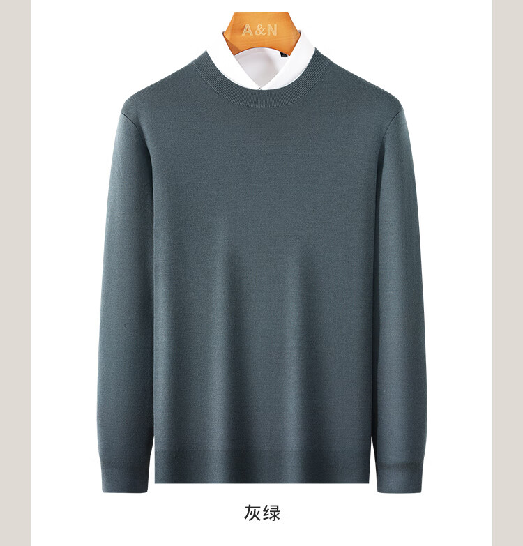 安东尼奥【可机洗&精纺100%绵羊毛加厚约510克】高档男士羊毛衫秋冬季毛衣