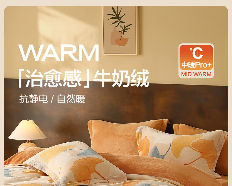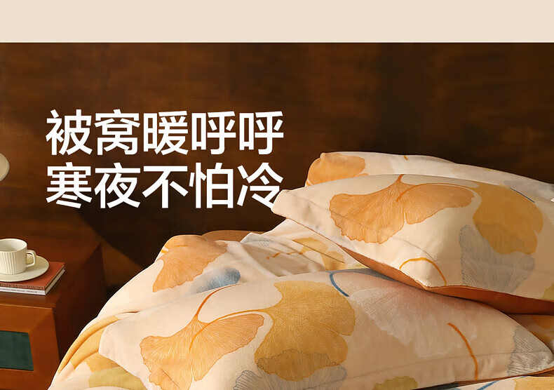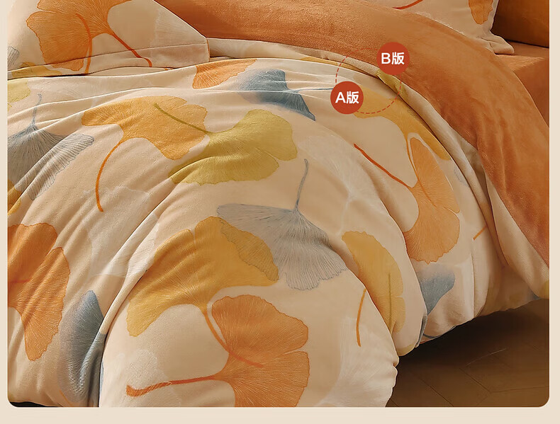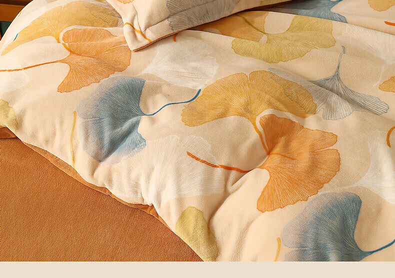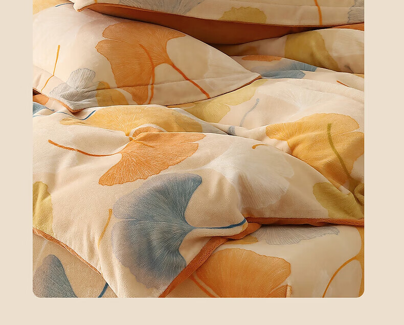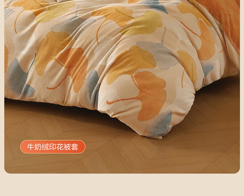 水星家纺被套单件 A类牛奶绒加厚抗静电被套 秋冬保暖宿舍暖绒被套被罩 北欧叶梦然【A类/双面牛奶绒】 200cm*230cm